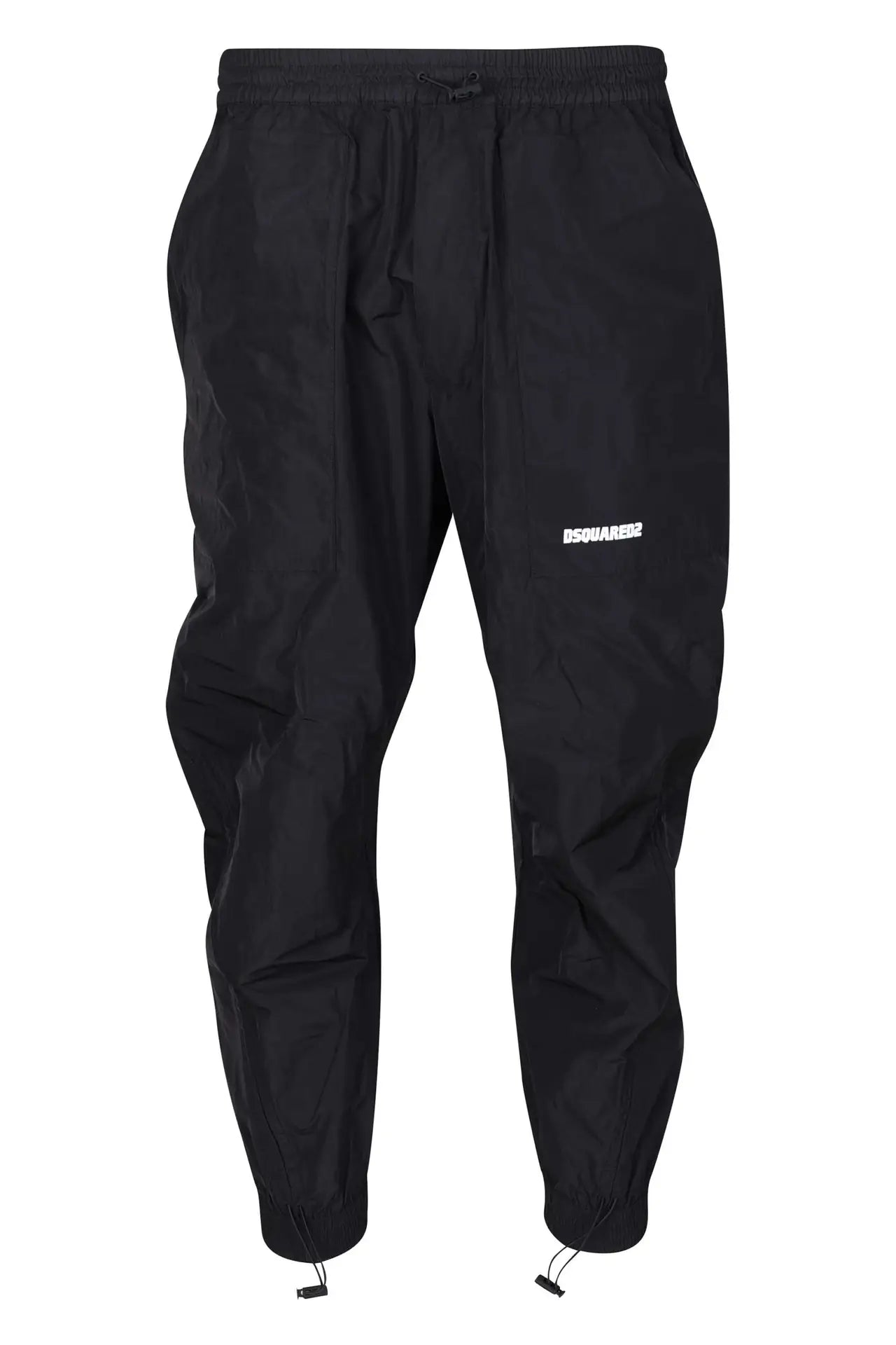 Pantalón negro impermeable con minilogo "dsquared" blanco -