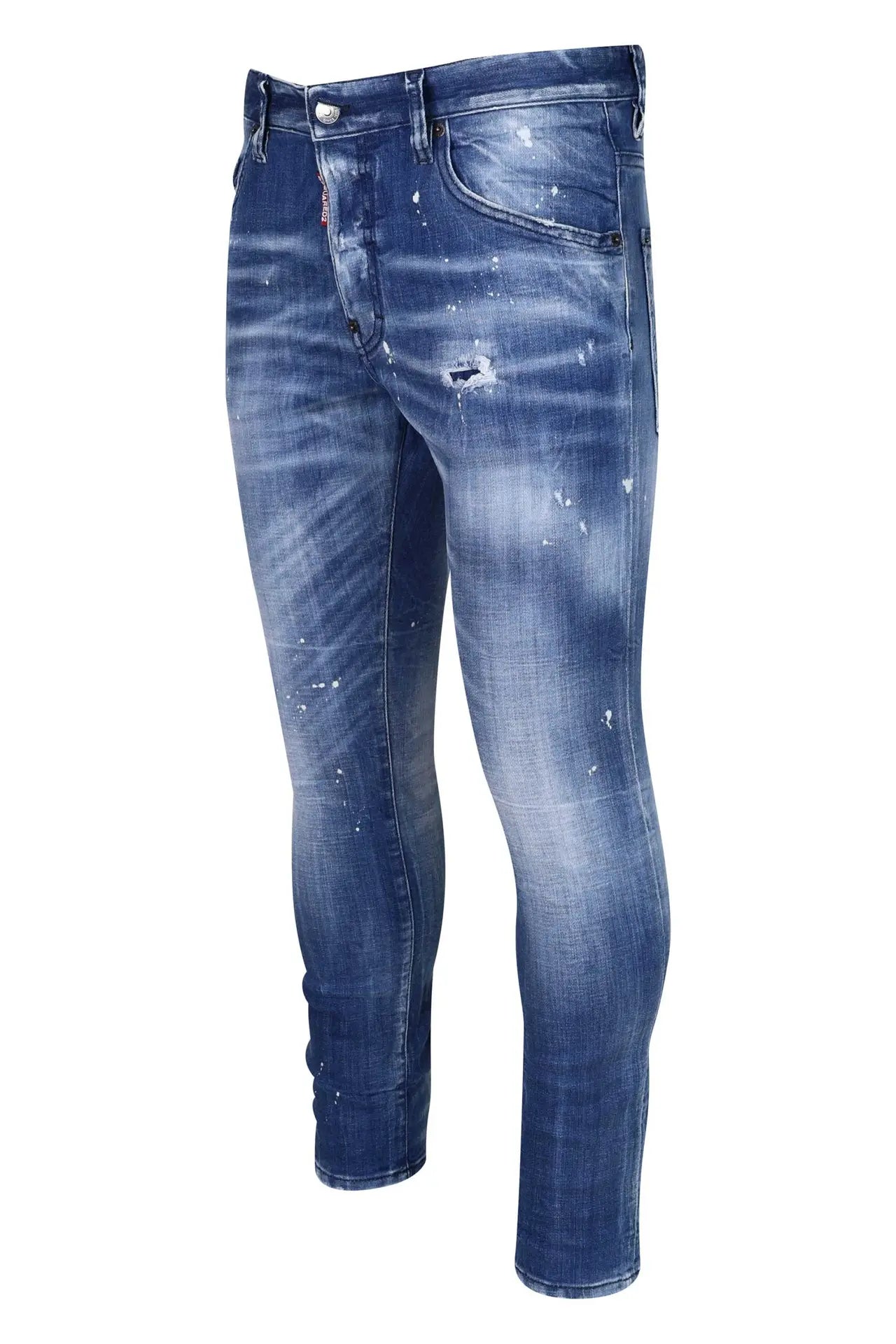 Pantalón vaquero azul claro "skater jean" con bigotes de gato y semirotos - 46 -