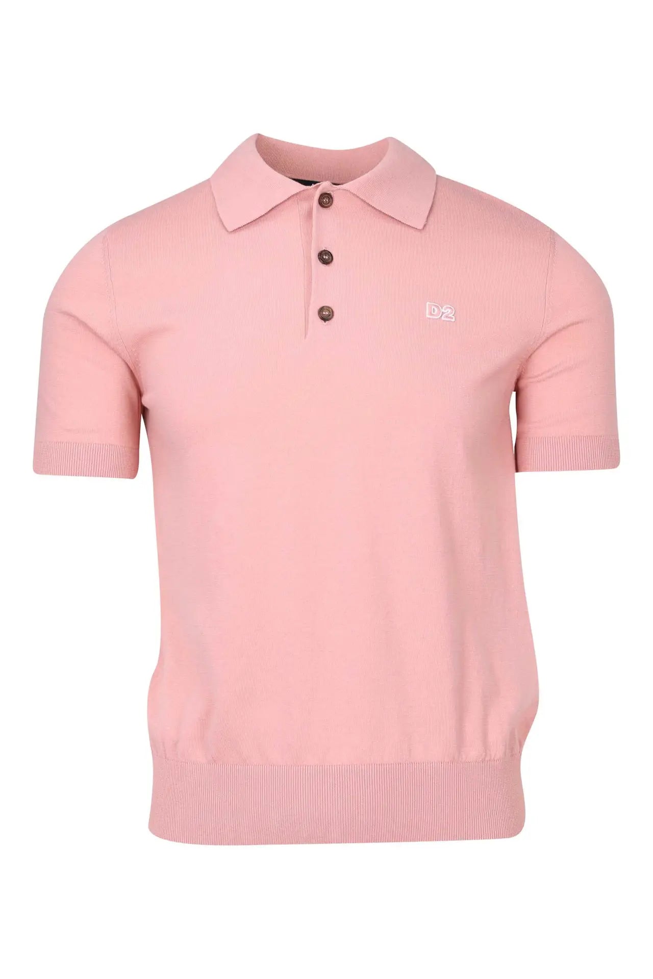 Polo rosa de punto con minilogo "D2" blanco - S -