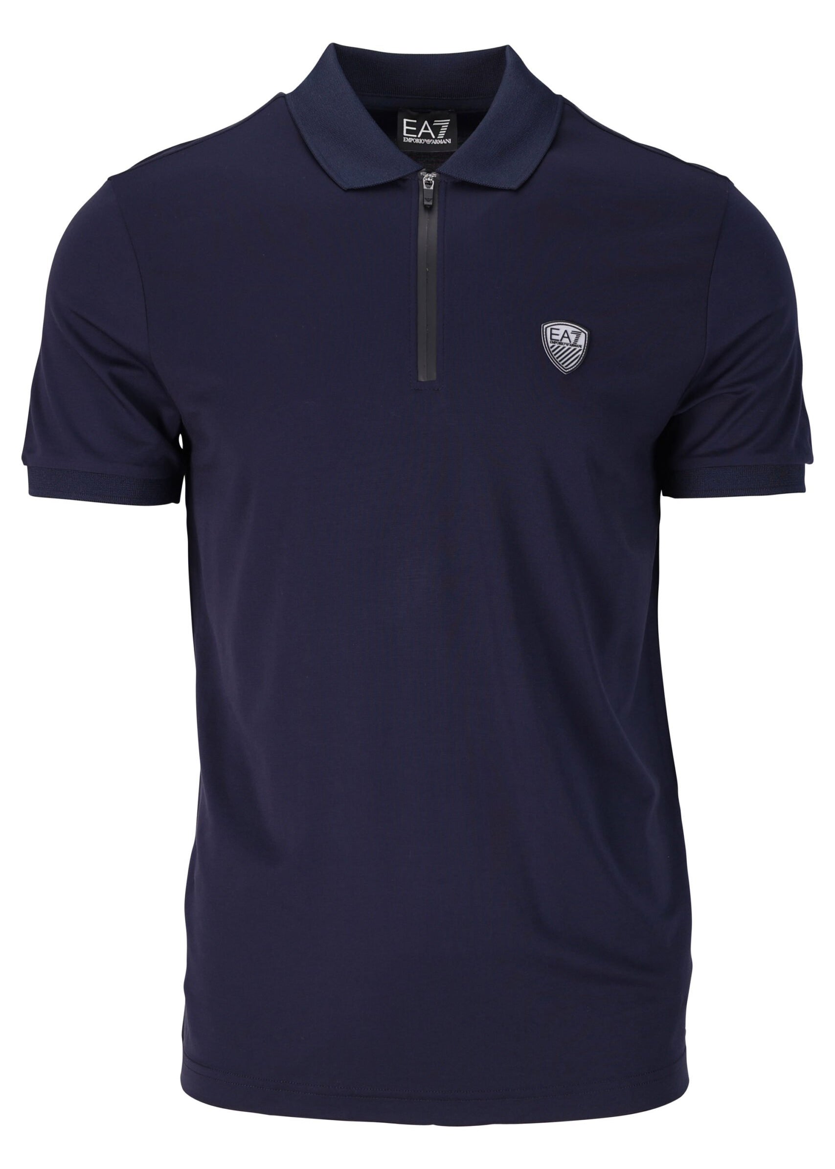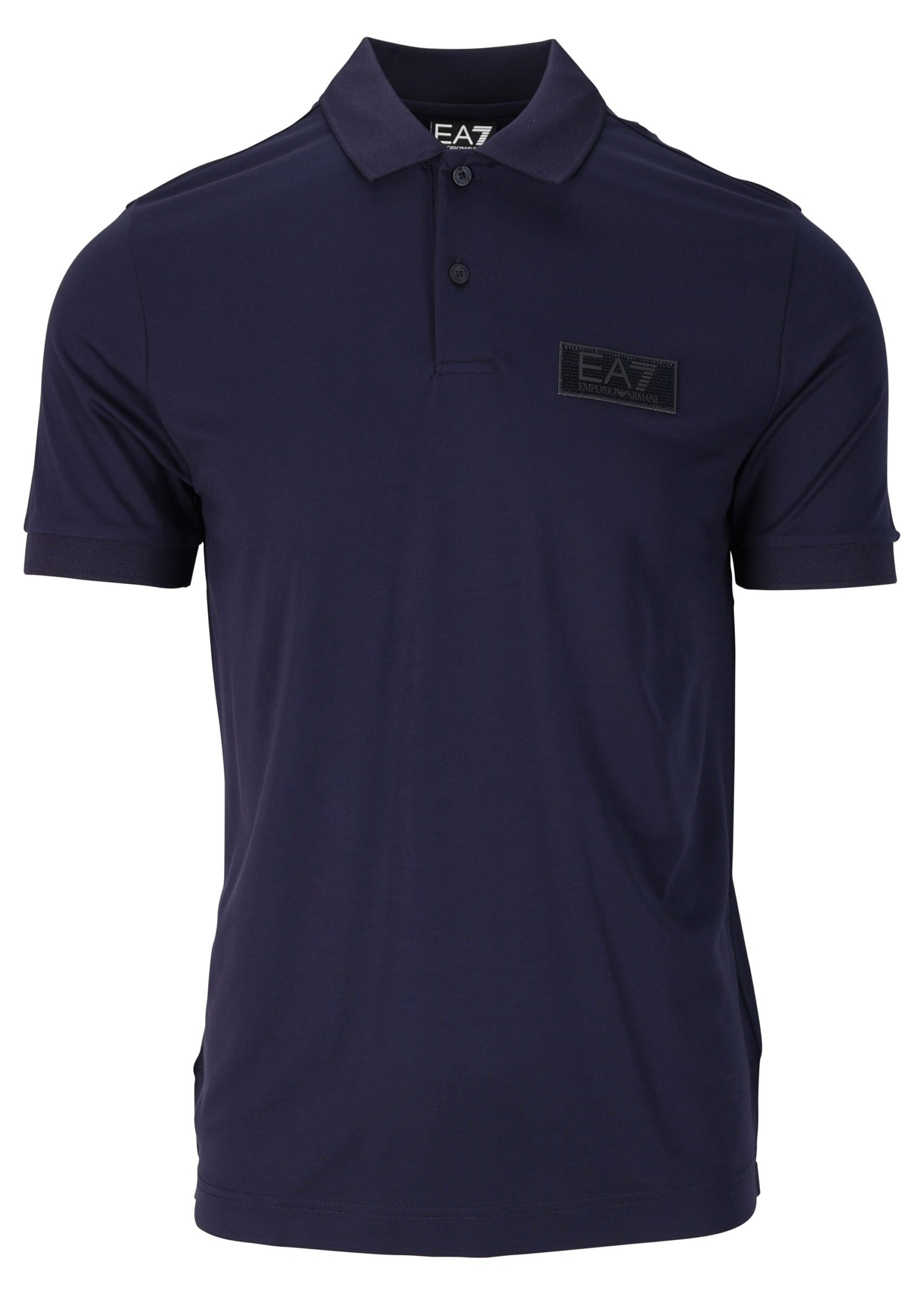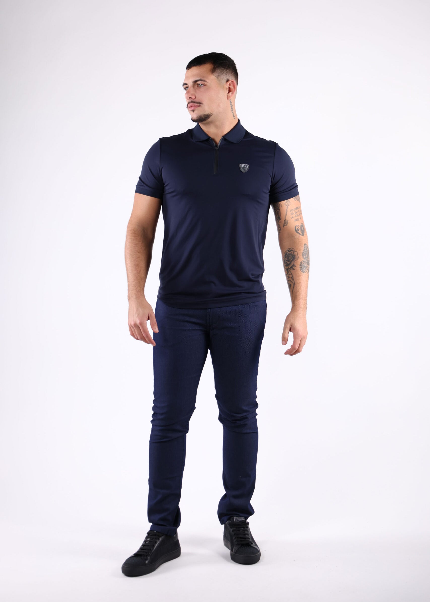 Polo blau amb logo monocromàtic i detalls de màniga i coll - S