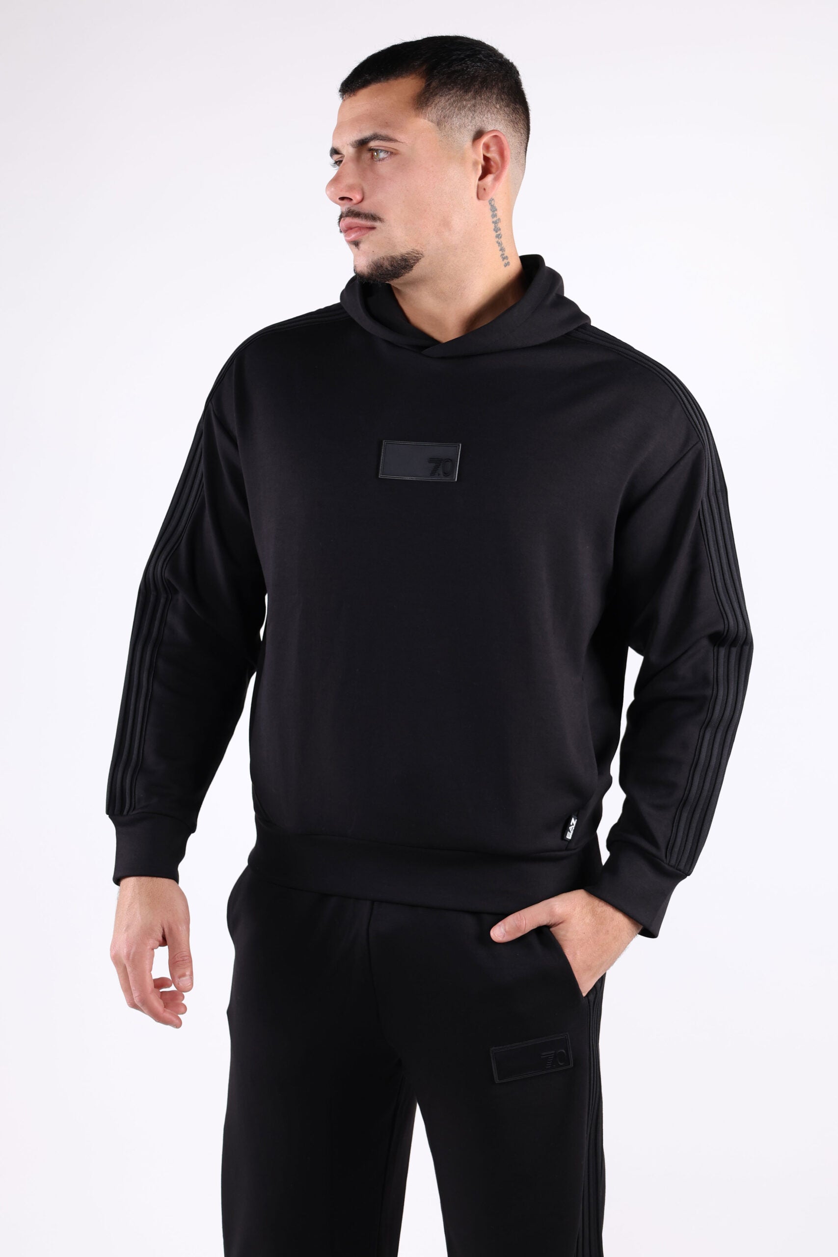 Dessuadora negra amb caputxa i logo monocromàtic "lux identity" - L