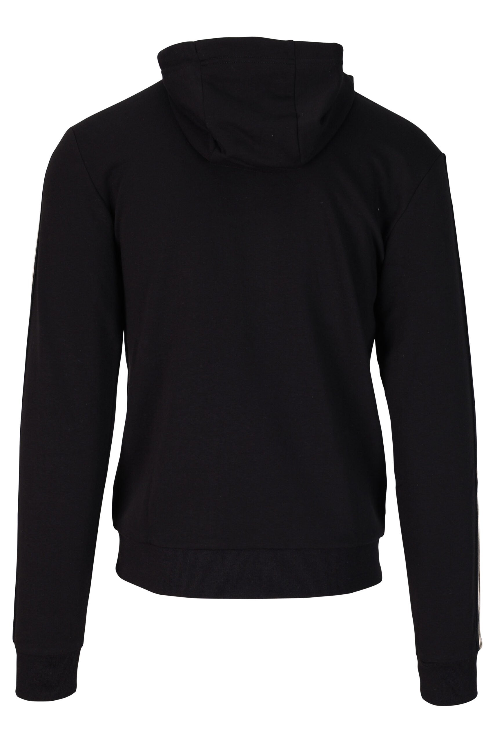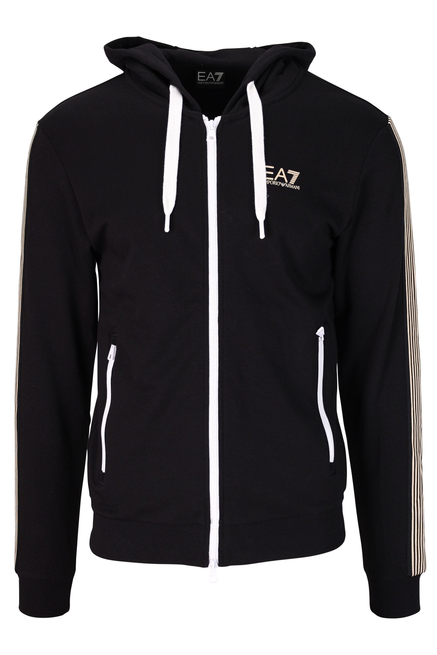 Dessuadora negra amb cremallera i logotip i línies daurades en mànigues - XXL