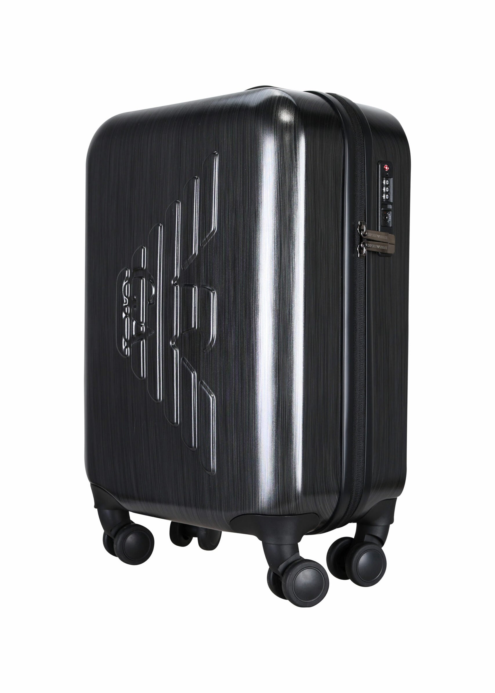 Jaqueta negra amb caputxa i encoixinada amb logo àguila