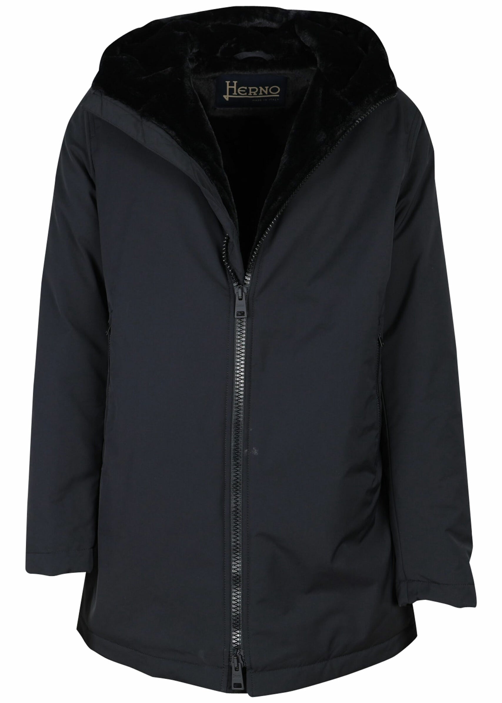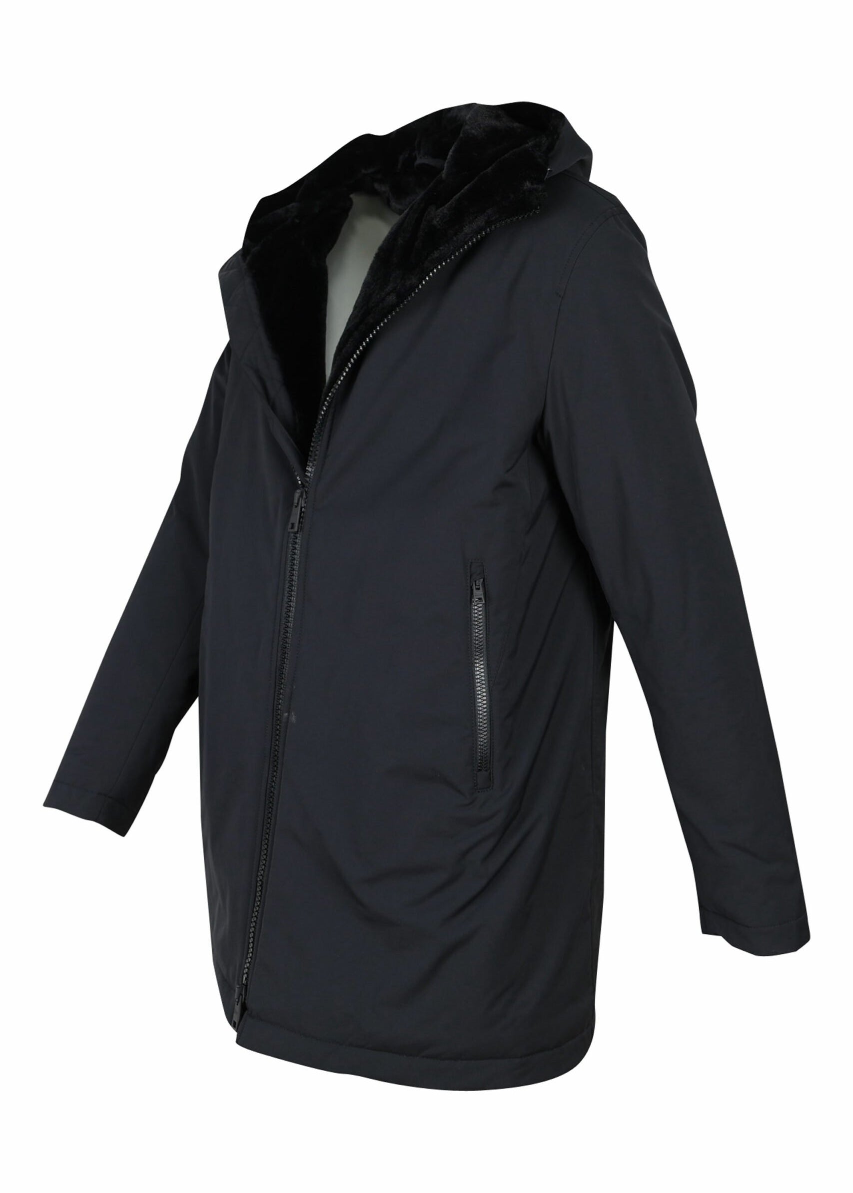 Parka negra amb caputxa i folre de teixit sintètic