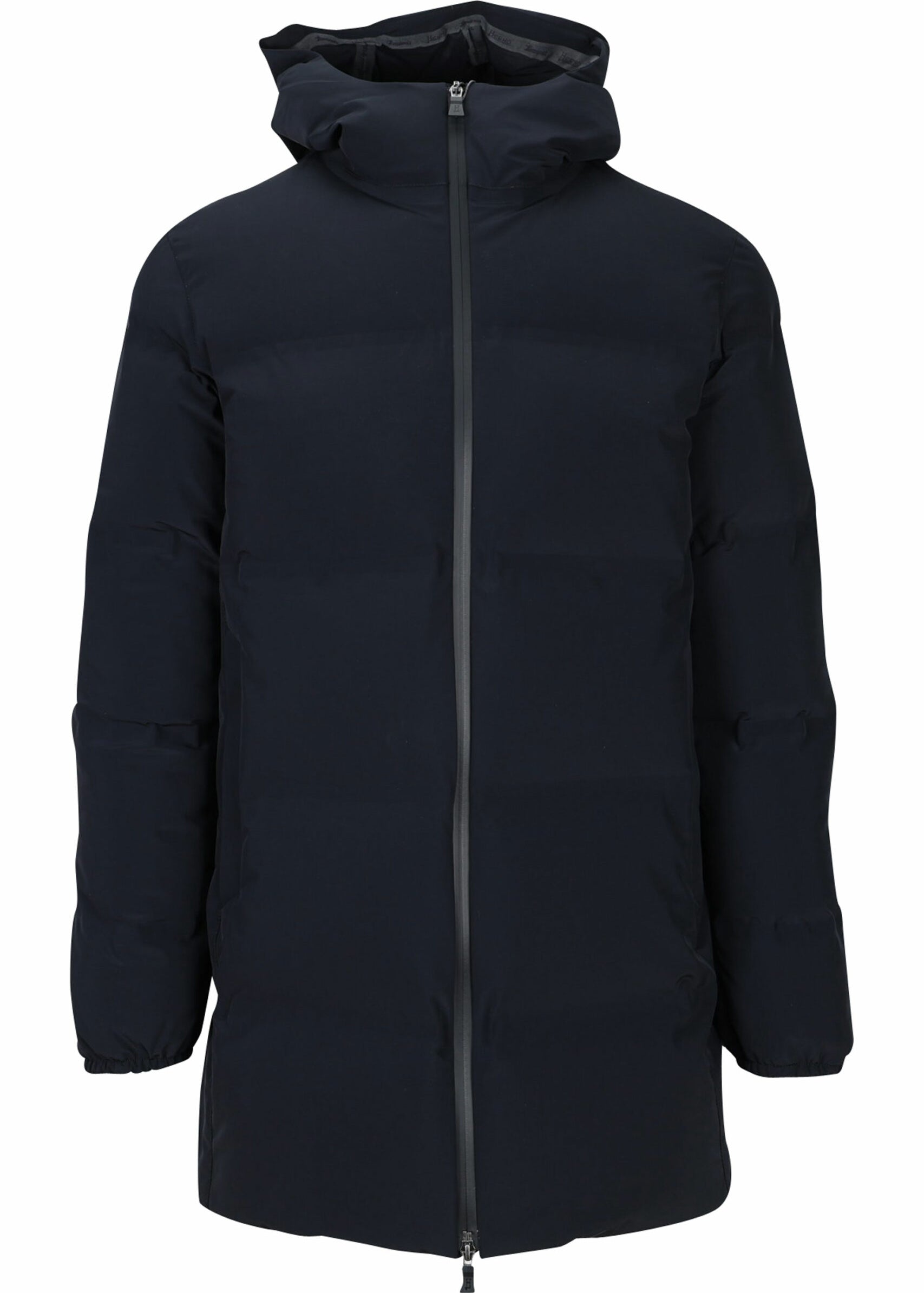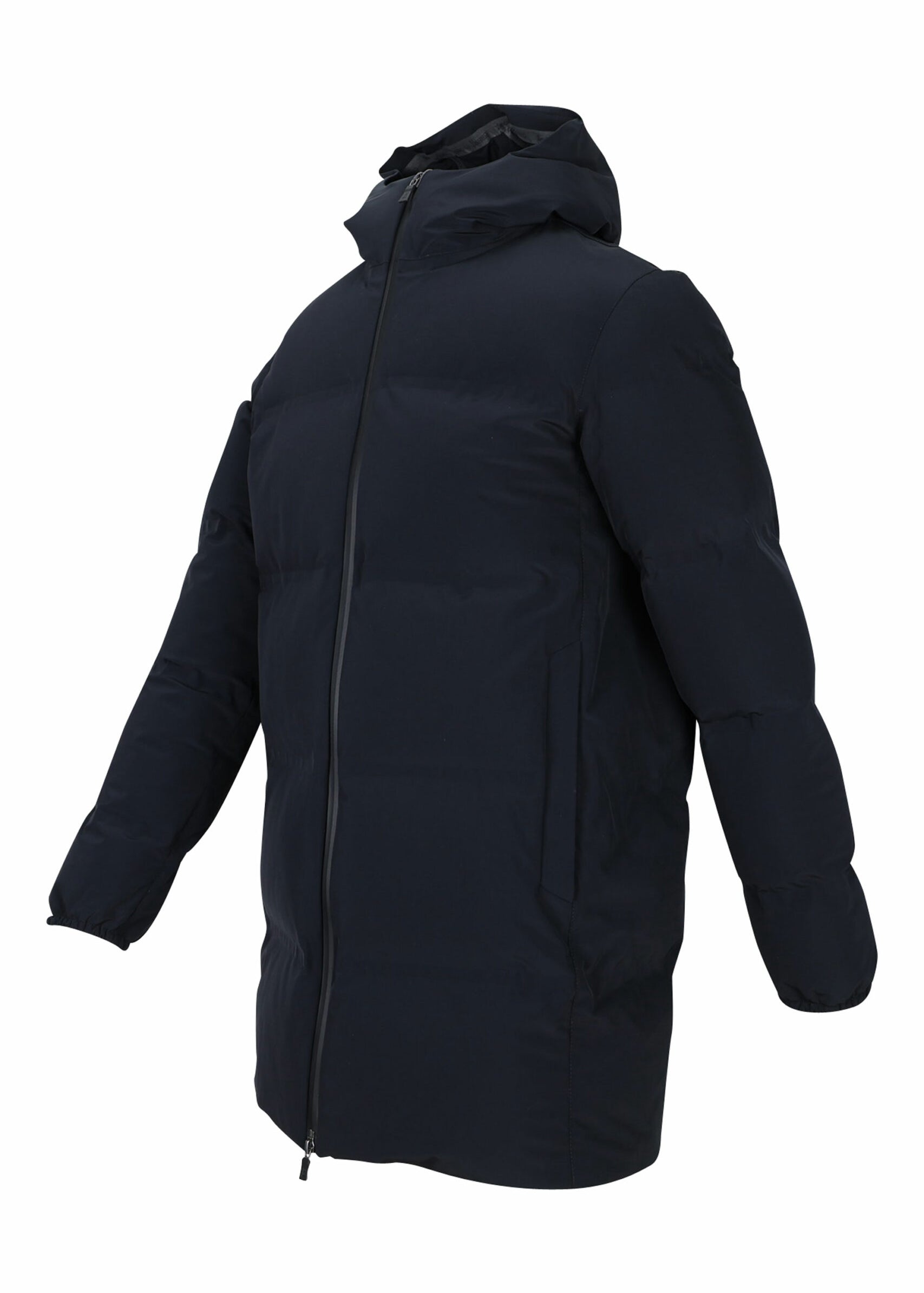 Parka eco negra encoixinada amb caputxa i logo lent lateral