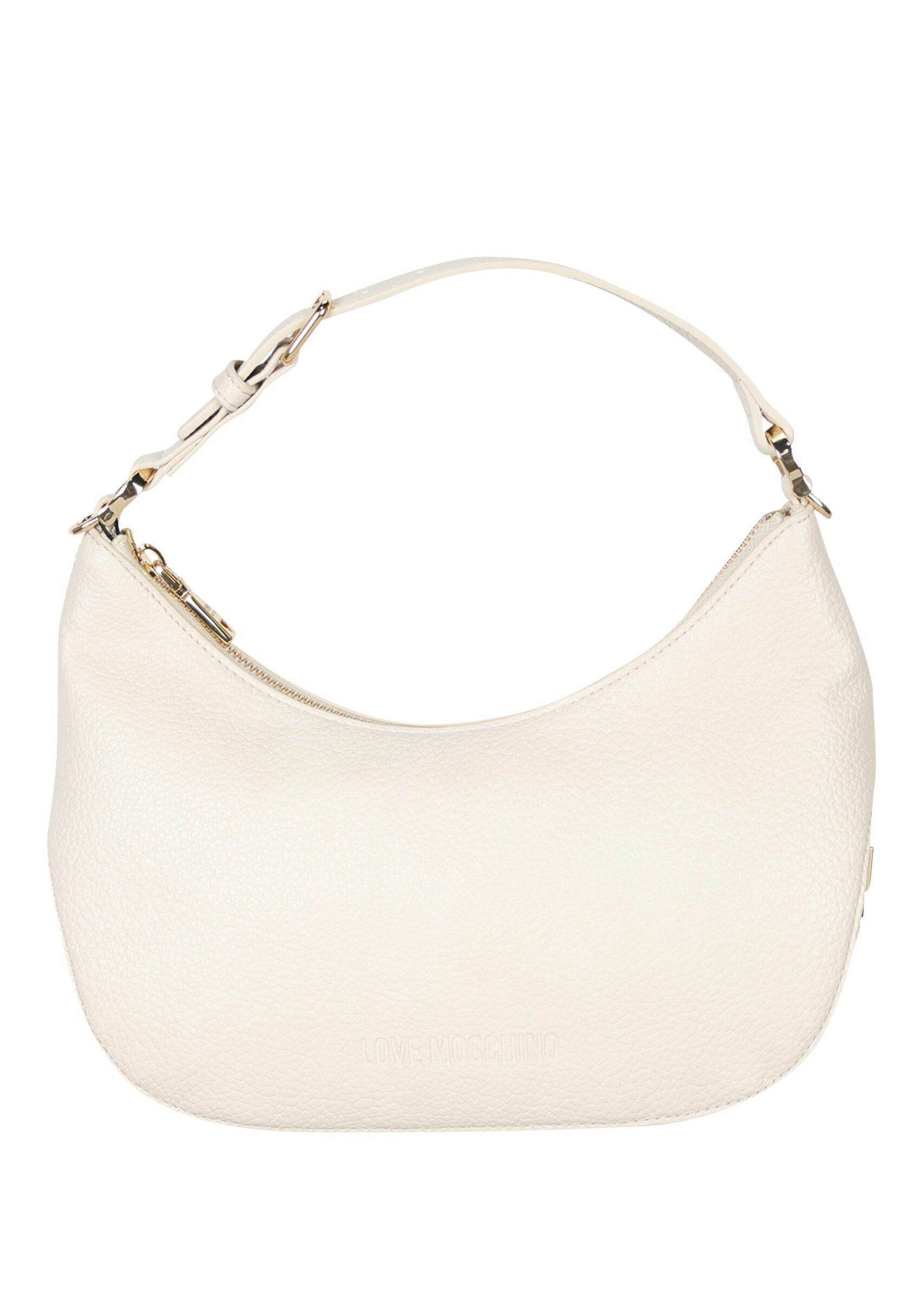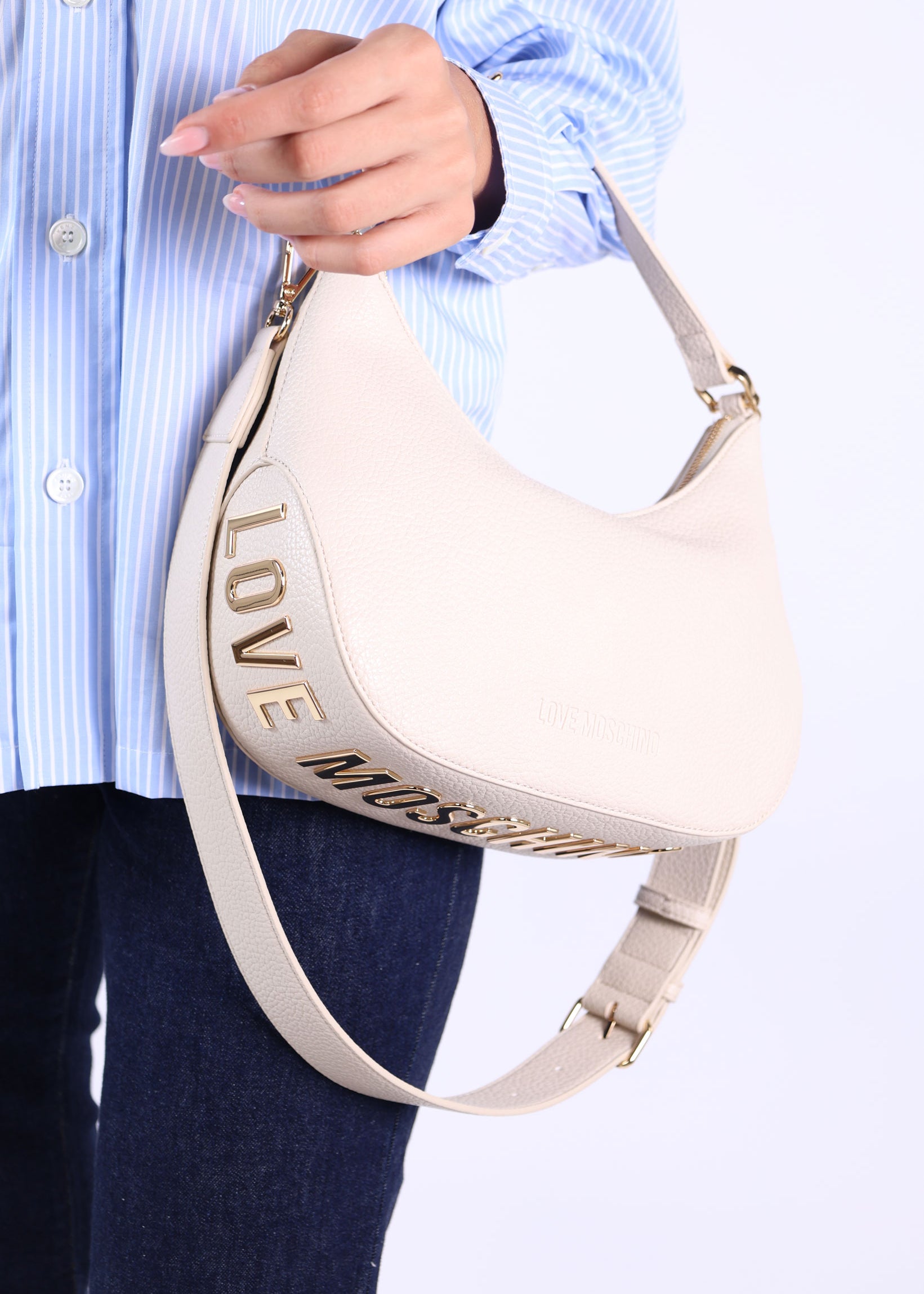 Bossa d'espatlla beix de cuir amb minilog monocromàtic