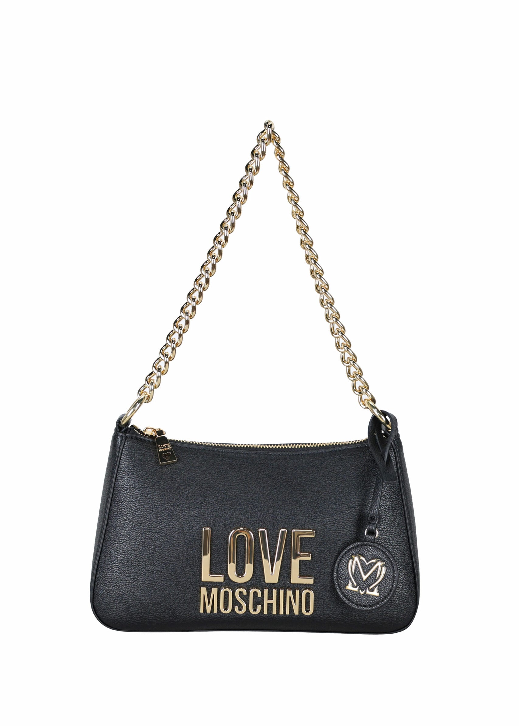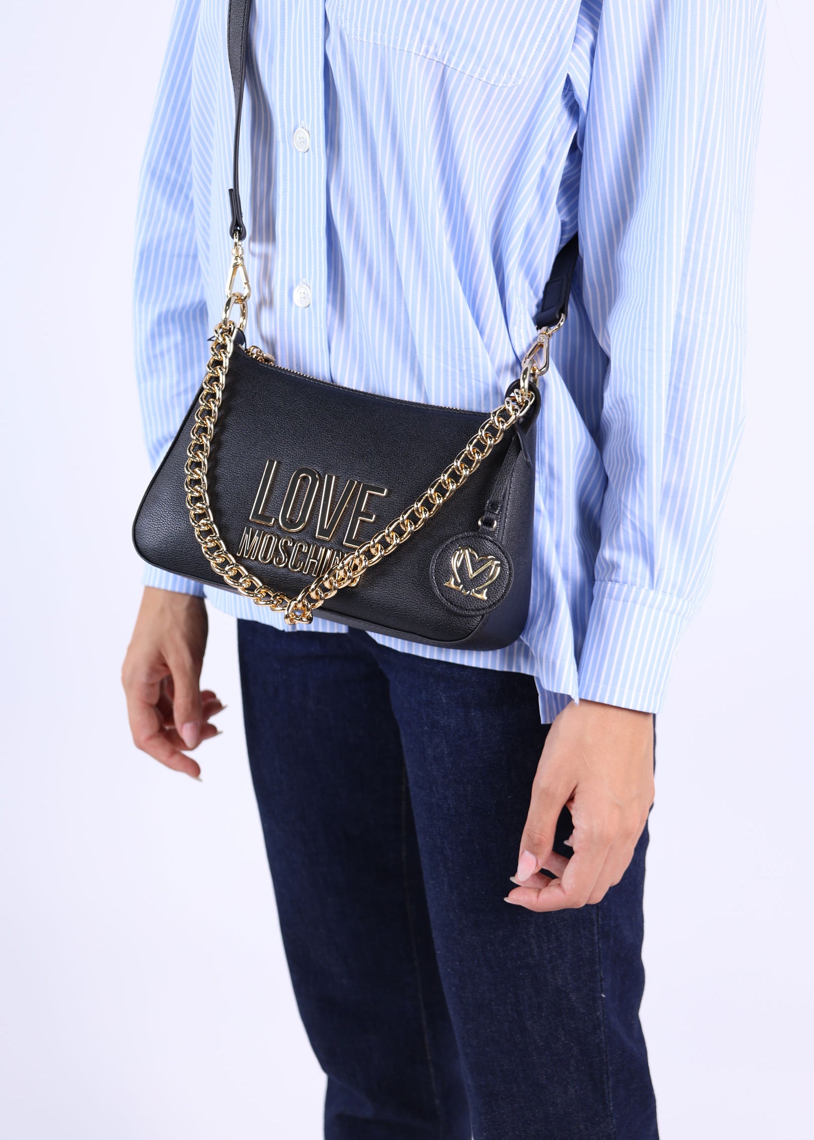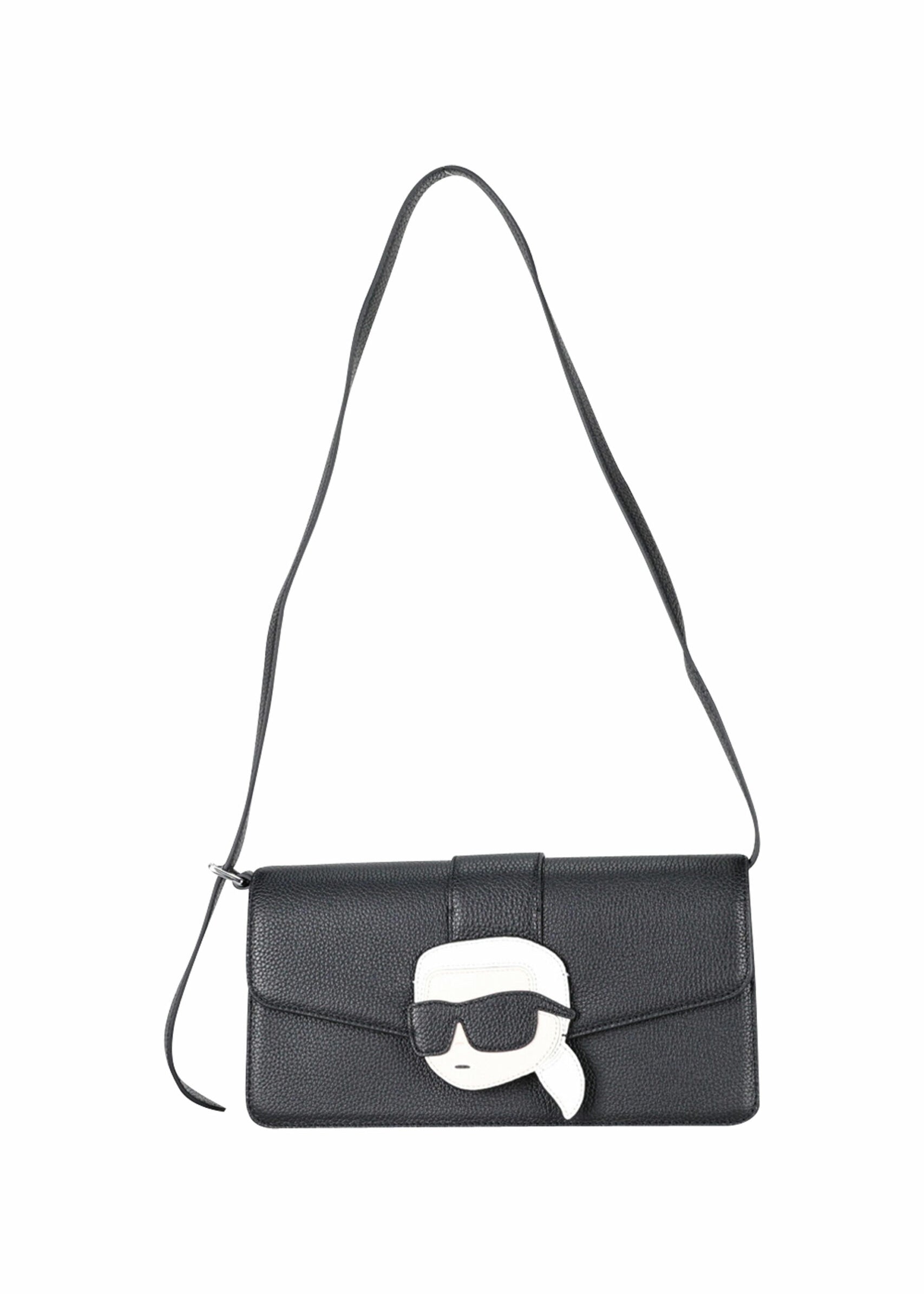Bossa d'espatlla negra de cuir amb minilog monocromàtic