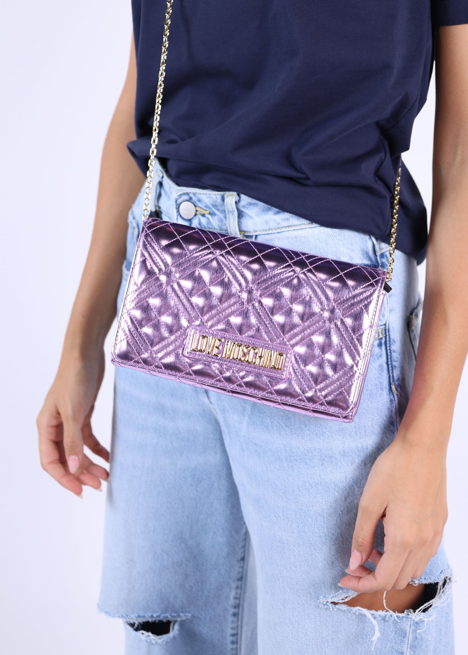 Bossa bandolera violeta encoixinada amb logo i cadena
