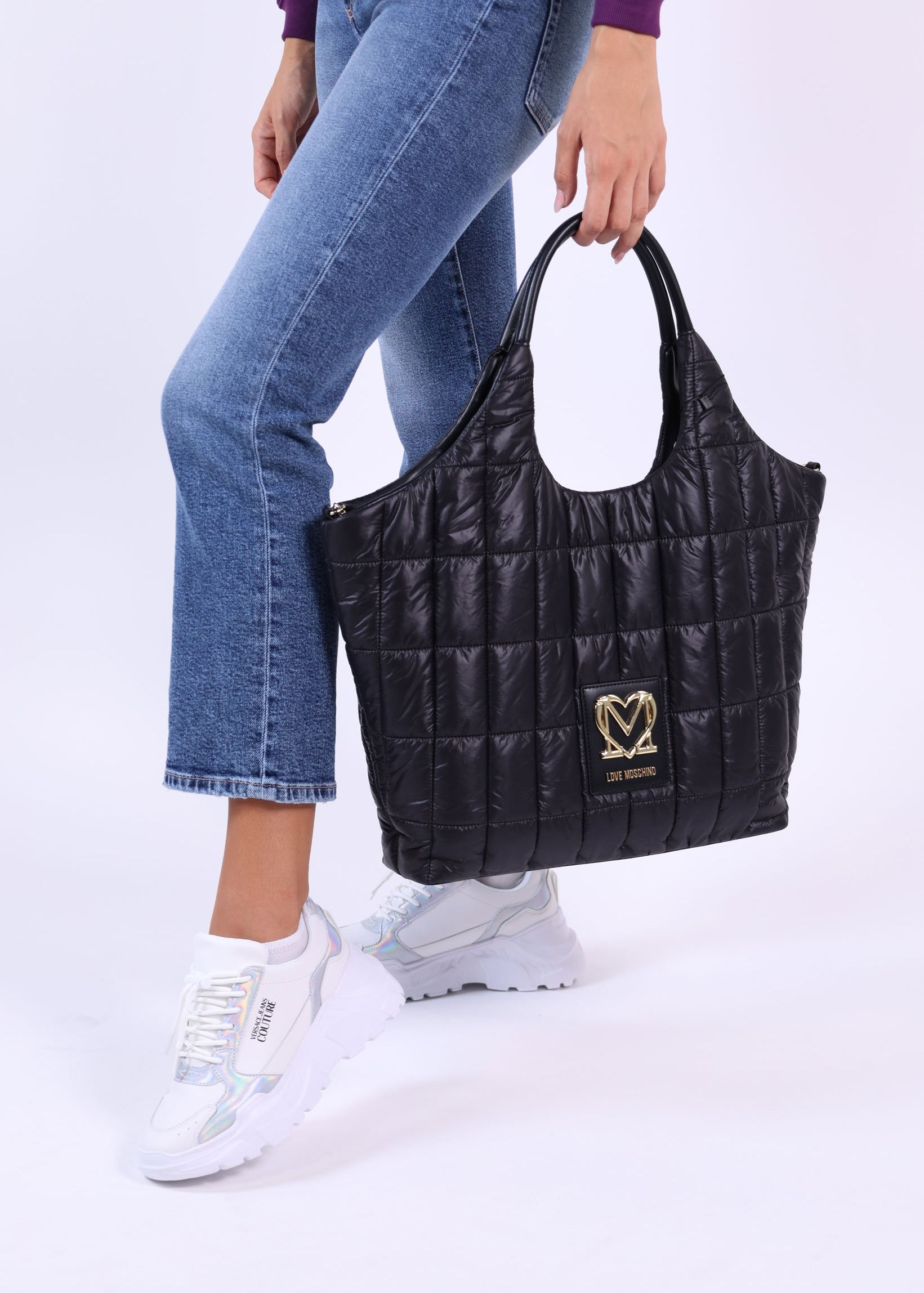 Bossa d'espatlla negra encoixinada amb logo daurat
