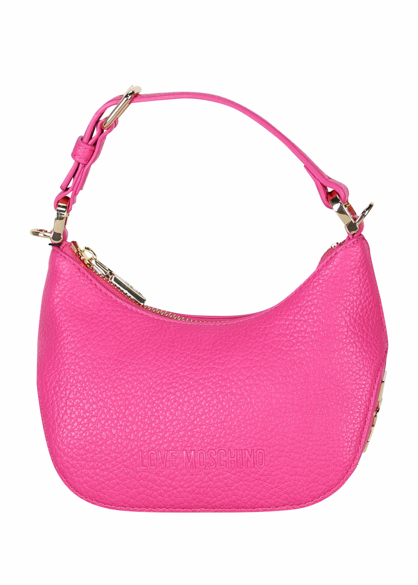 Bossa d'espatlla rosa de cuir amb minilog monocromàtic