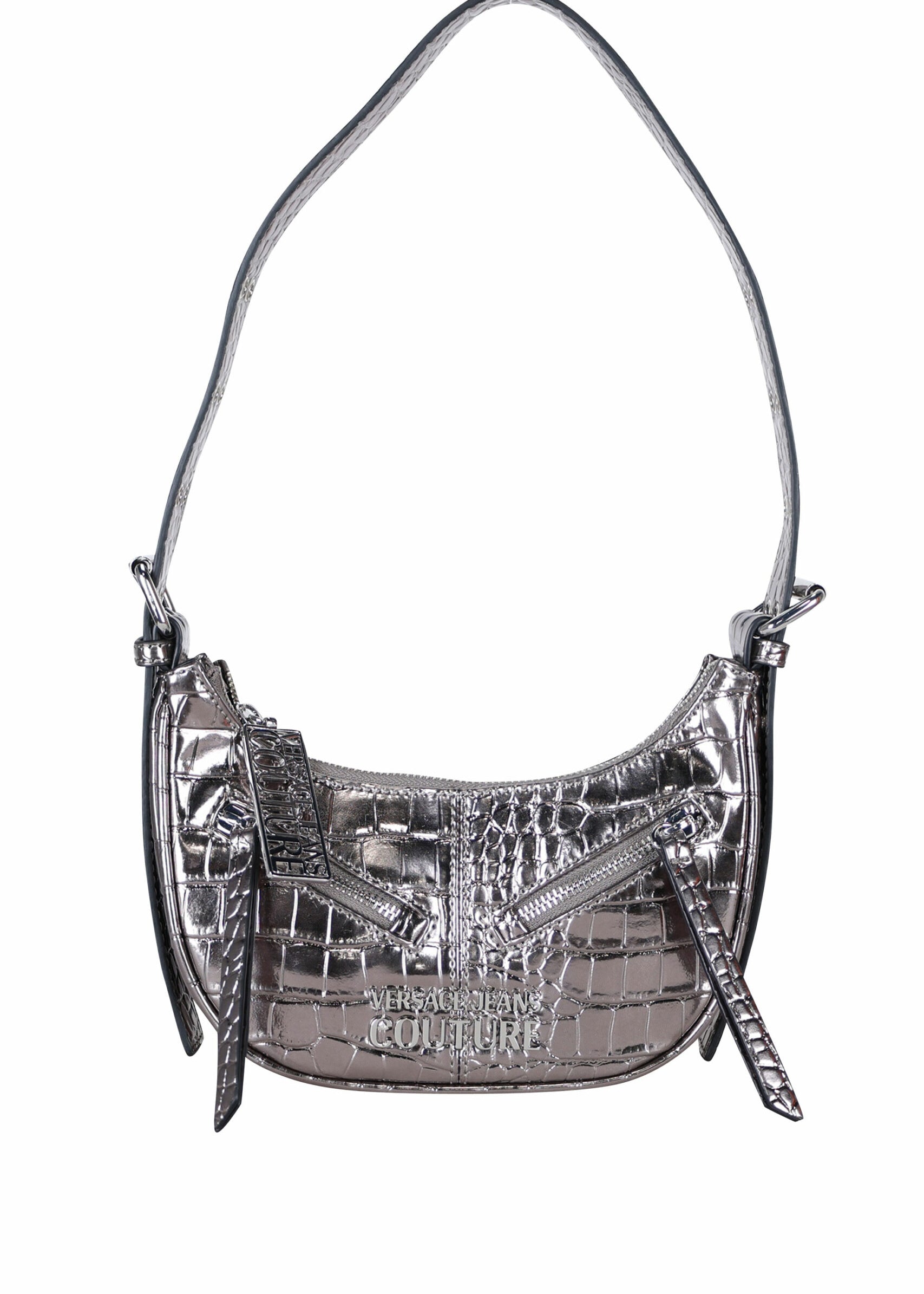 Bossa d'espatlla estil hobo gris metàl·lic amb cremalleres