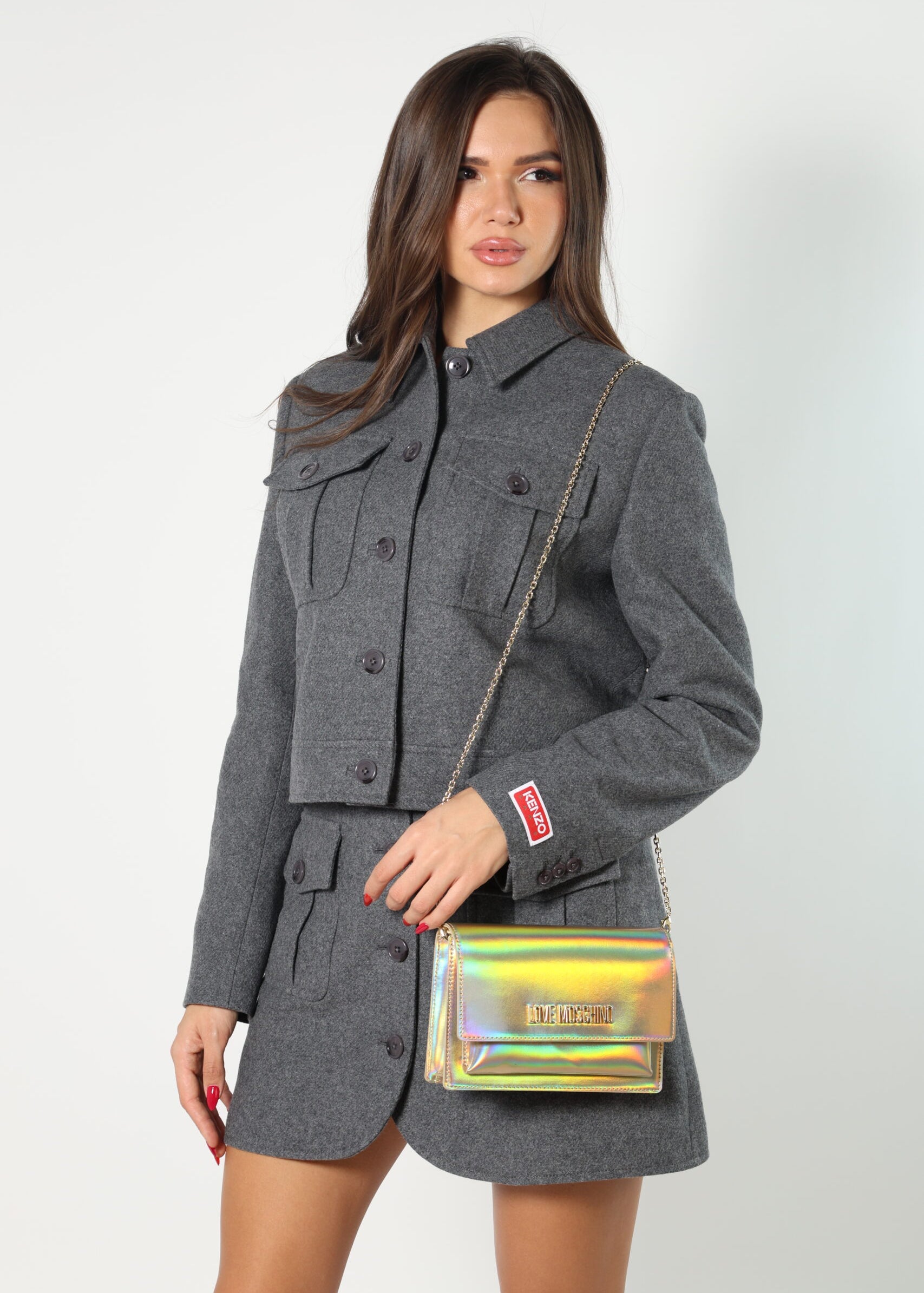 Bossa bandolera tornassol amb minilog "lettering" daurat i cadena