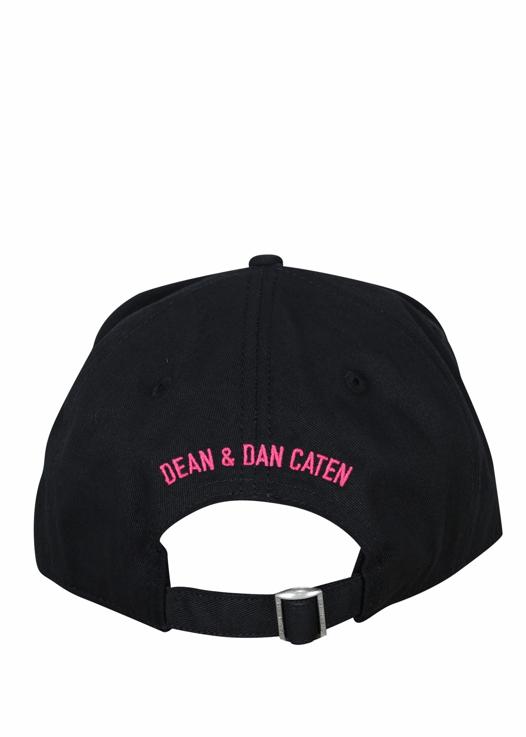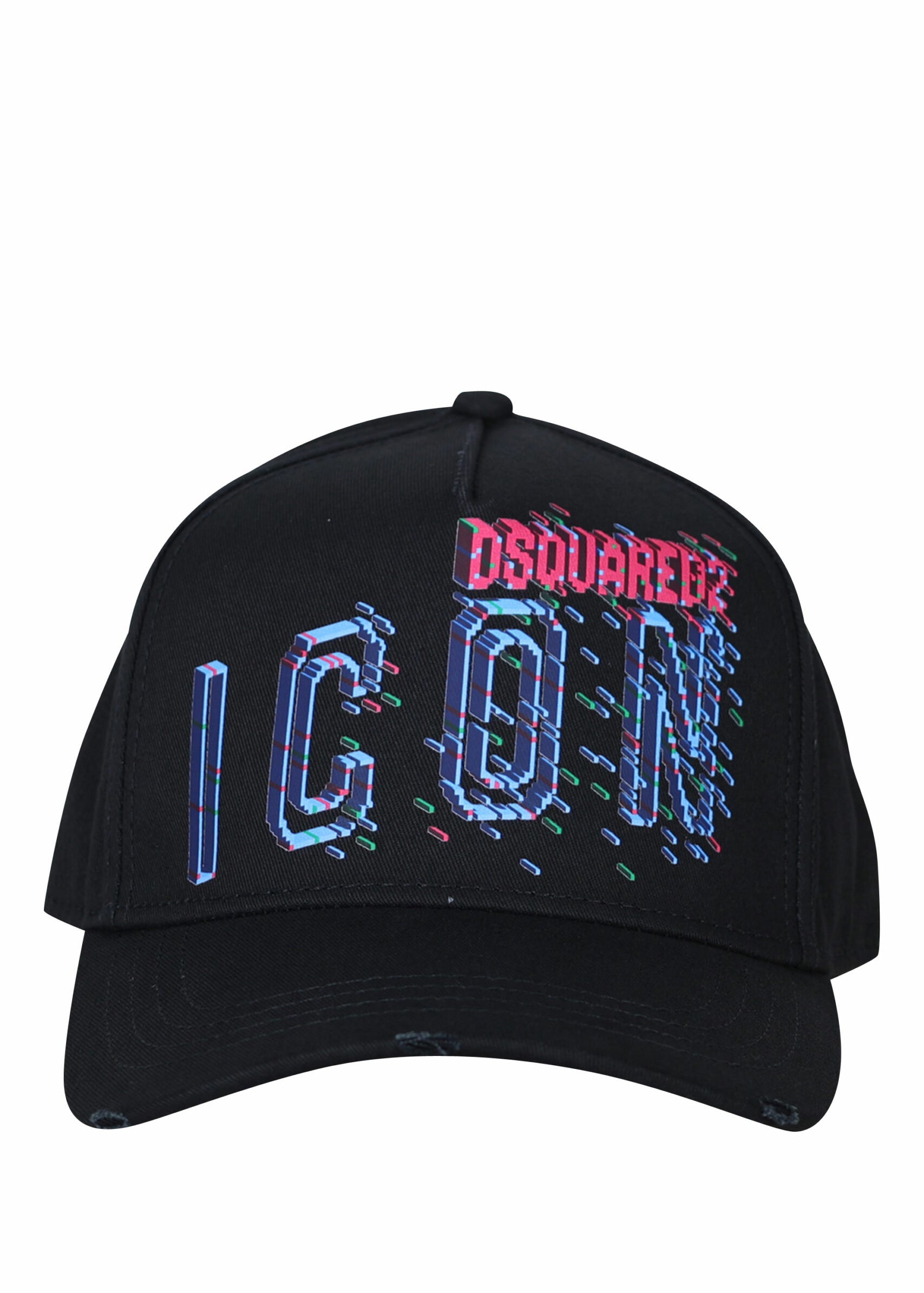 Gorra negra amb logo "icon pixeled" turquesa i fúcsia