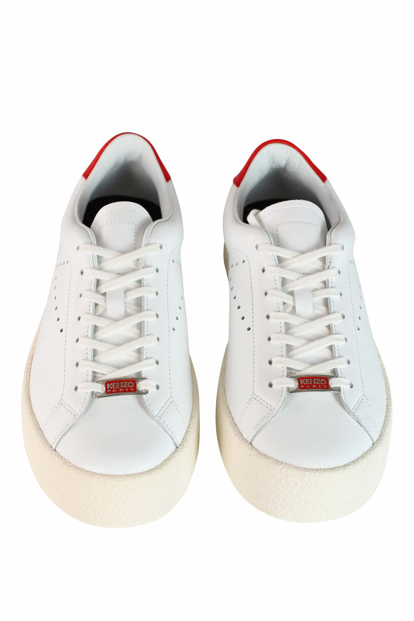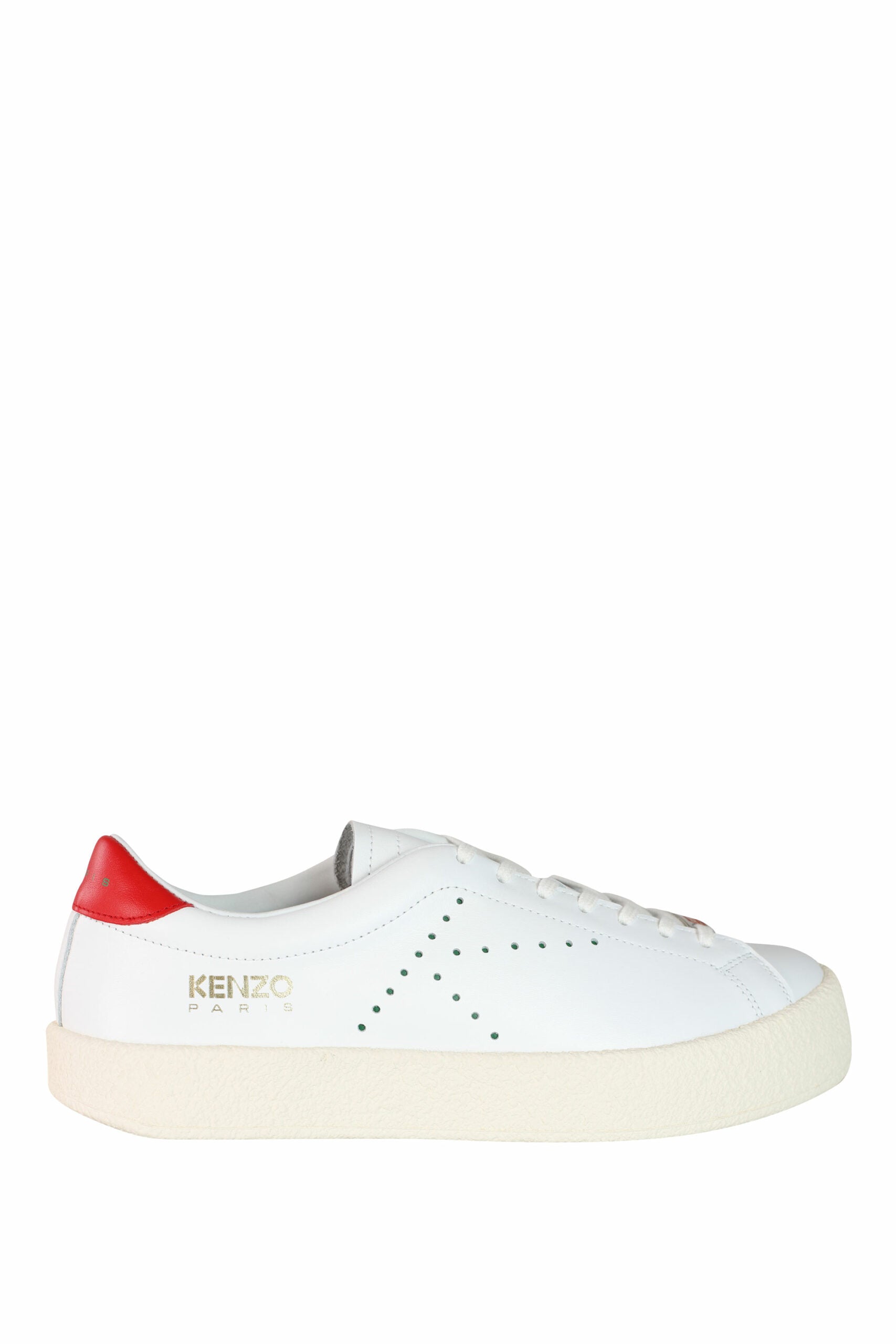 Sabatilles blanques "kenzoswing" amb detall vermell i logotip.