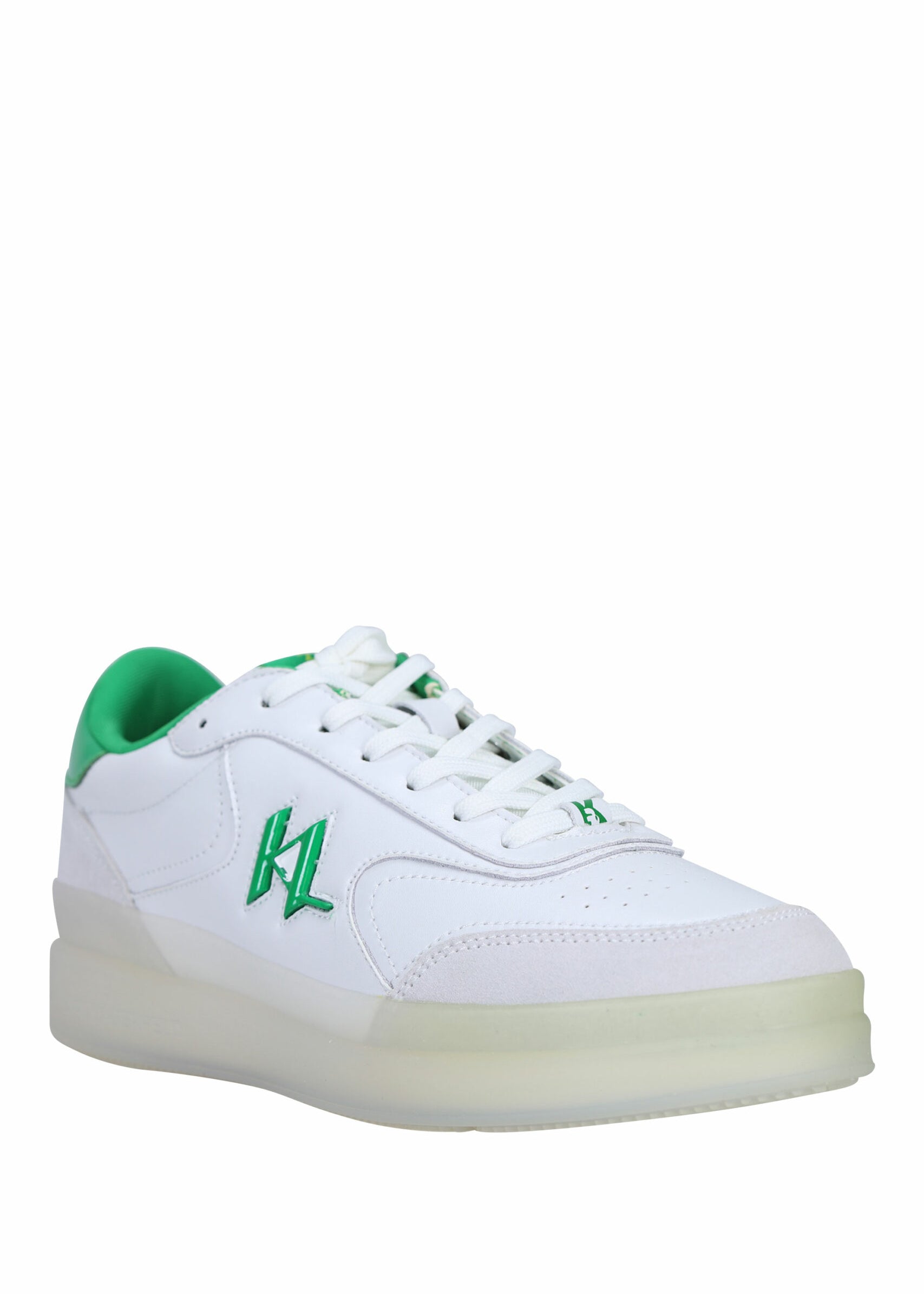 Sabatilles blanques i verd amb logo ull i detalls roses