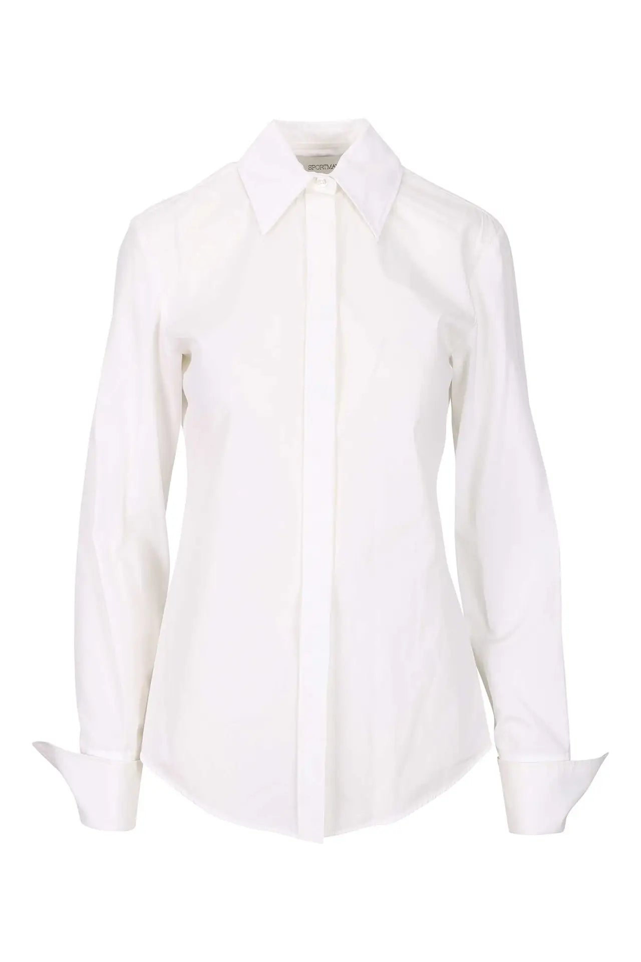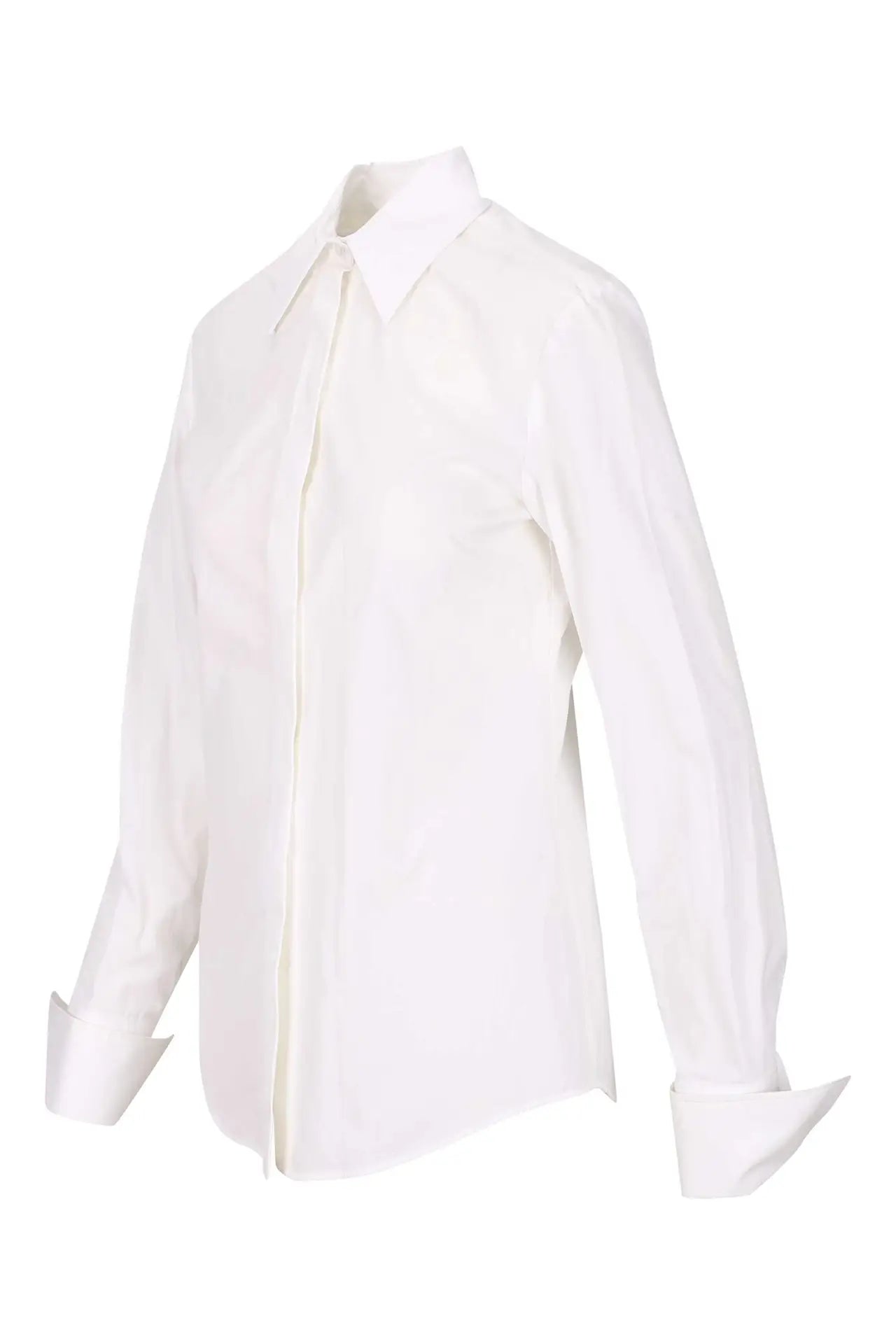 Camisa blanca de popelín entallada con botonadura oculta -