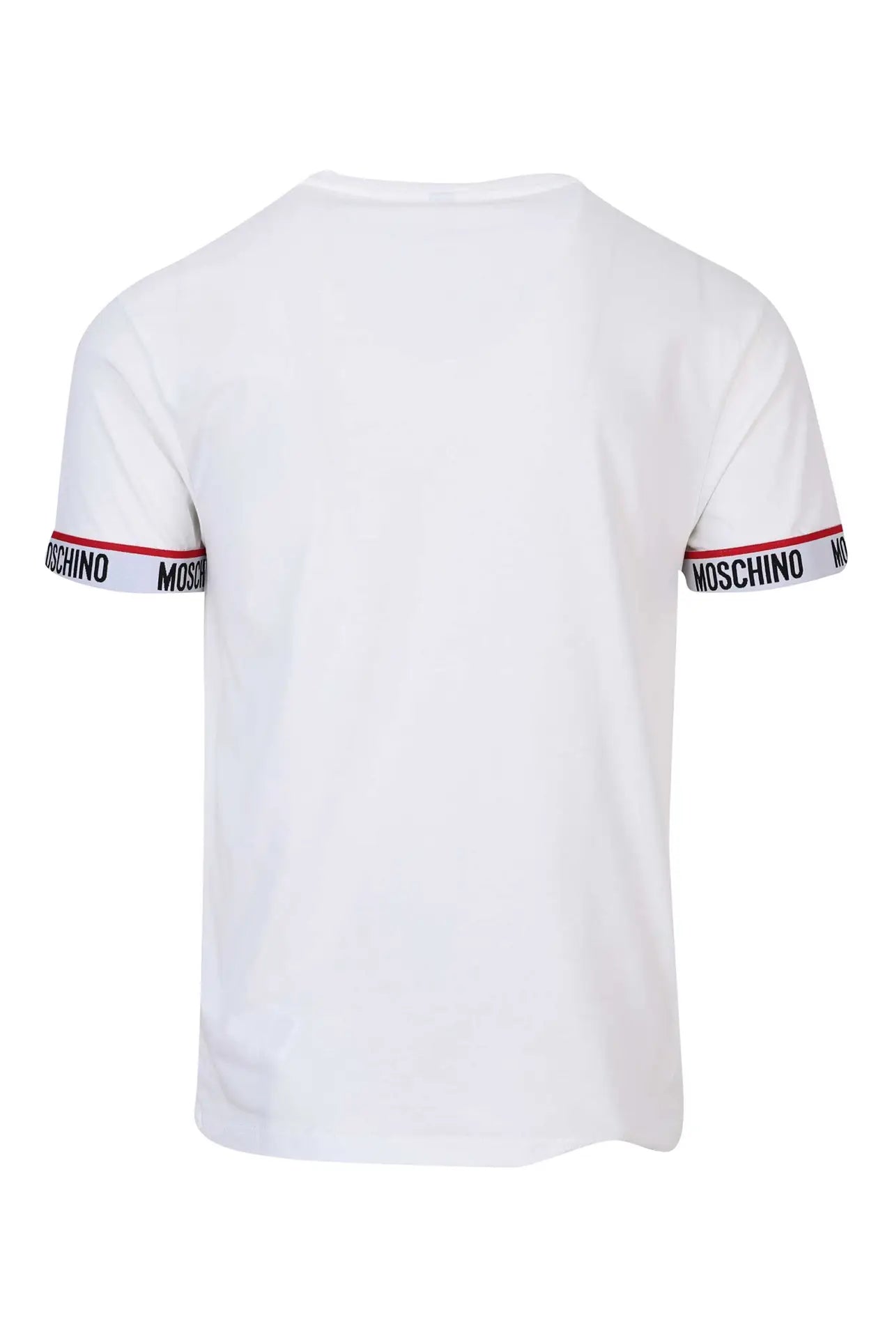 Camiseta blanca de algodón con logo cinta en mangas y mini logo monocromático - M -