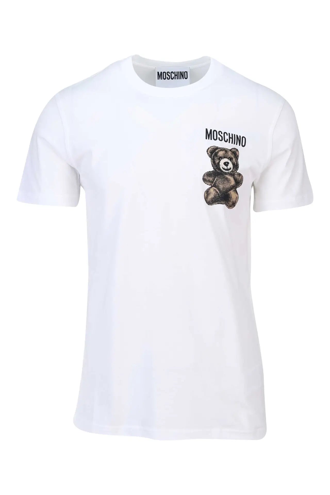 Camiseta blanca de algodón orgánico con mini logo oso lateral -