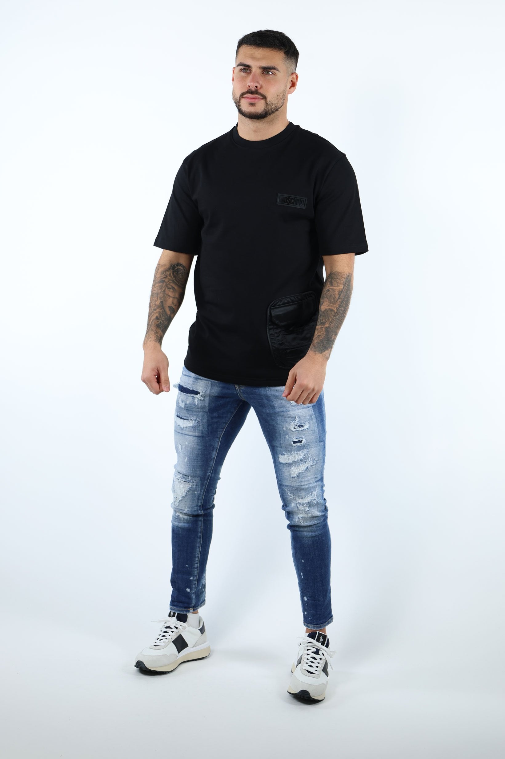 Samarreta negra mix amb butxaca i logo etiqueta monocromàtic - 50