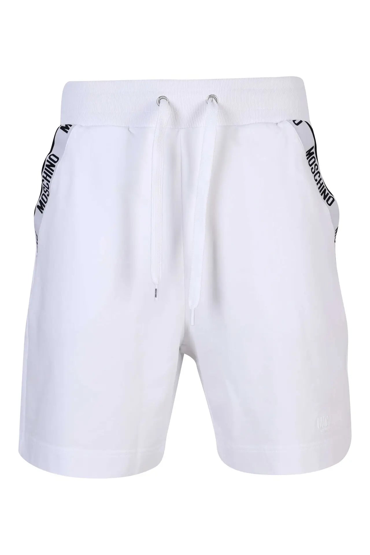 Pantalón corto blanco de chándal con logo cinta en bolsillos y cintura ancha -