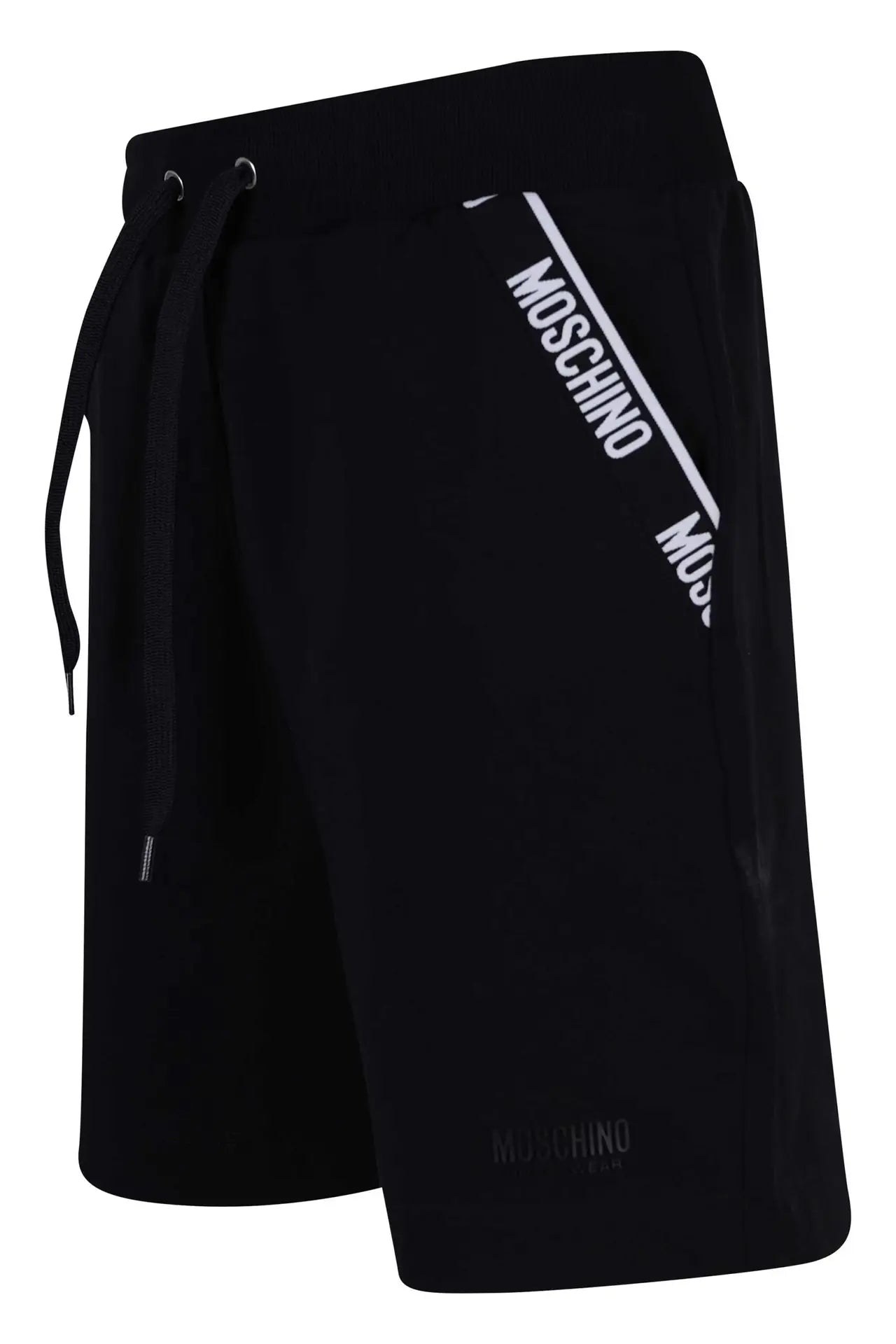 Pantalón corto negro de chándal con logo cinta en bolsillos y cintura ancha -