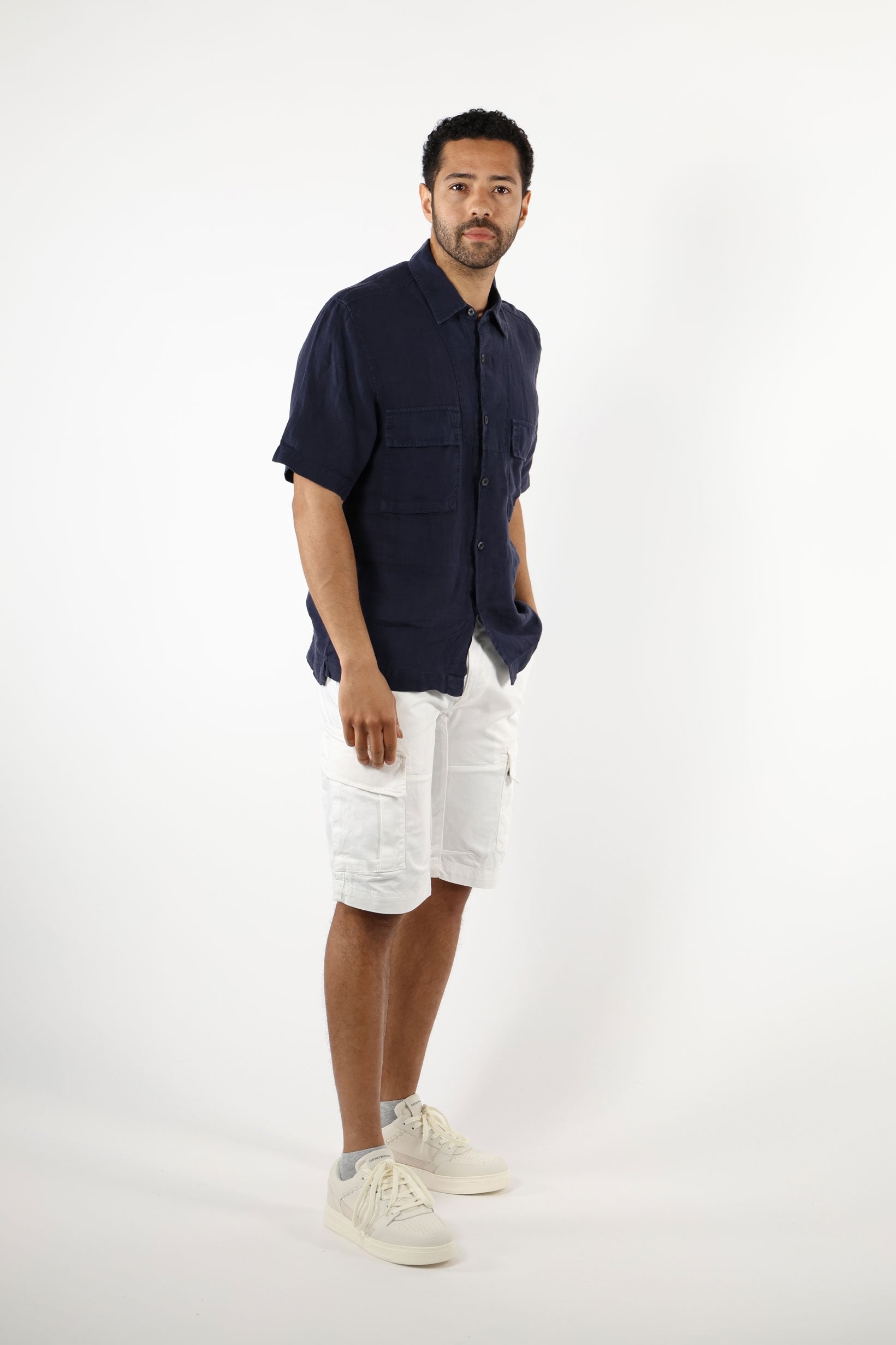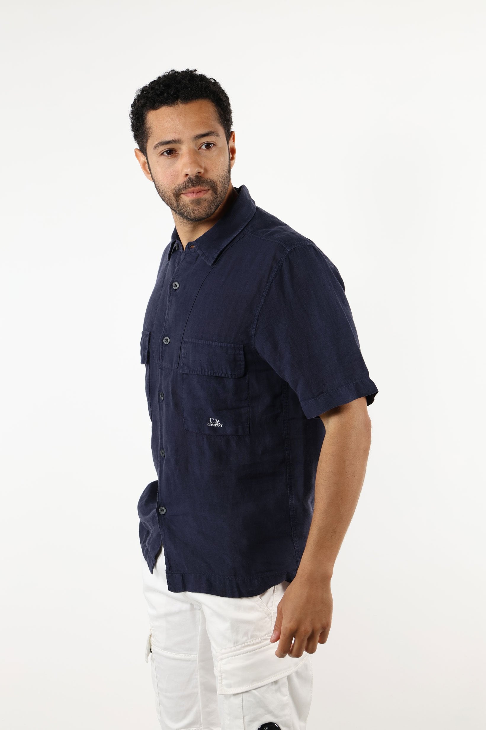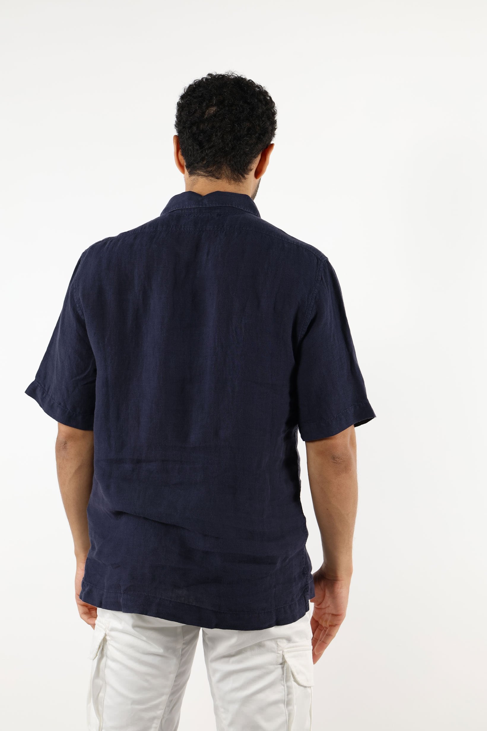 Camisa màniga curta blau fosc amb botons i butxaques amb minilogo - L -