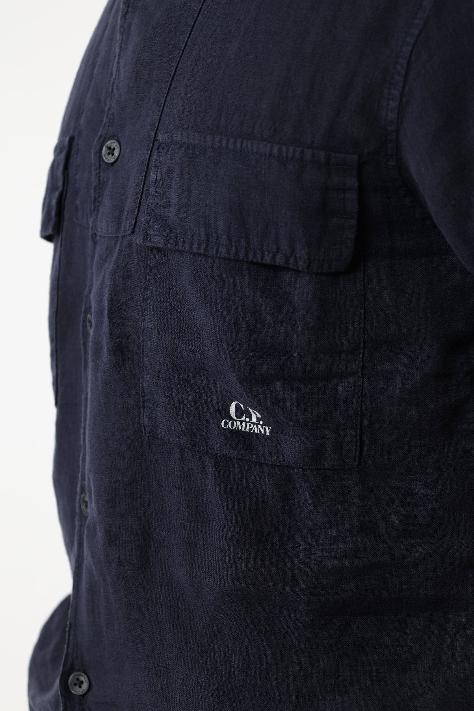 Camisa màniga curta blau fosc amb botons i butxaques amb minilogo - L