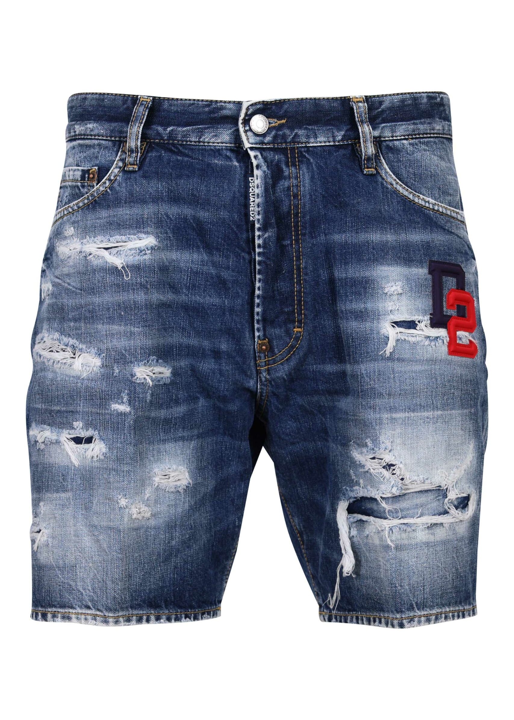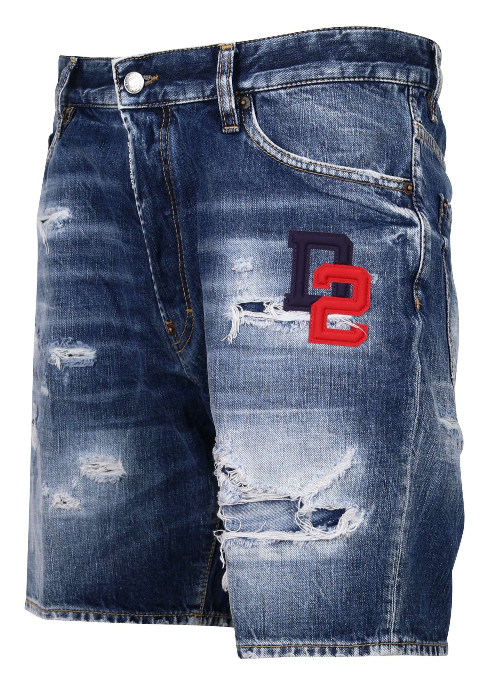 Pantalons texans curts blaus "marine short" amb logo vermell