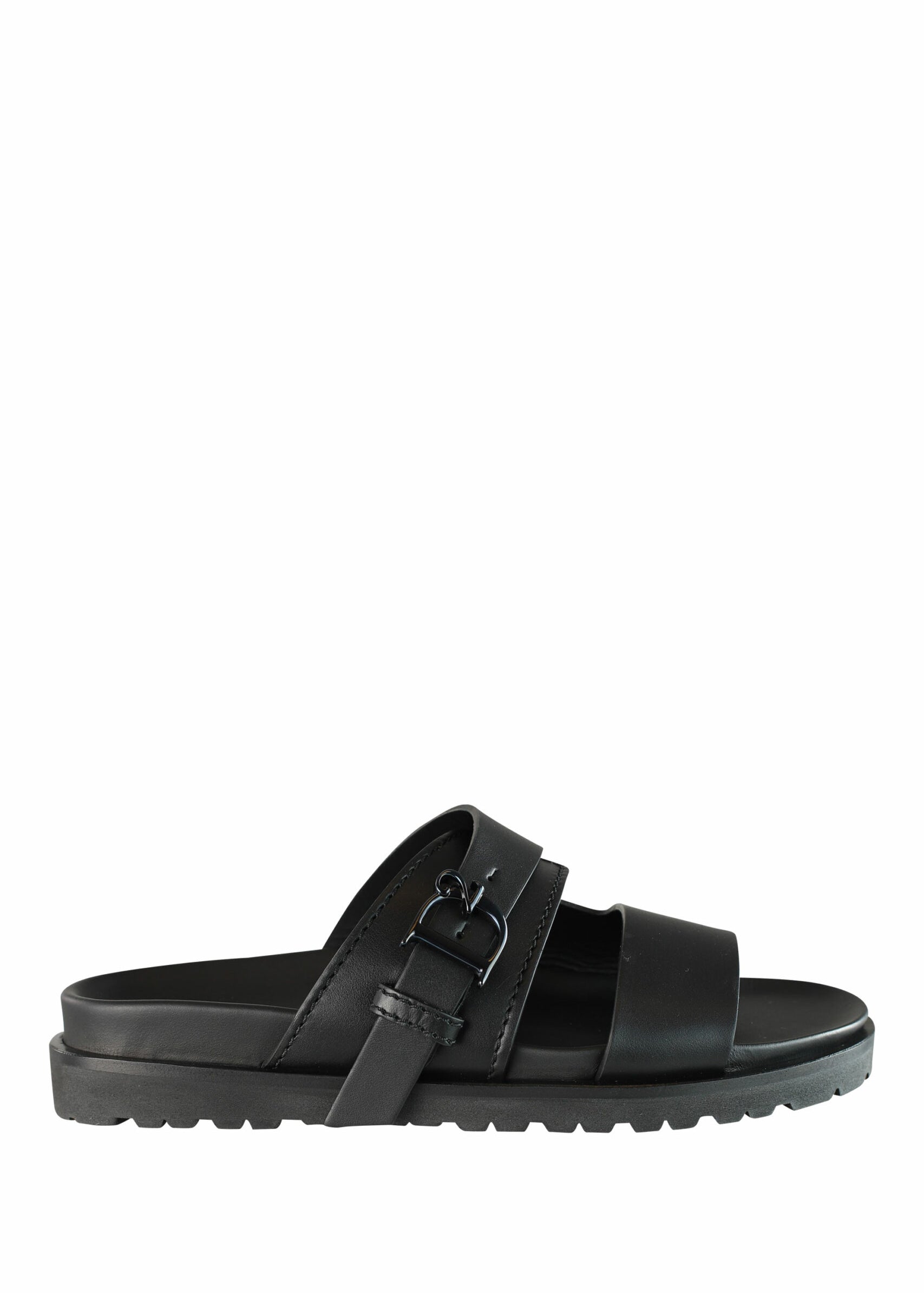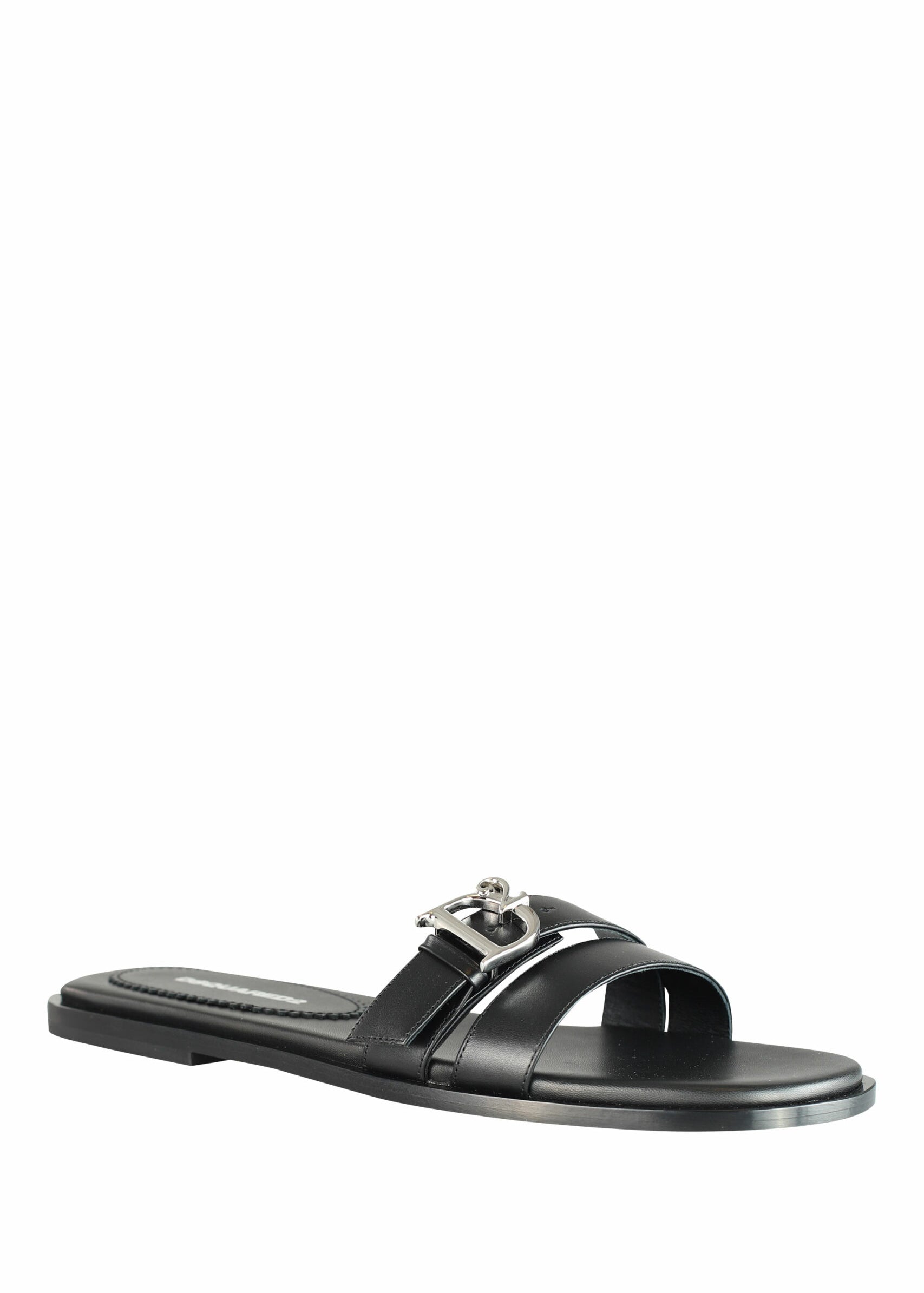 Sandàlies negres amb logo "D2" monocromàtic en metall