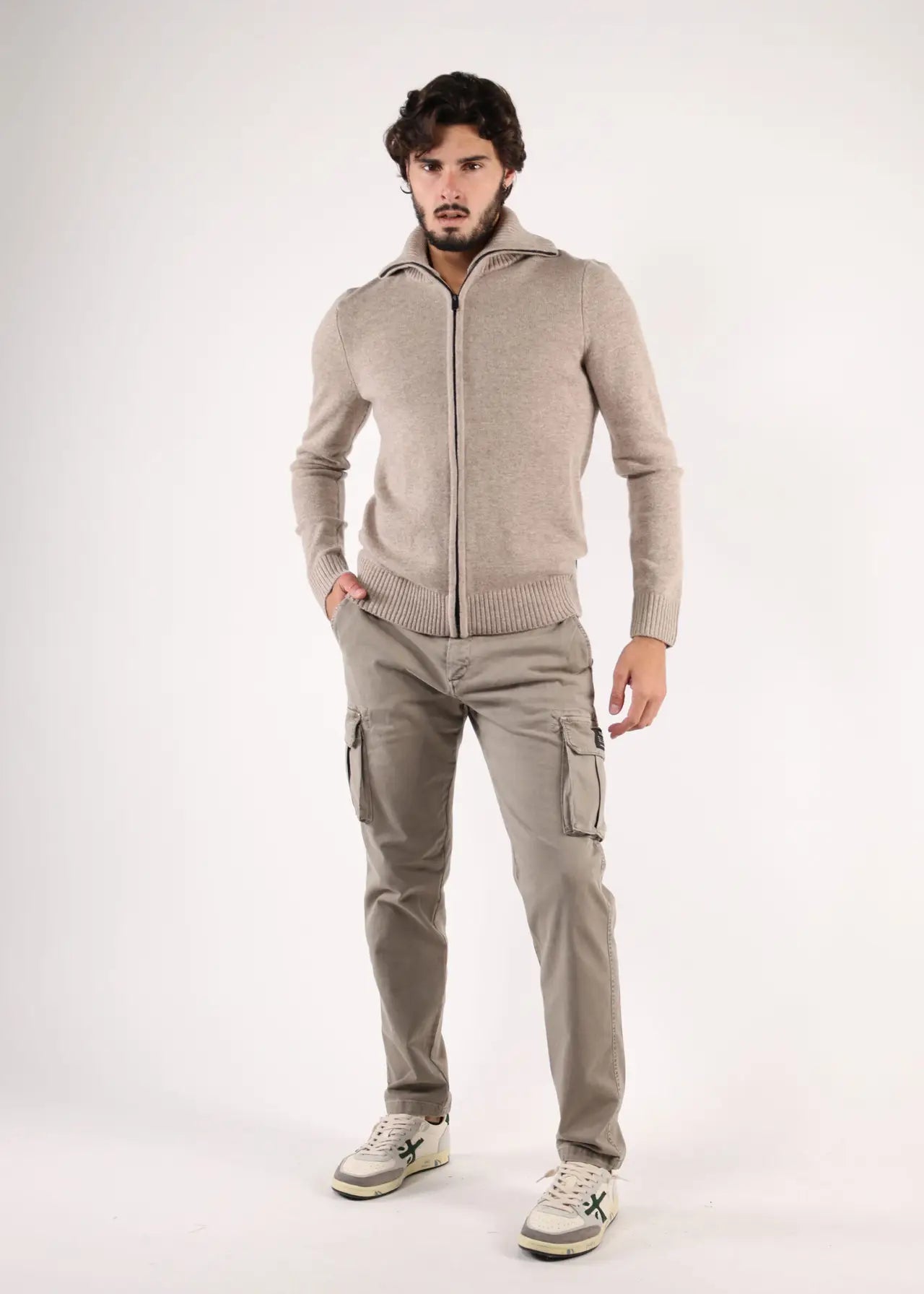 Jersey beige jaspeado de cremallera "Sasa" -