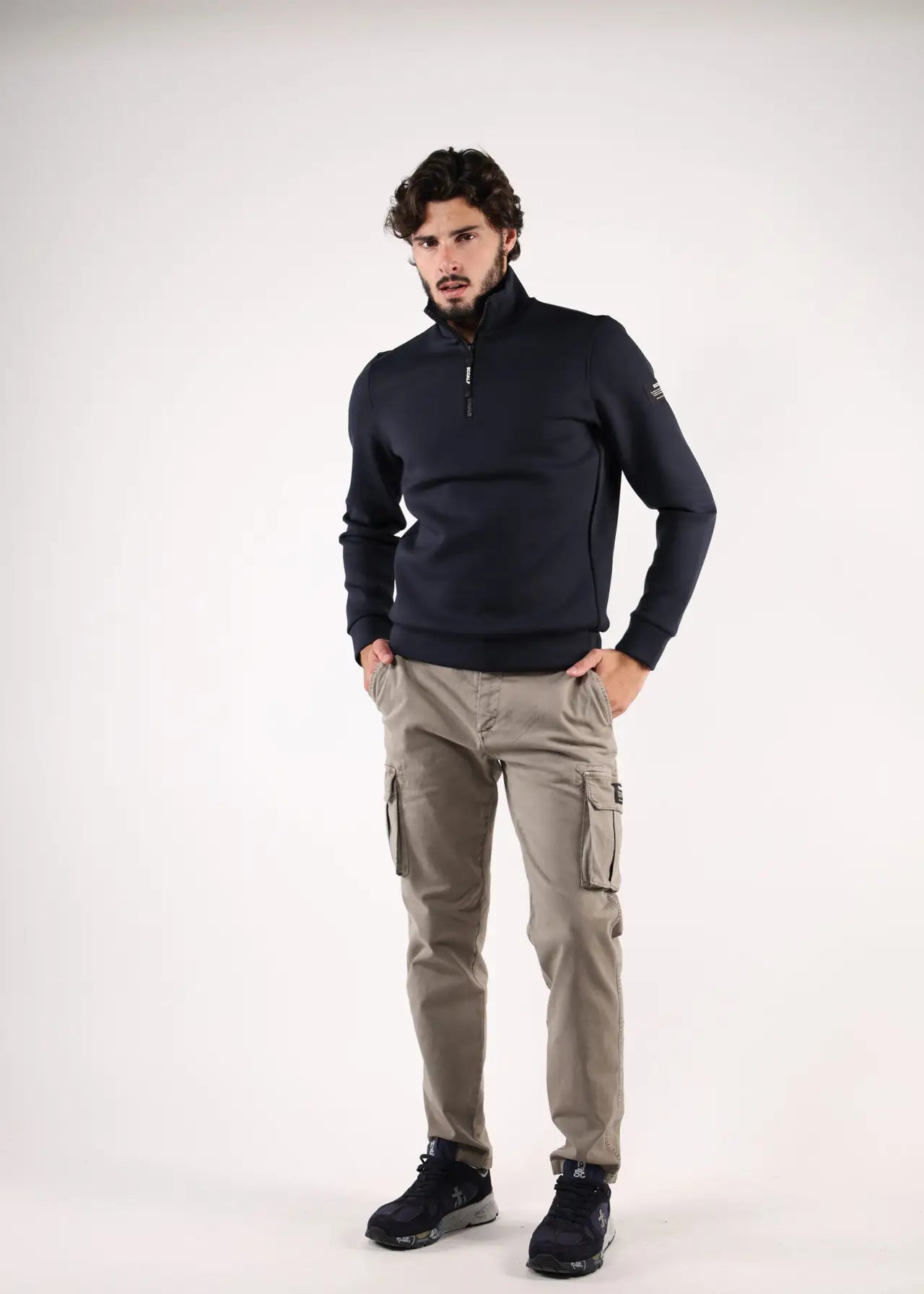 Sudadera azul oscura con cremallera en cuello "Betren" -