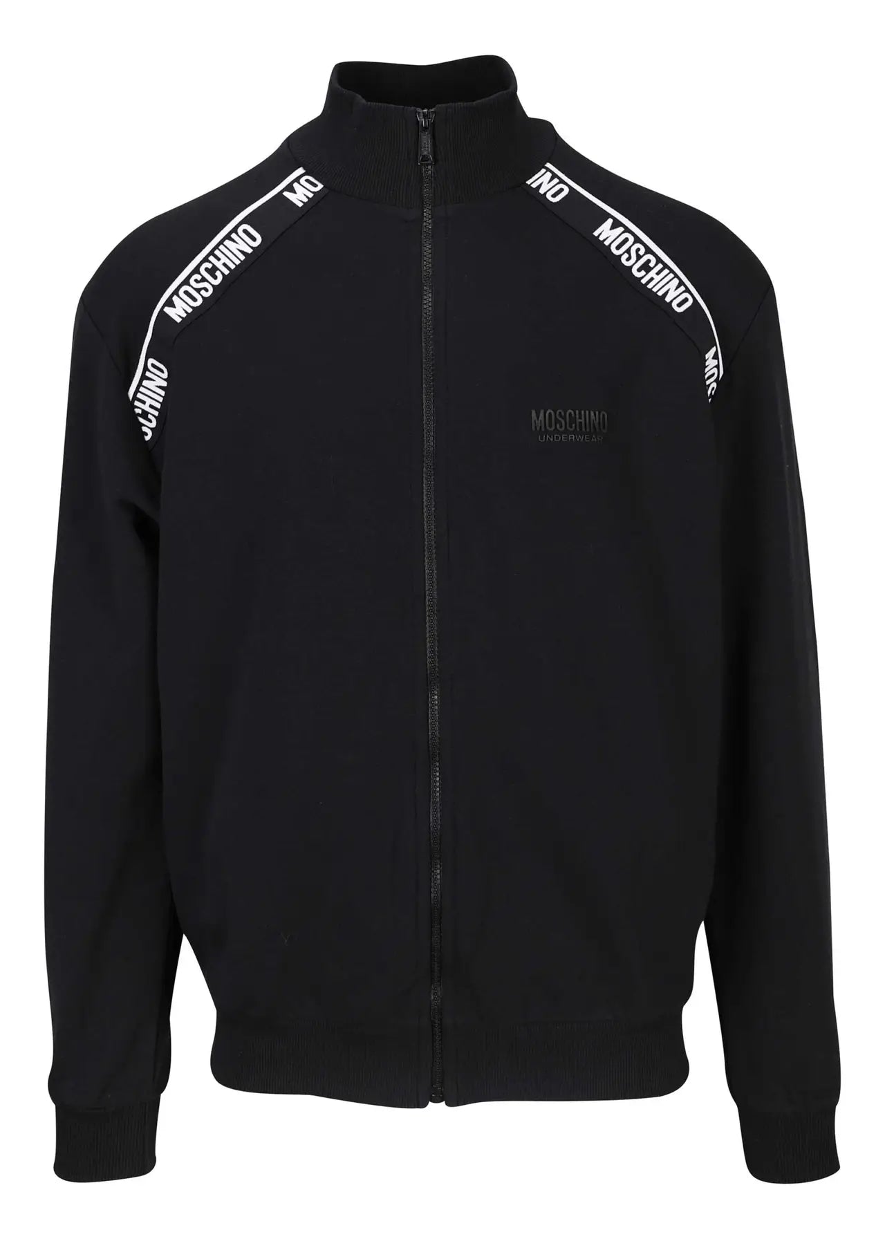 Sudadera negra con cremallera y logo en cinta -