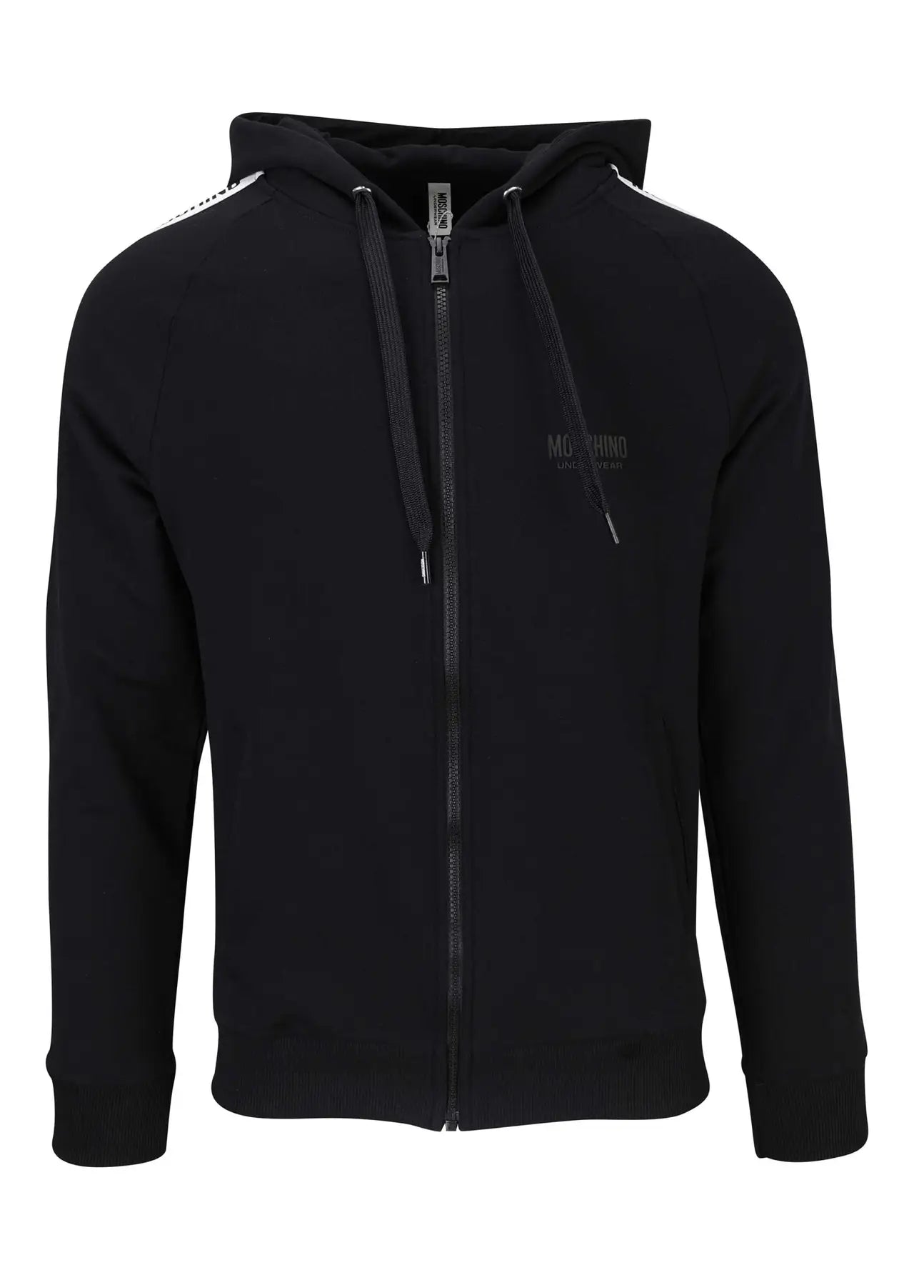 Sudadera negra de capucha con cremallera y logo de tira en mangas -