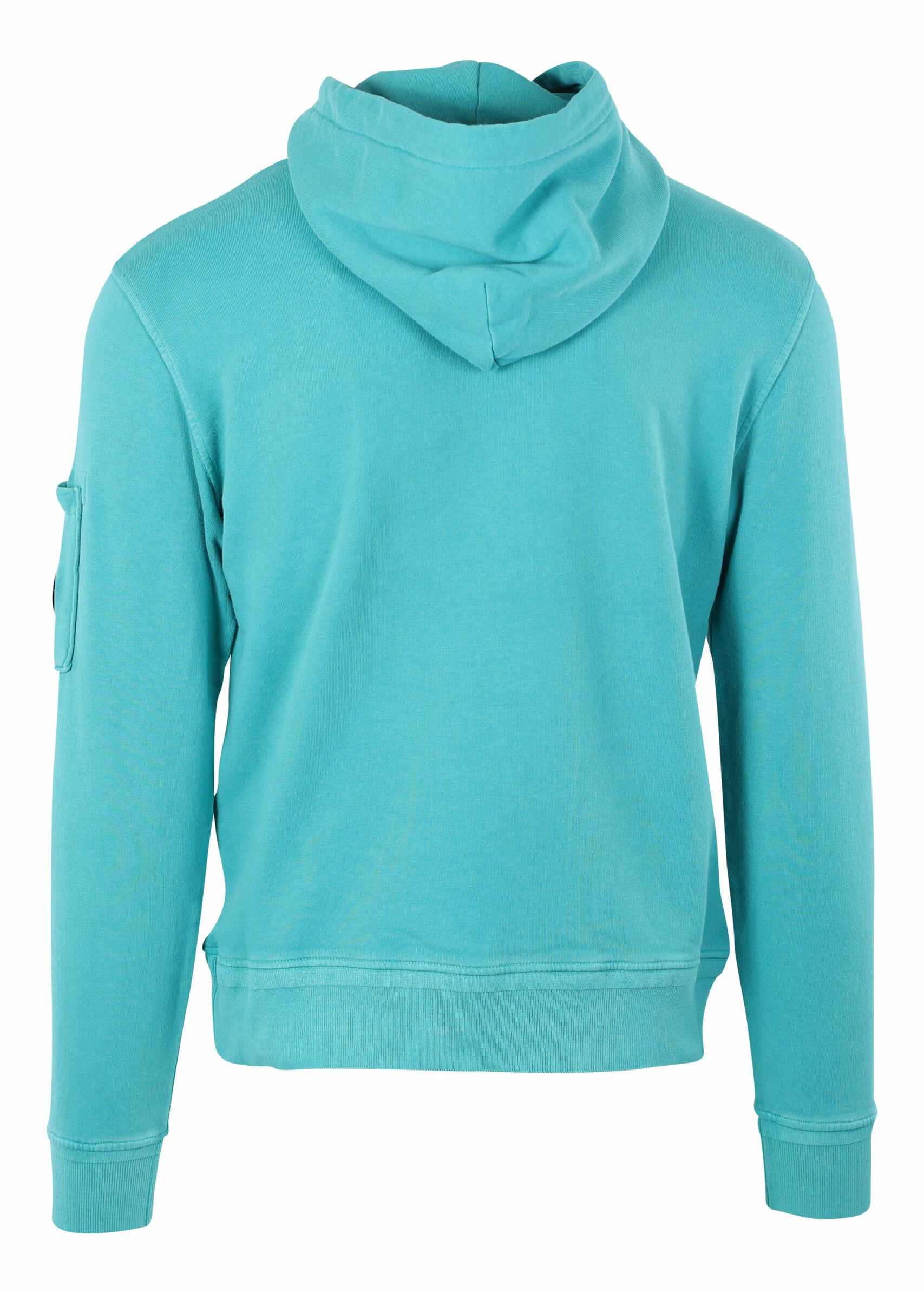 Dessuadora turquesa amb caputxa i minilogo circular lateral