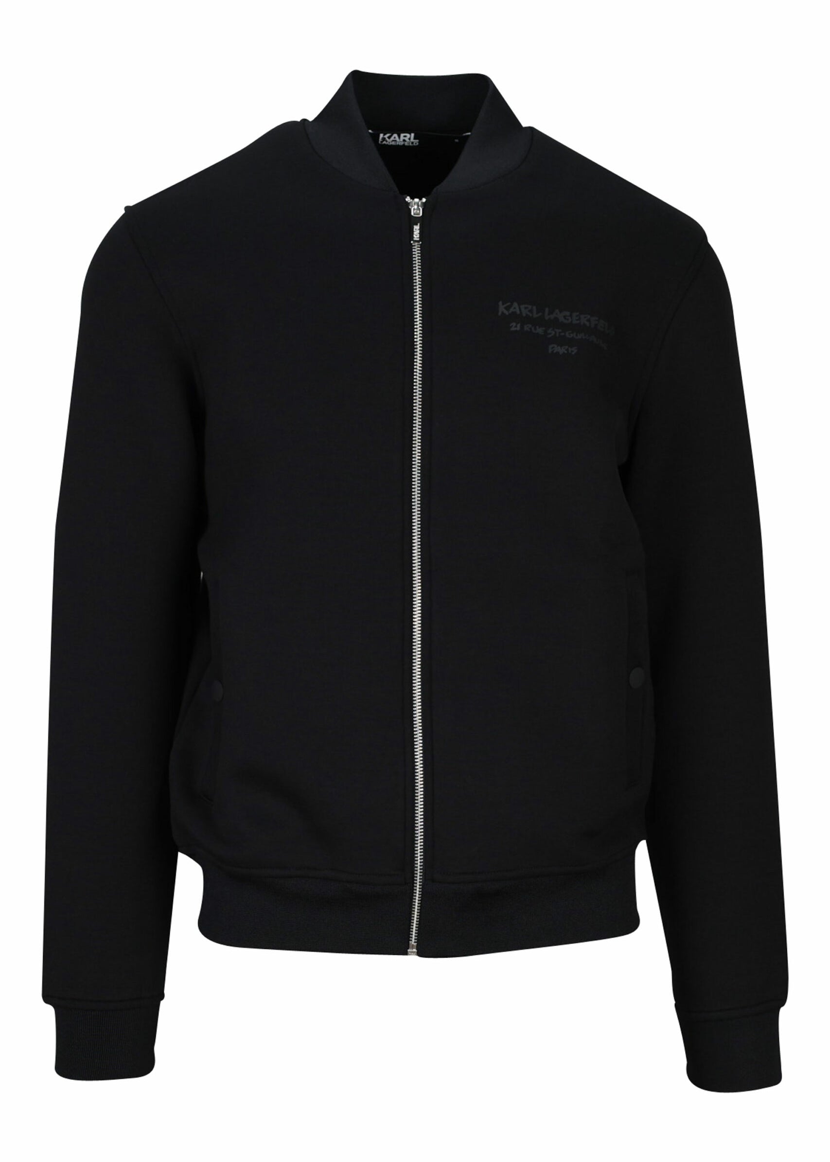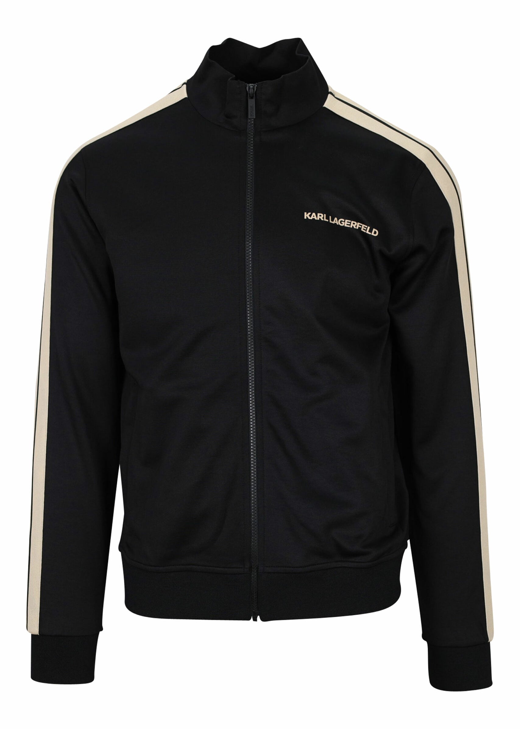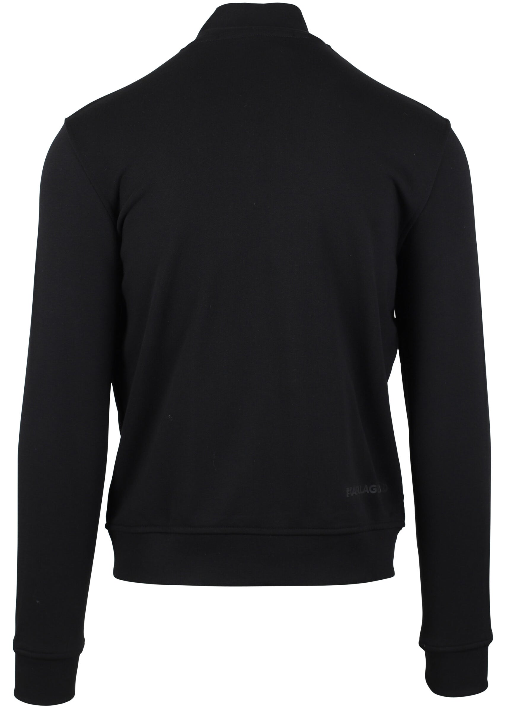 Dessuadora negra amb cremallera i logo "karl" en silueta blanc