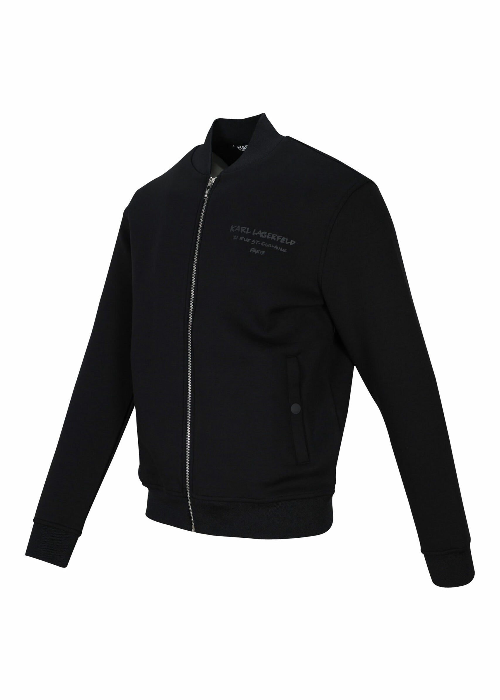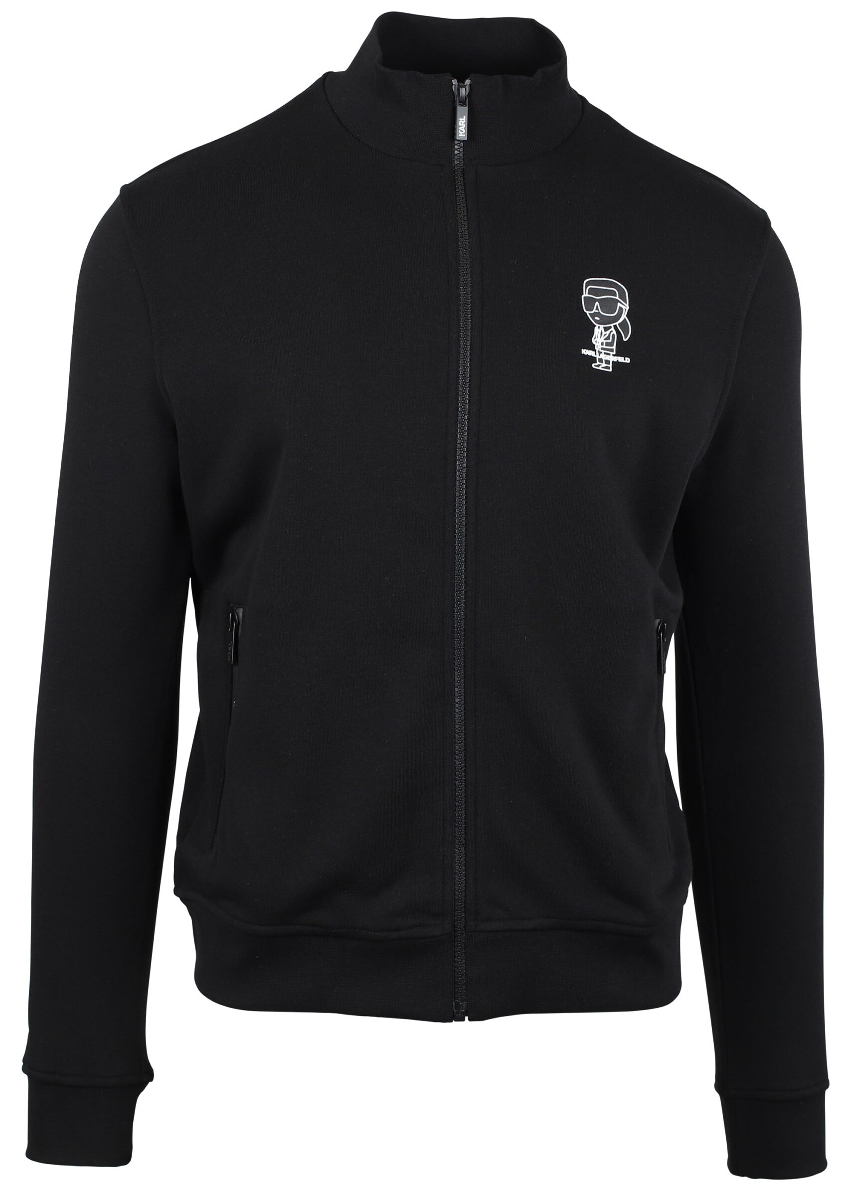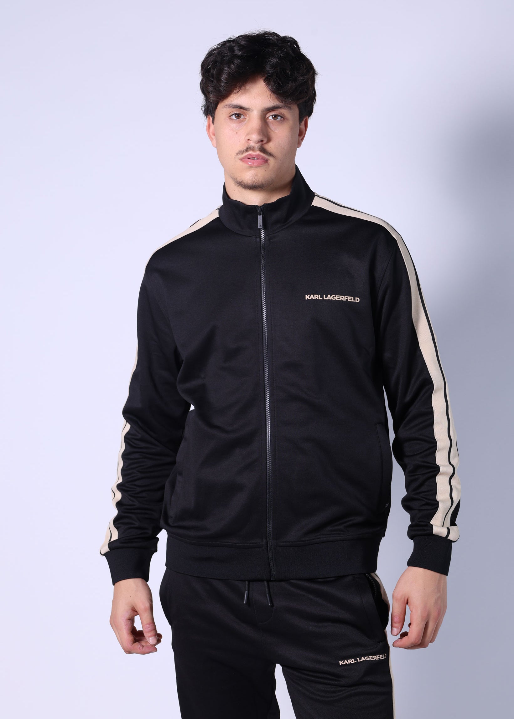 Dessuadora negra amb cremallera i logo "karl" en silueta blanc