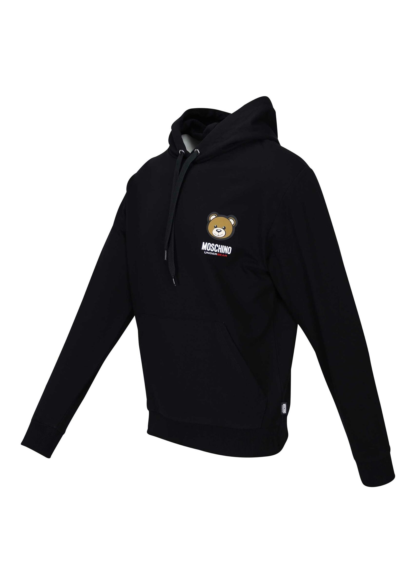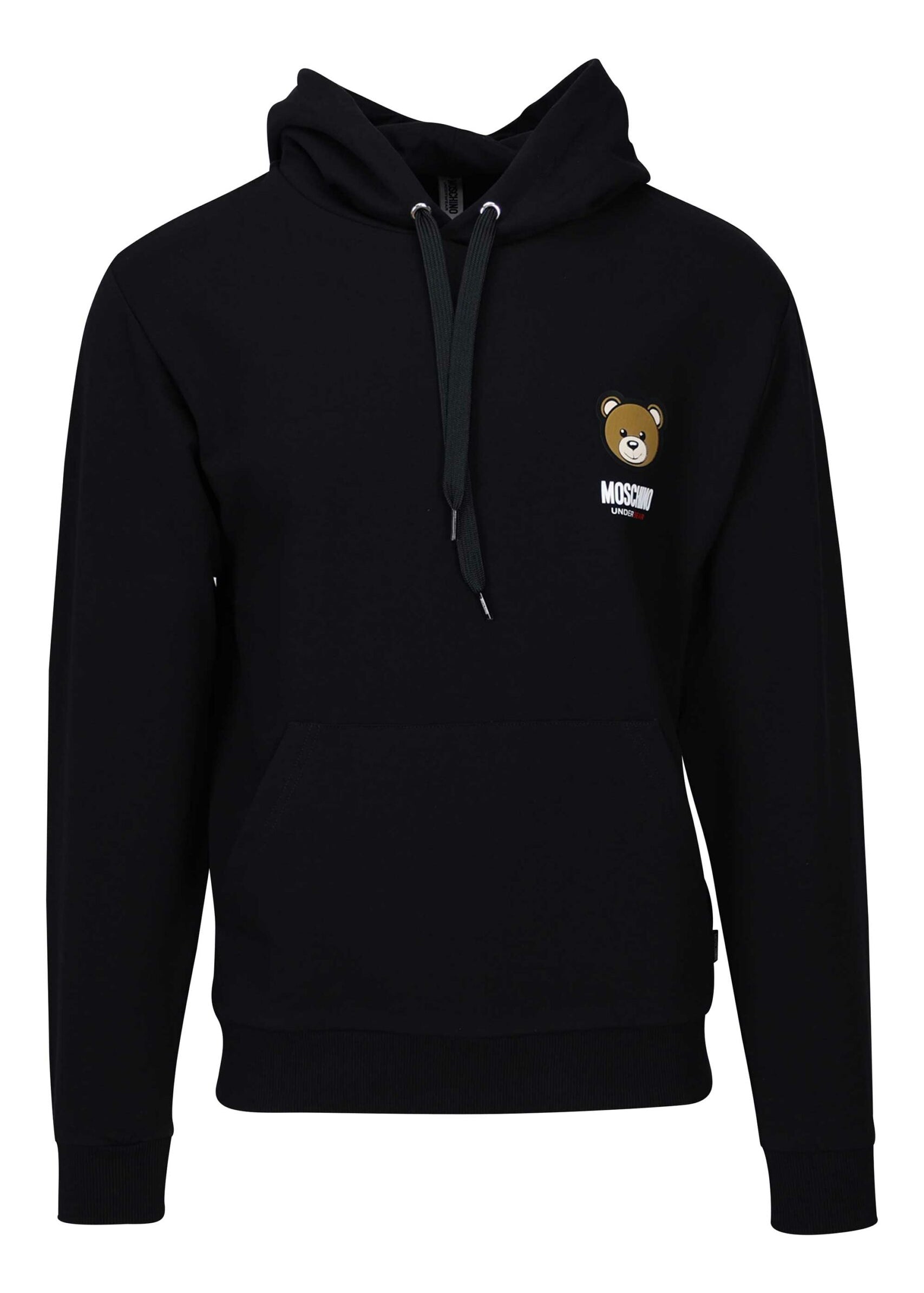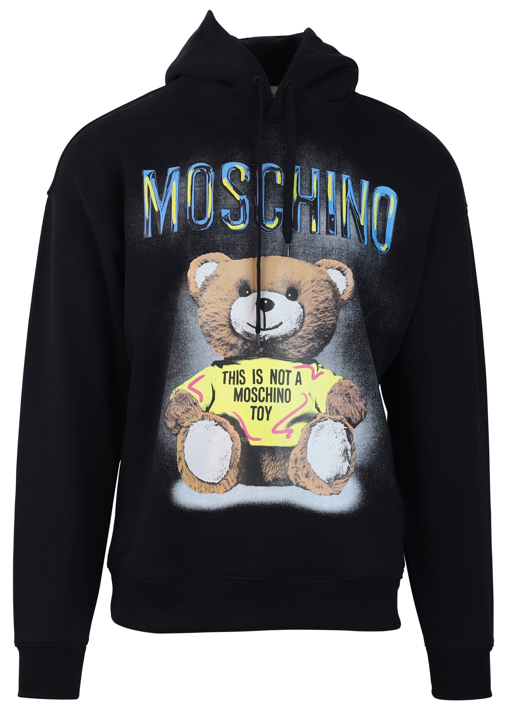 Dessuadora negra amb caputxa i maxil·log ós "this is not a moschino toy"