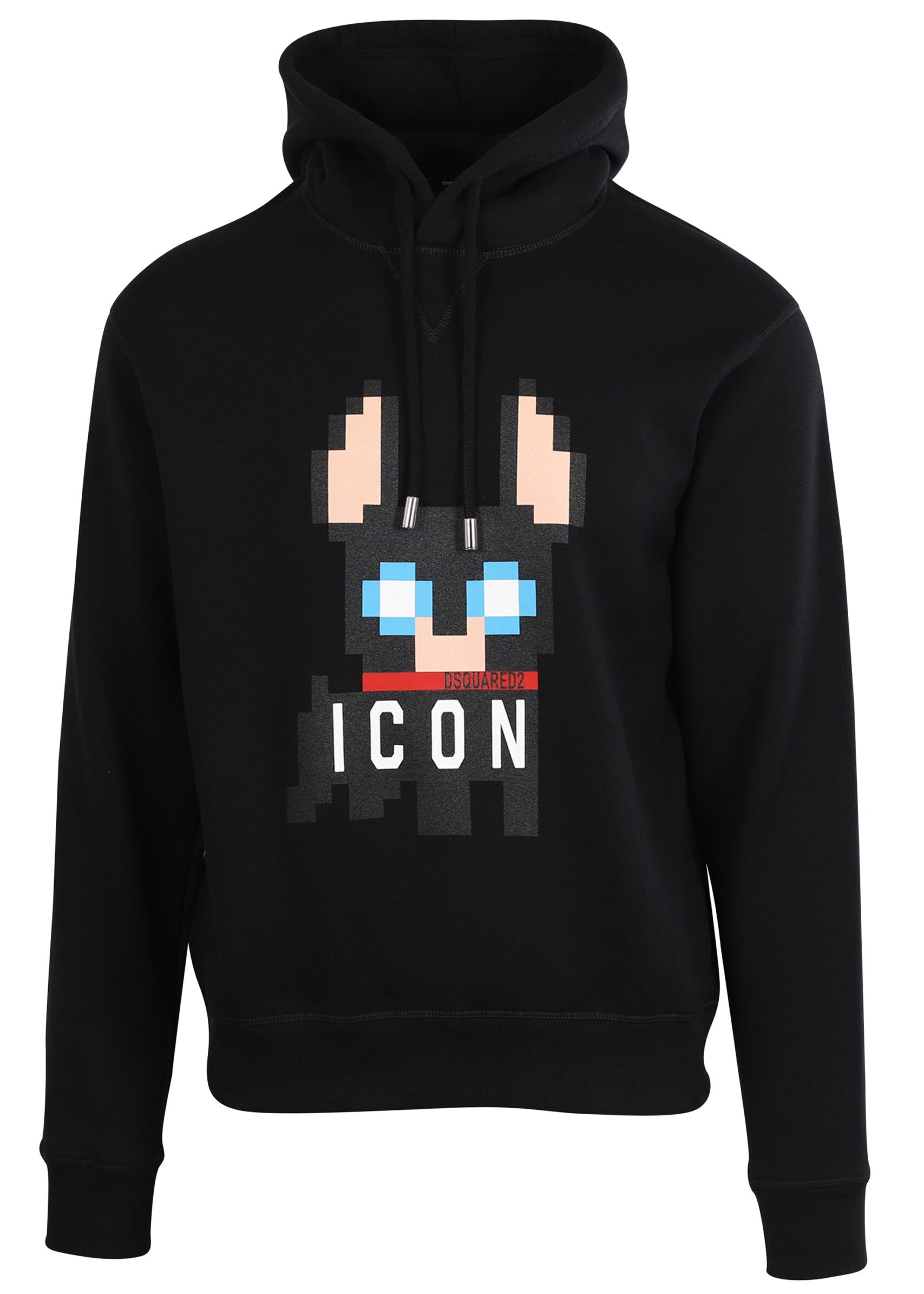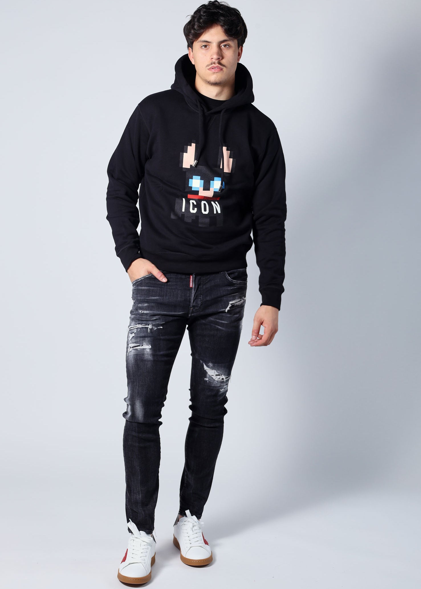 Dessuadora negra amb caputxa i maxil·logo "icon" quadrat