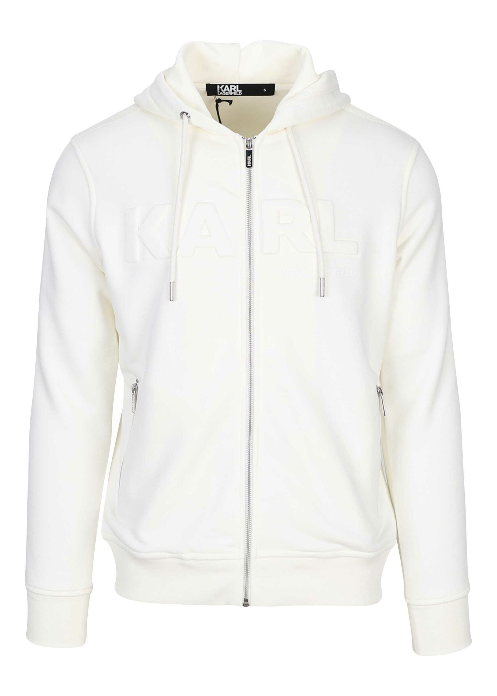 Dessuadora beix amb cremallera i caputxa i minilogo "lux identity"