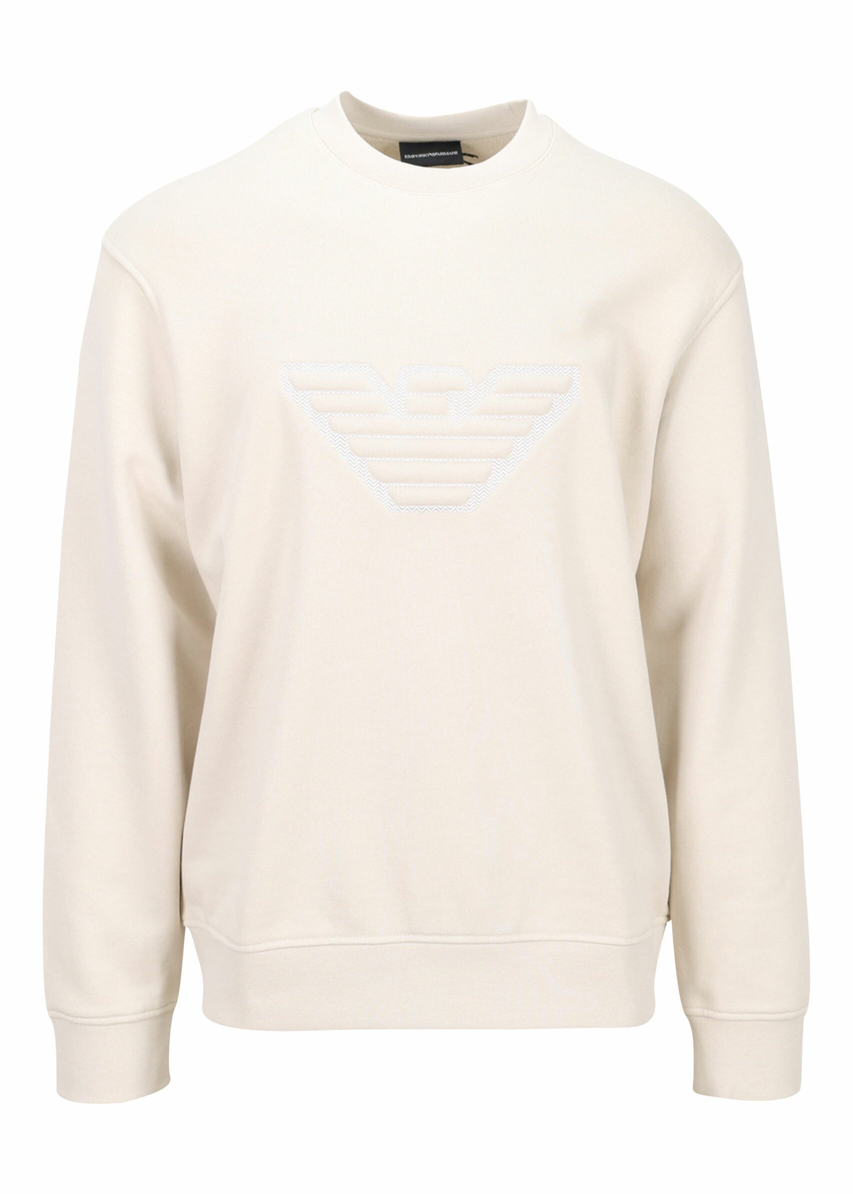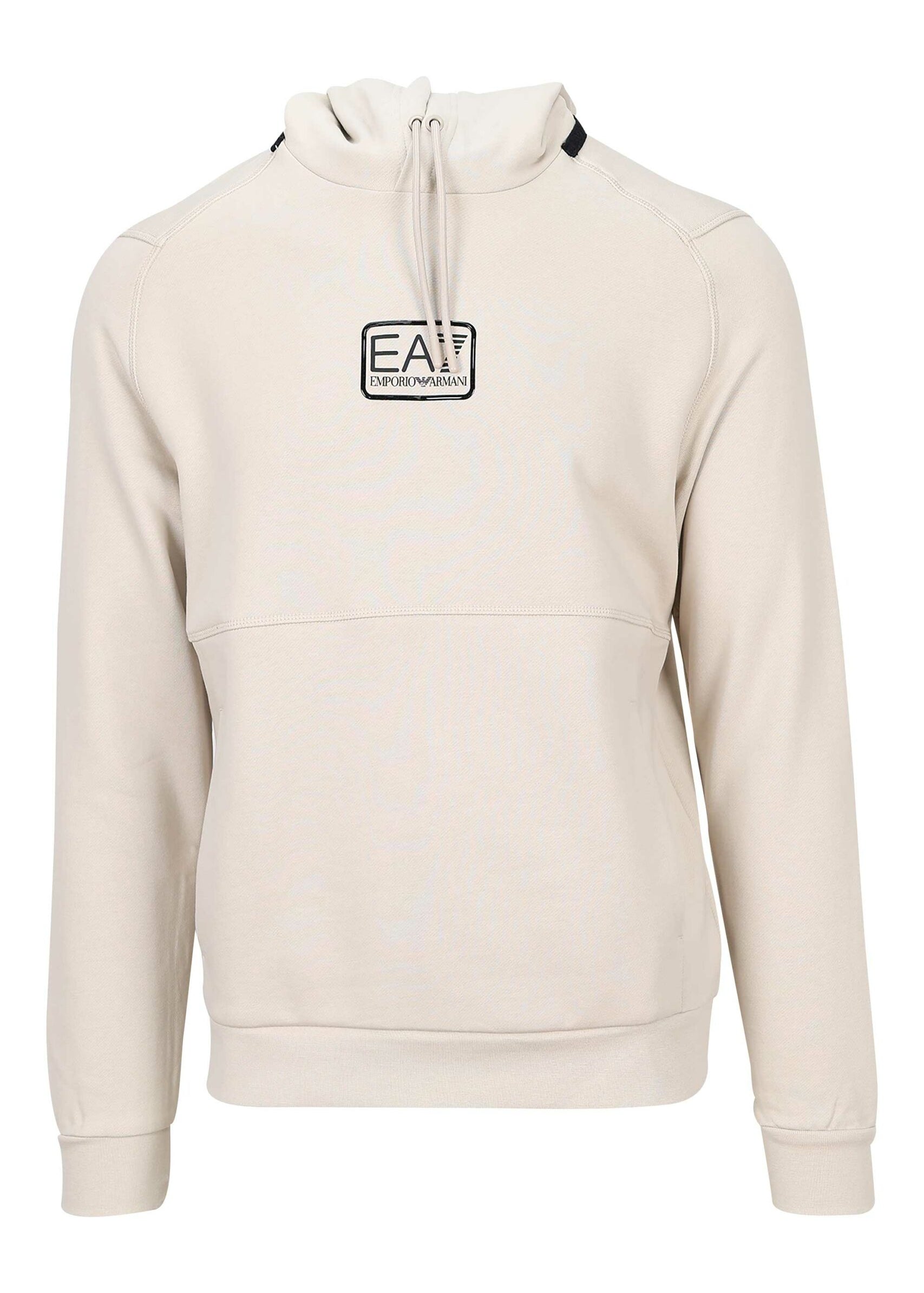 Dessuadora beix amb caputxa i minilog centrat etiqueta "lux identity"