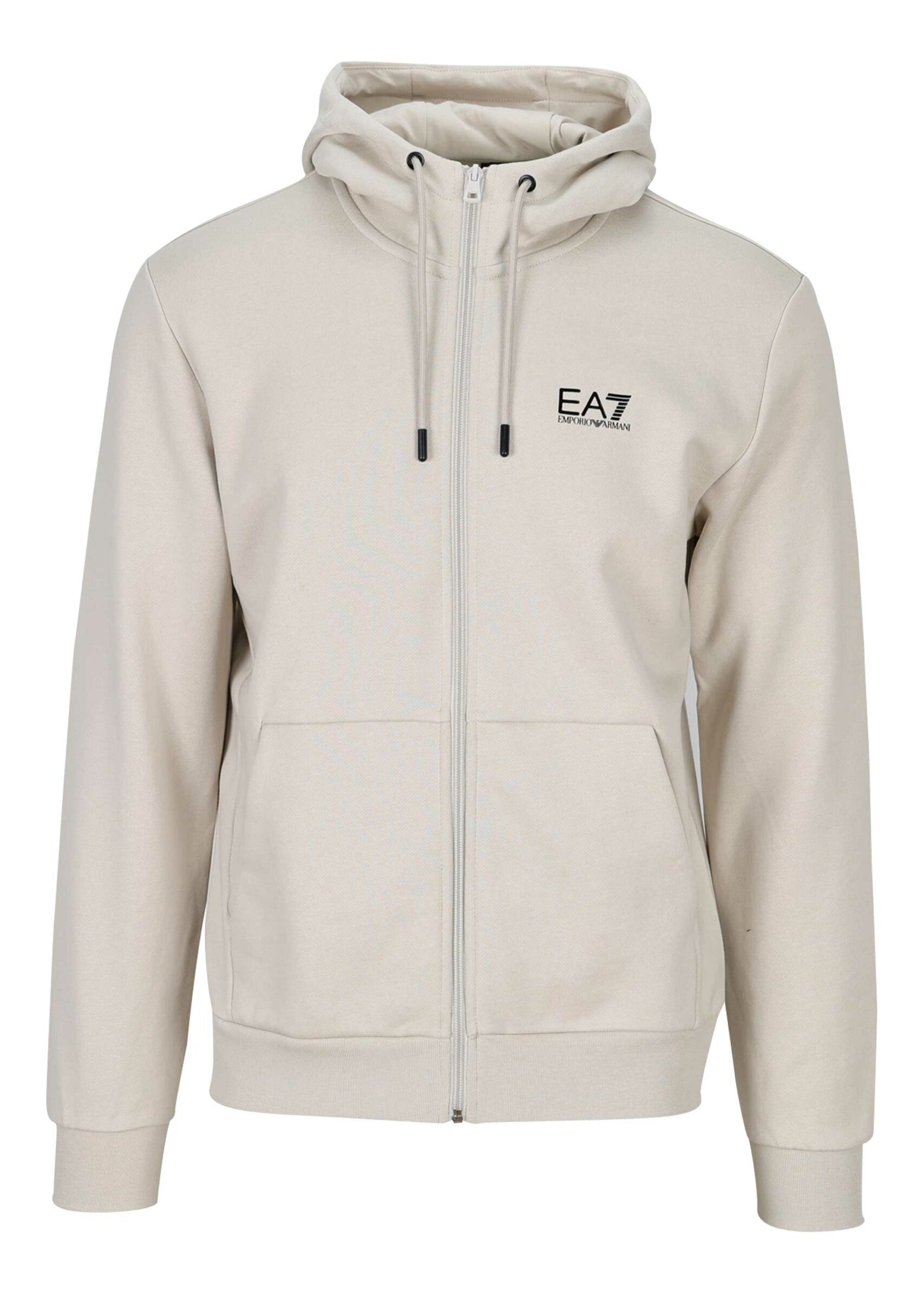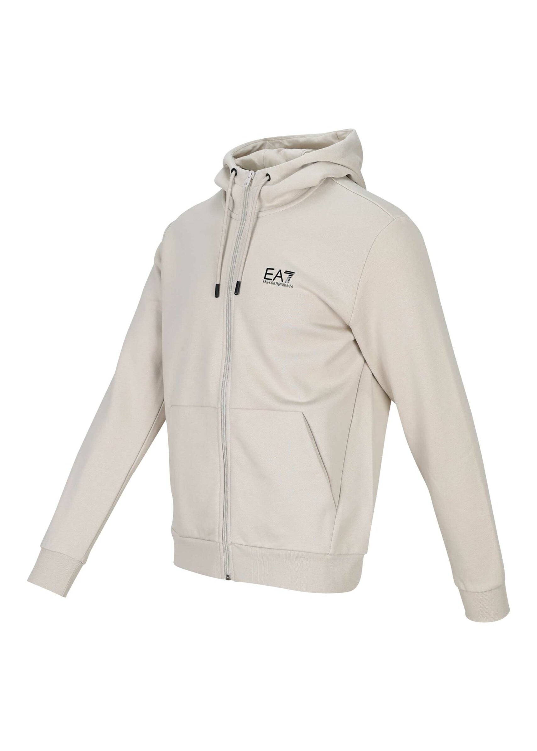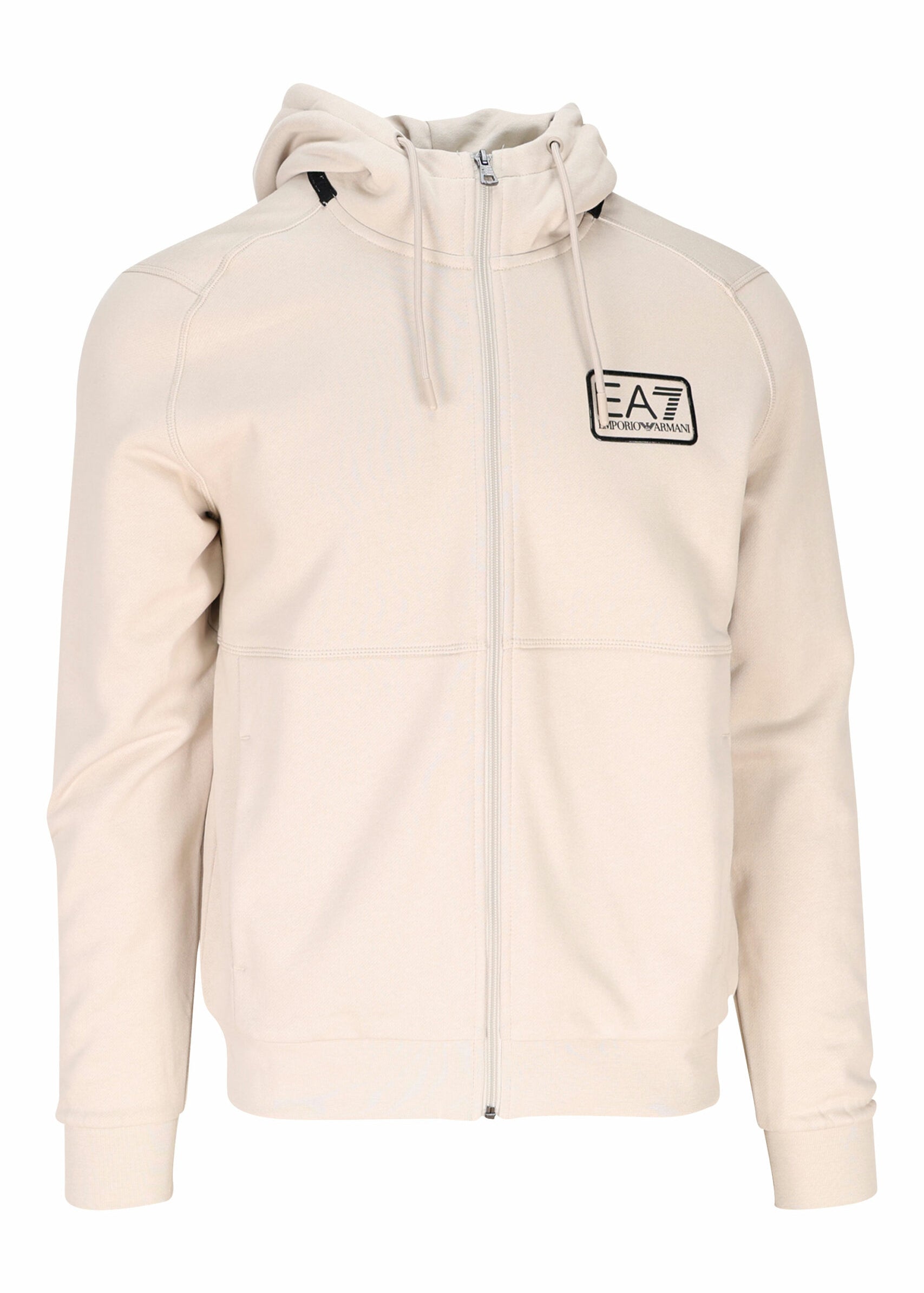 Dessuadora beix amb caputxa i cremallera amb minilogo