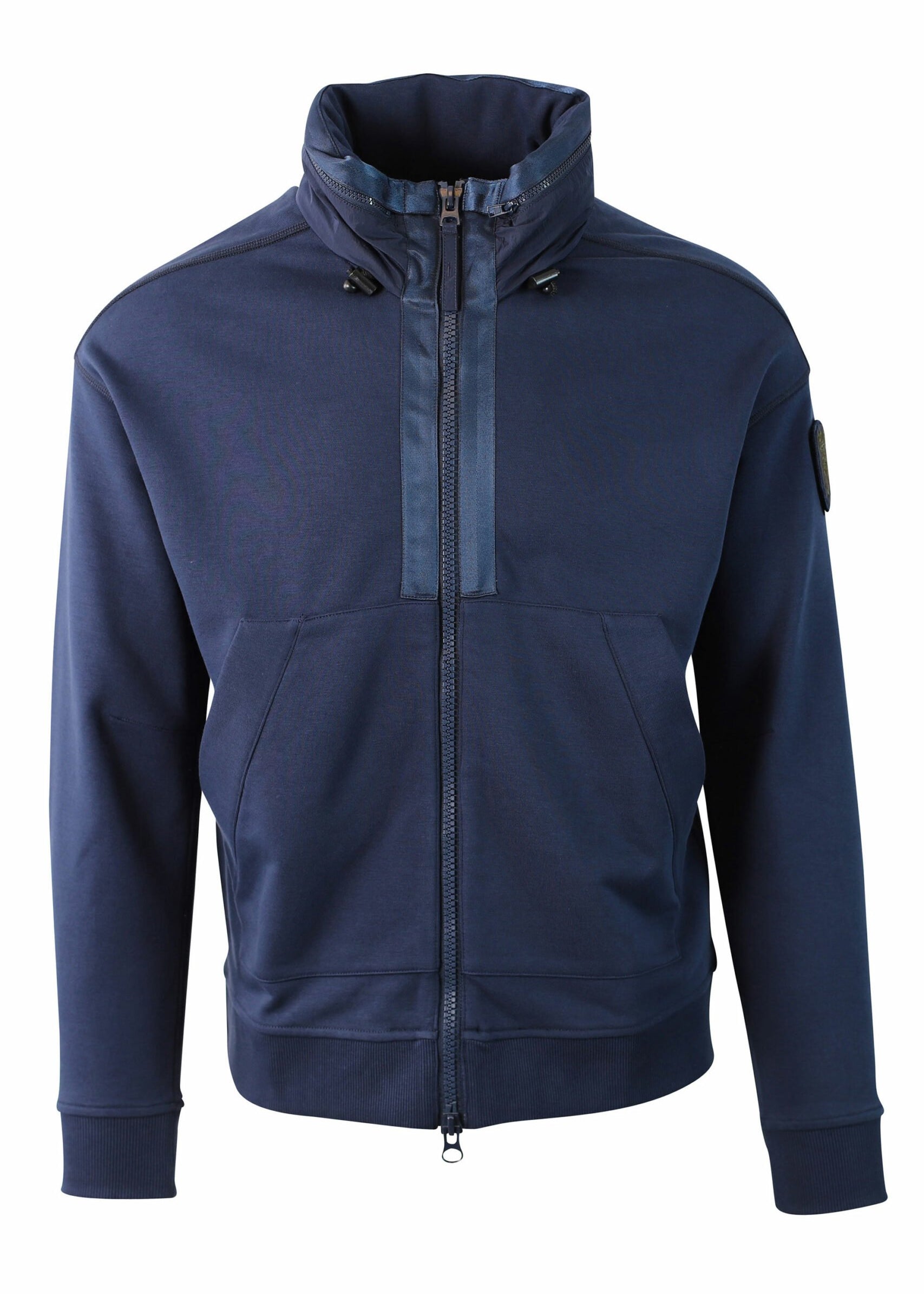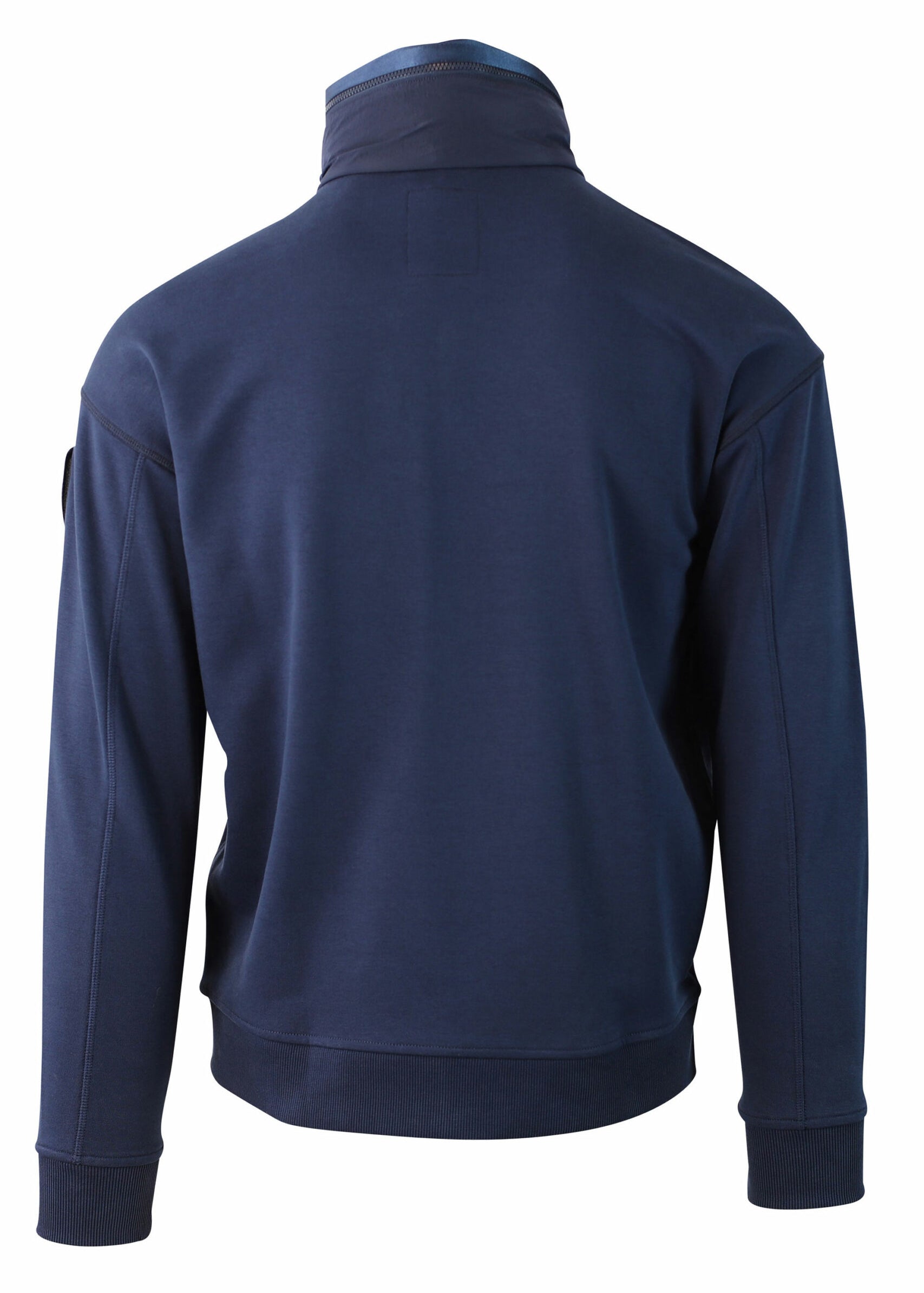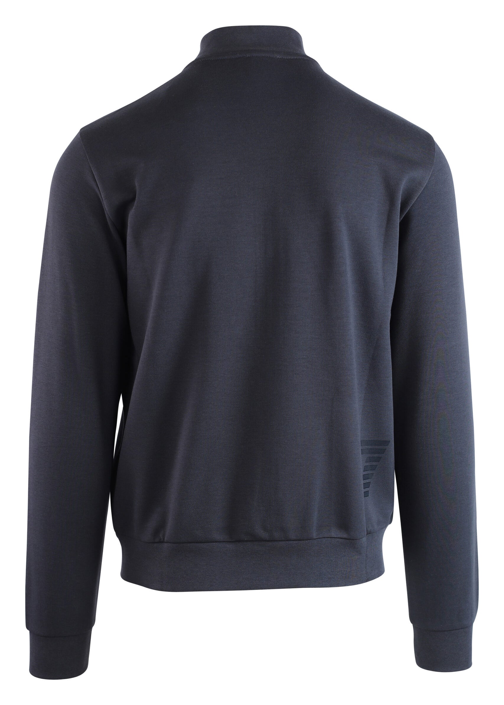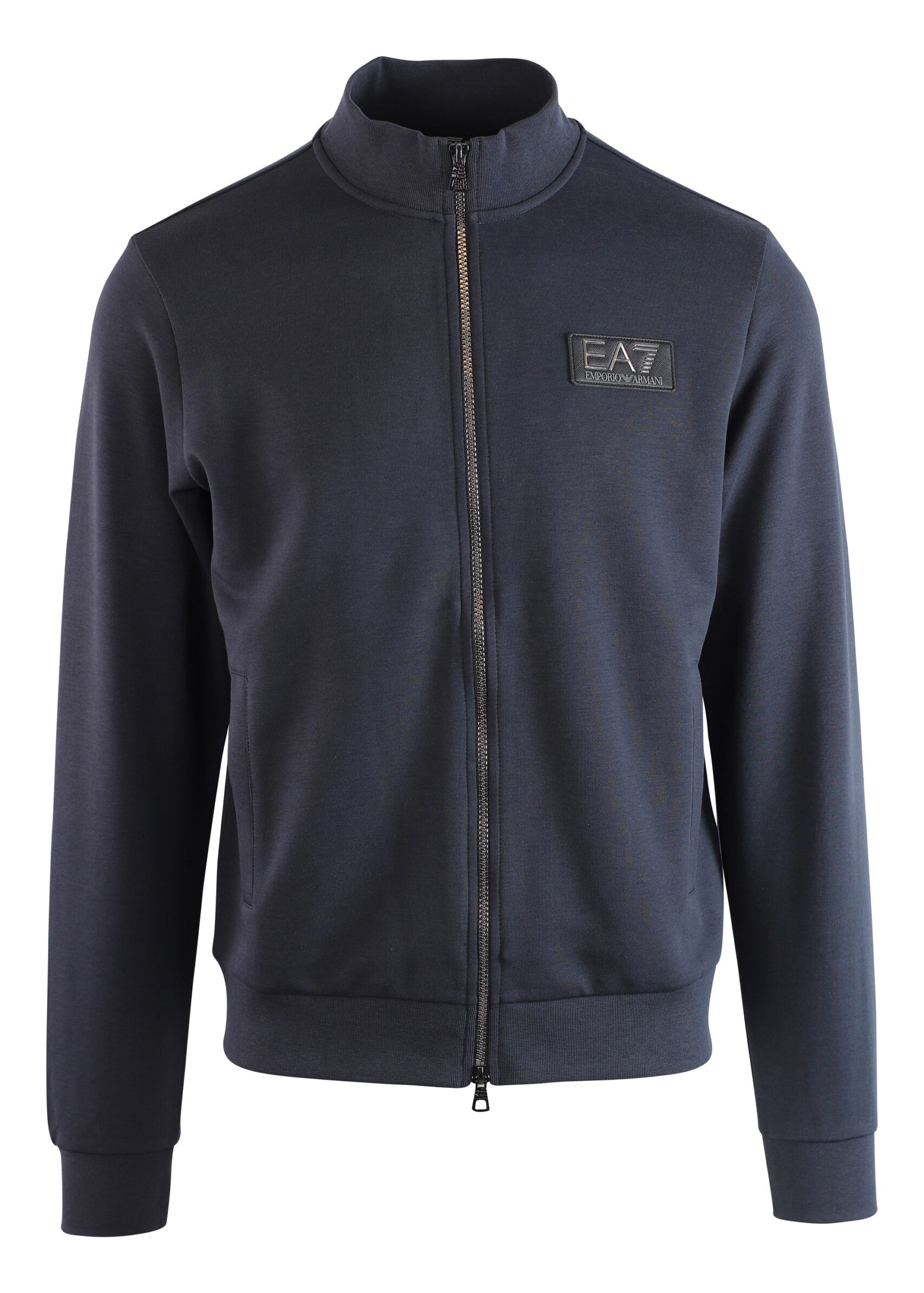 Dessuadora blava amb cremallera i logo pegat monocromàtic