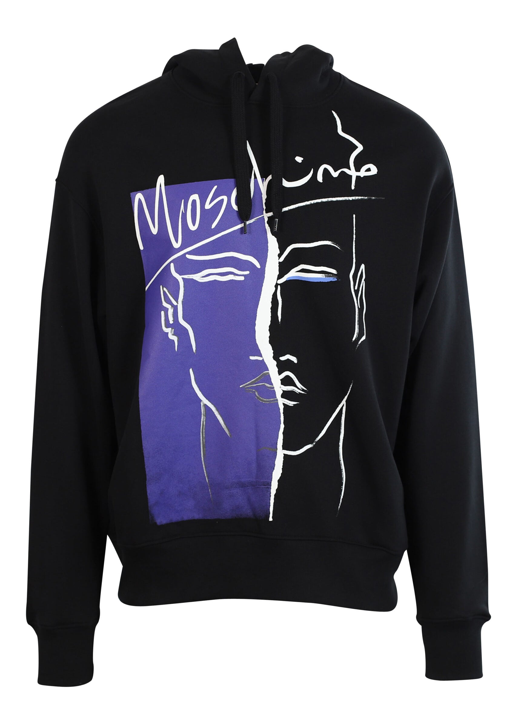 Dessuadora negra amb caputxa i estampat cara negre i lila