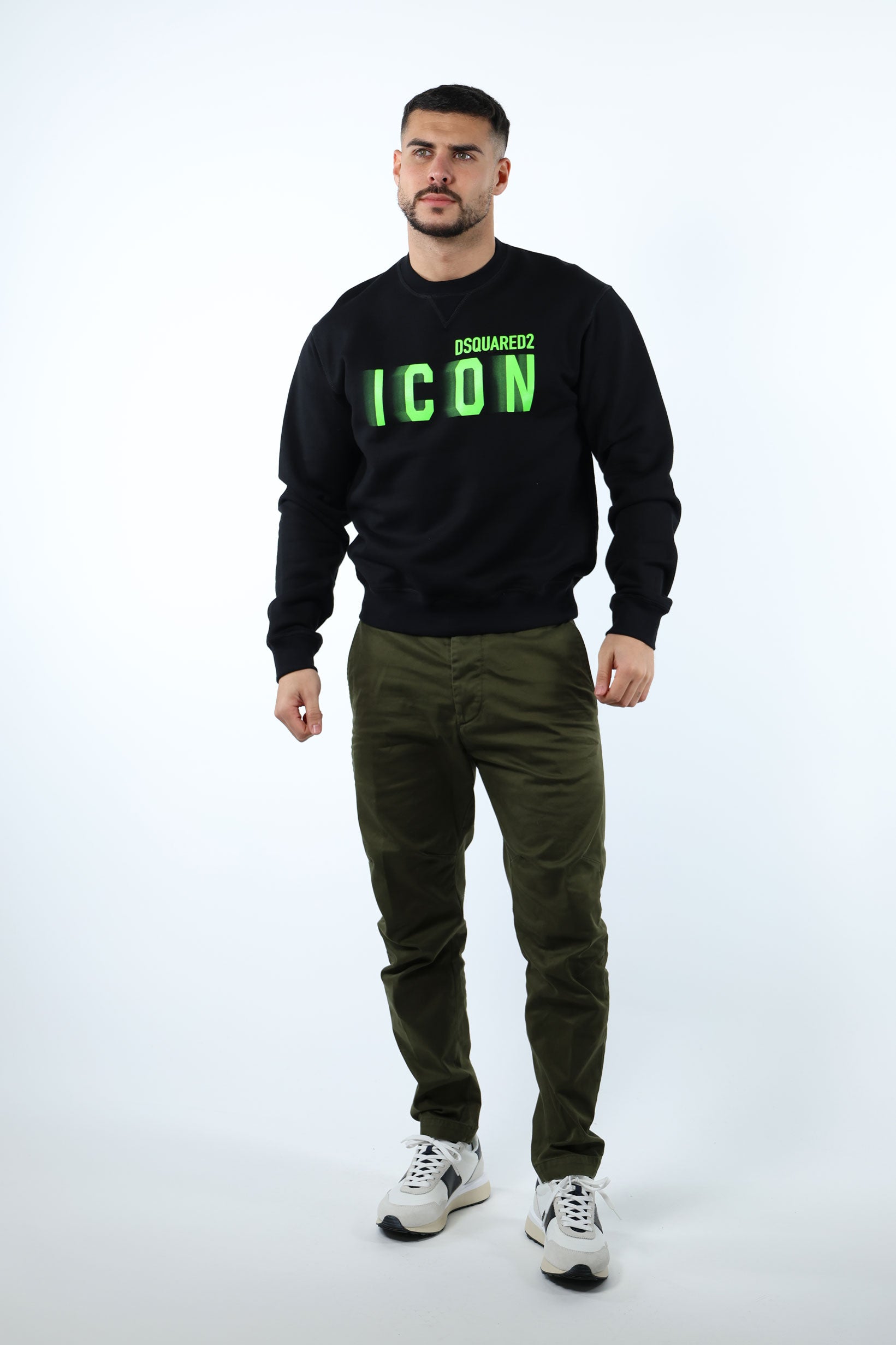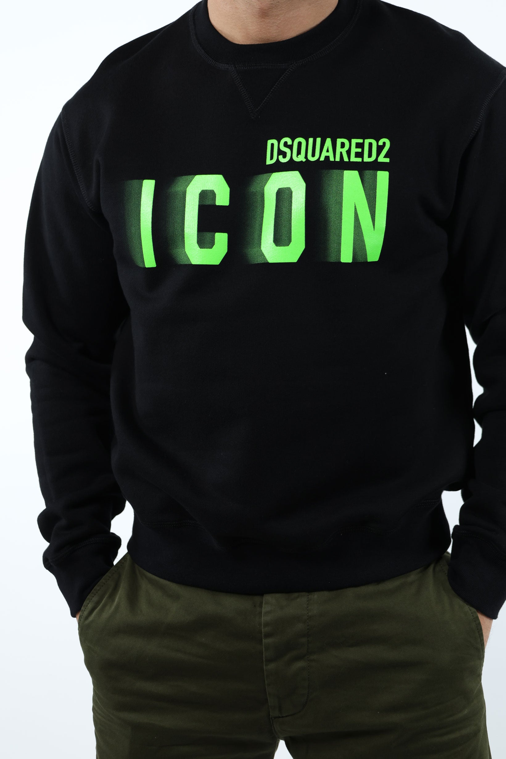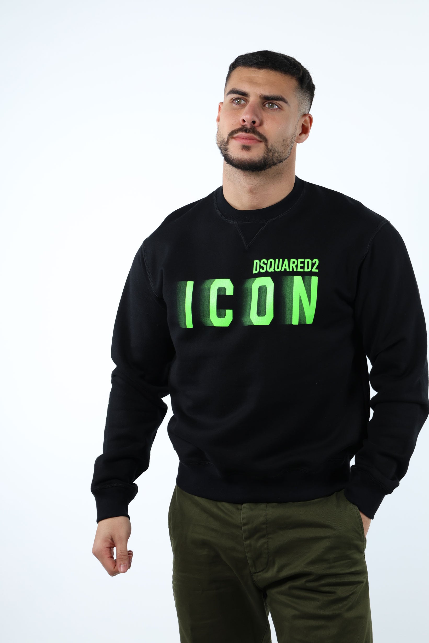 Sudadera negra con maxilogo "icon" verde neon borroso -