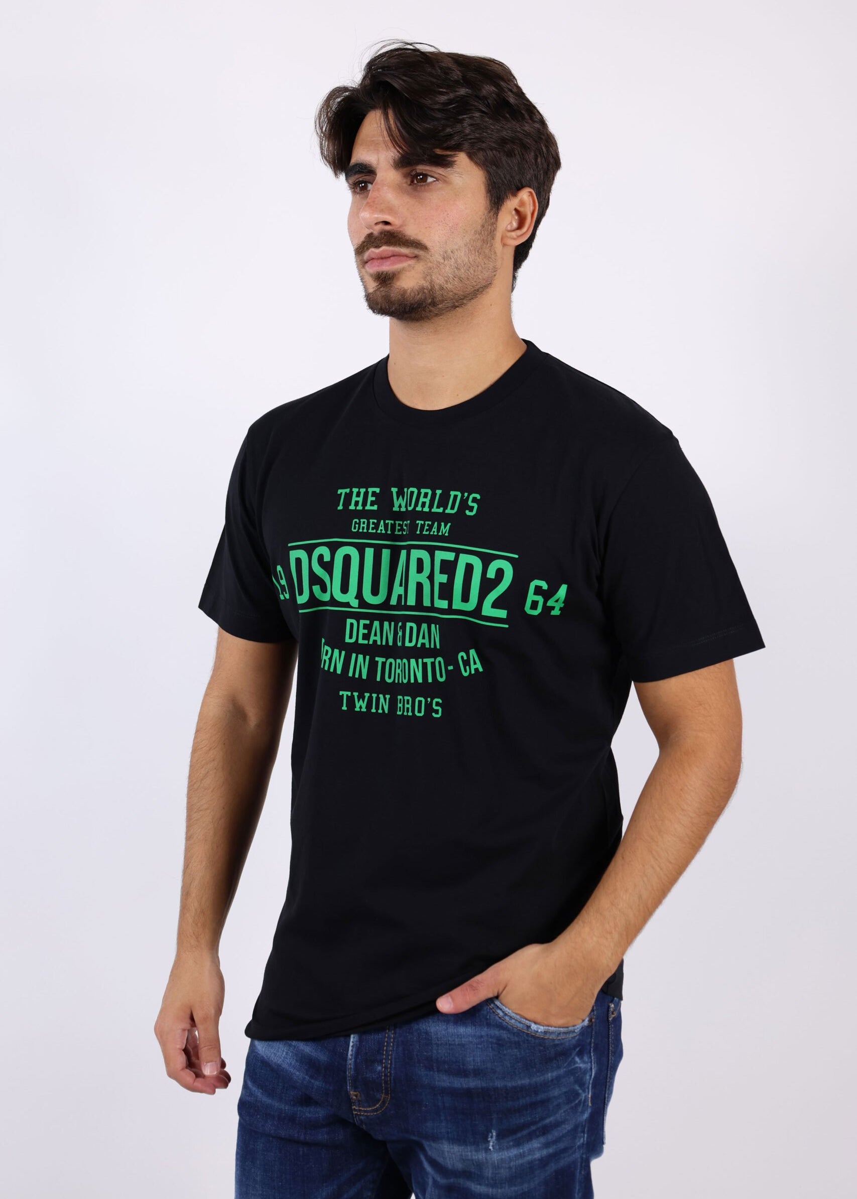 Samarreta negra amb maxil·log "dsquared" en verd - S