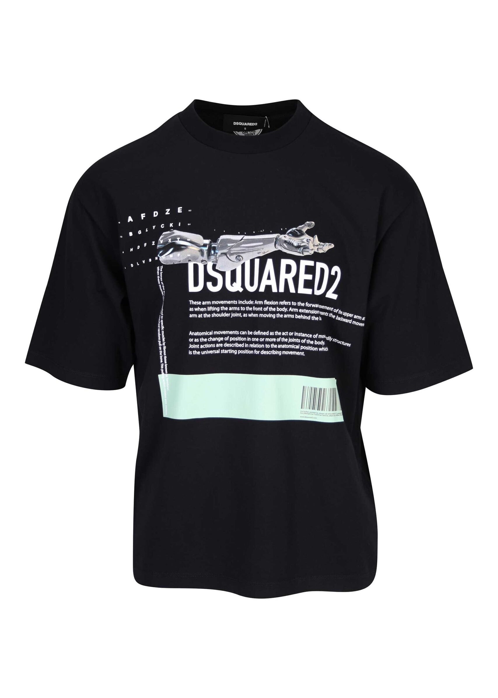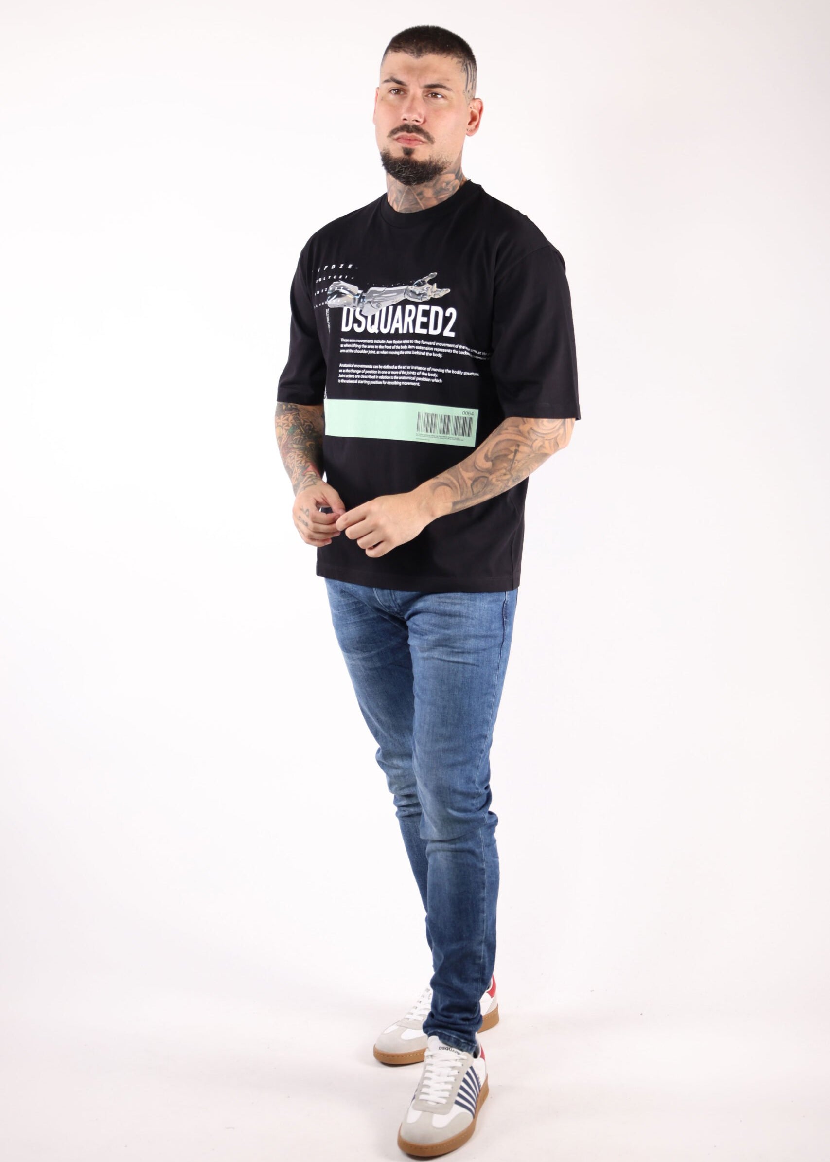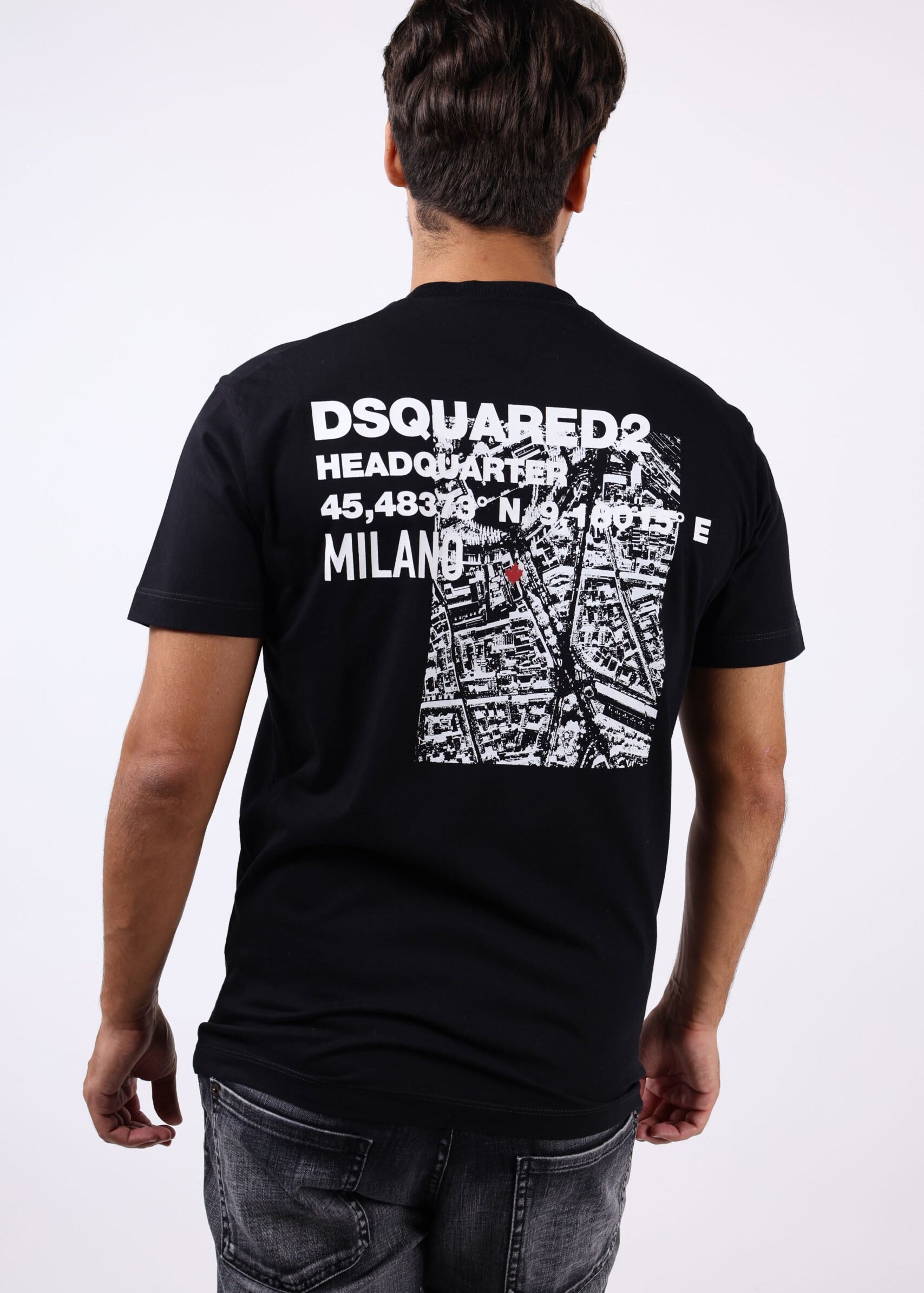 Camiseta negra con minilogo "dsquared2 milano" blanco -