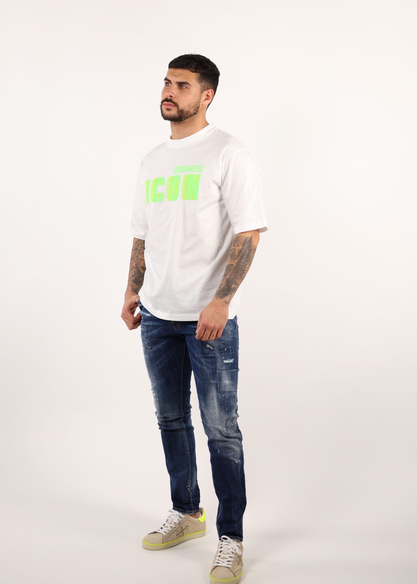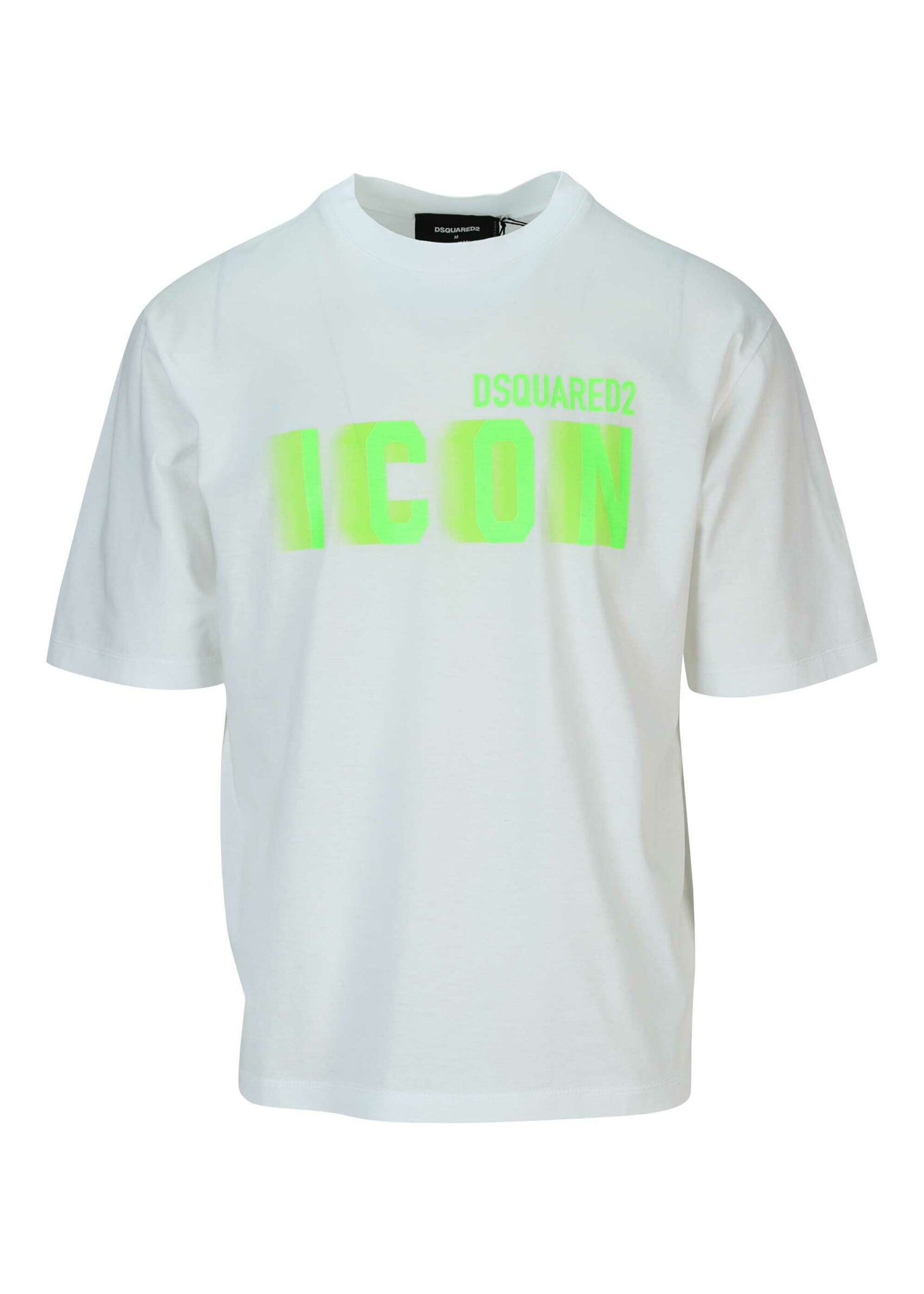 Samarreta blanca "oversize" amb maxil·log "icon" verd neó borrós - S