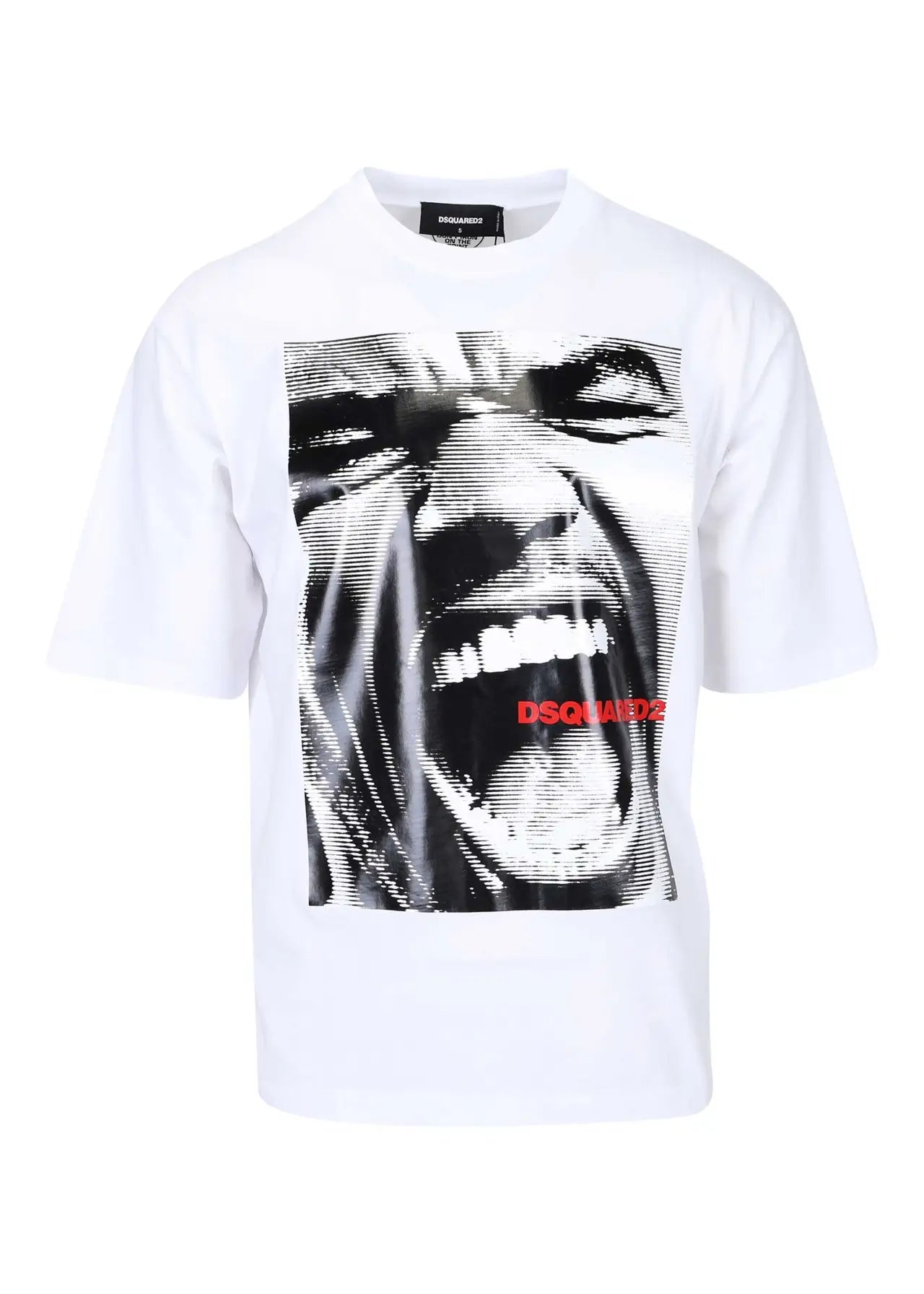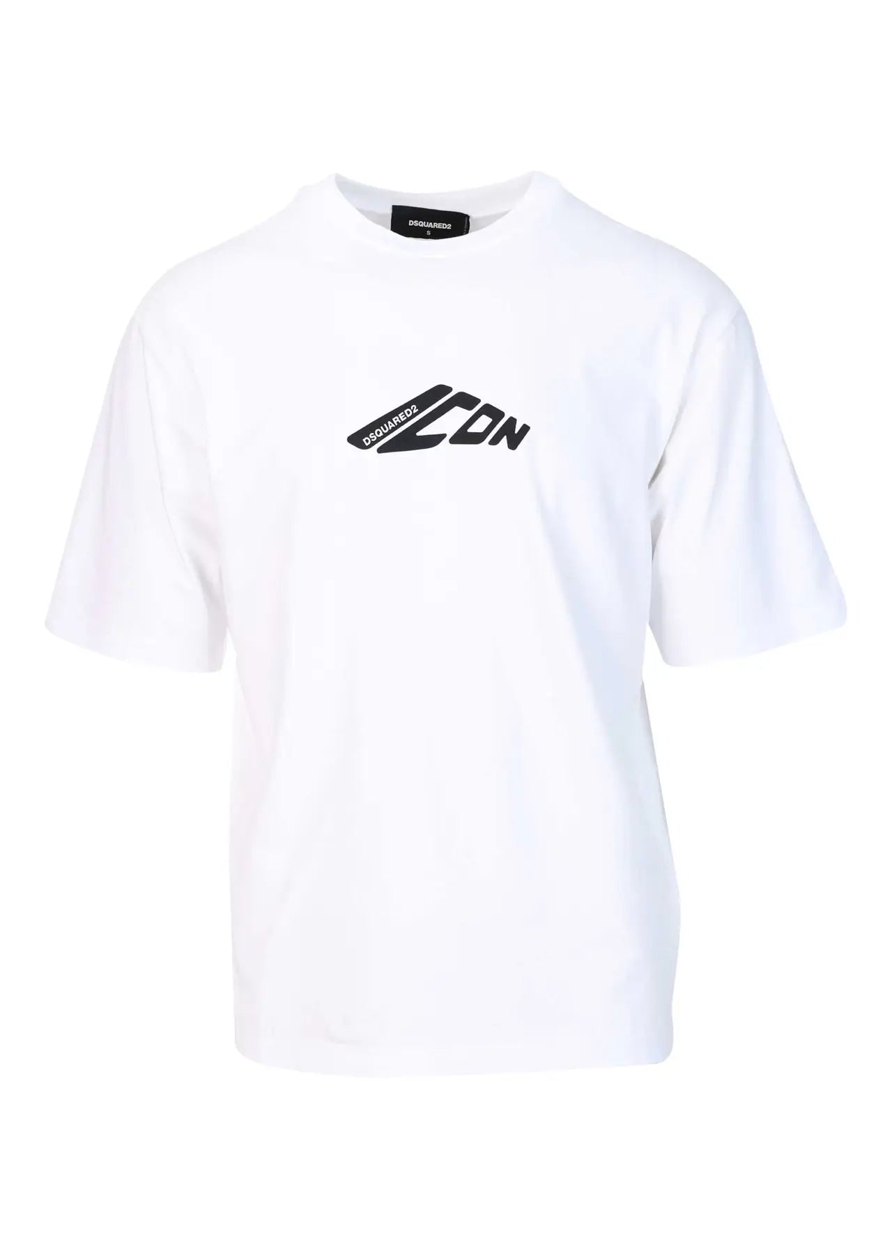 Camiseta blanca "oversize" con maxilogo "icon" distorcionado -