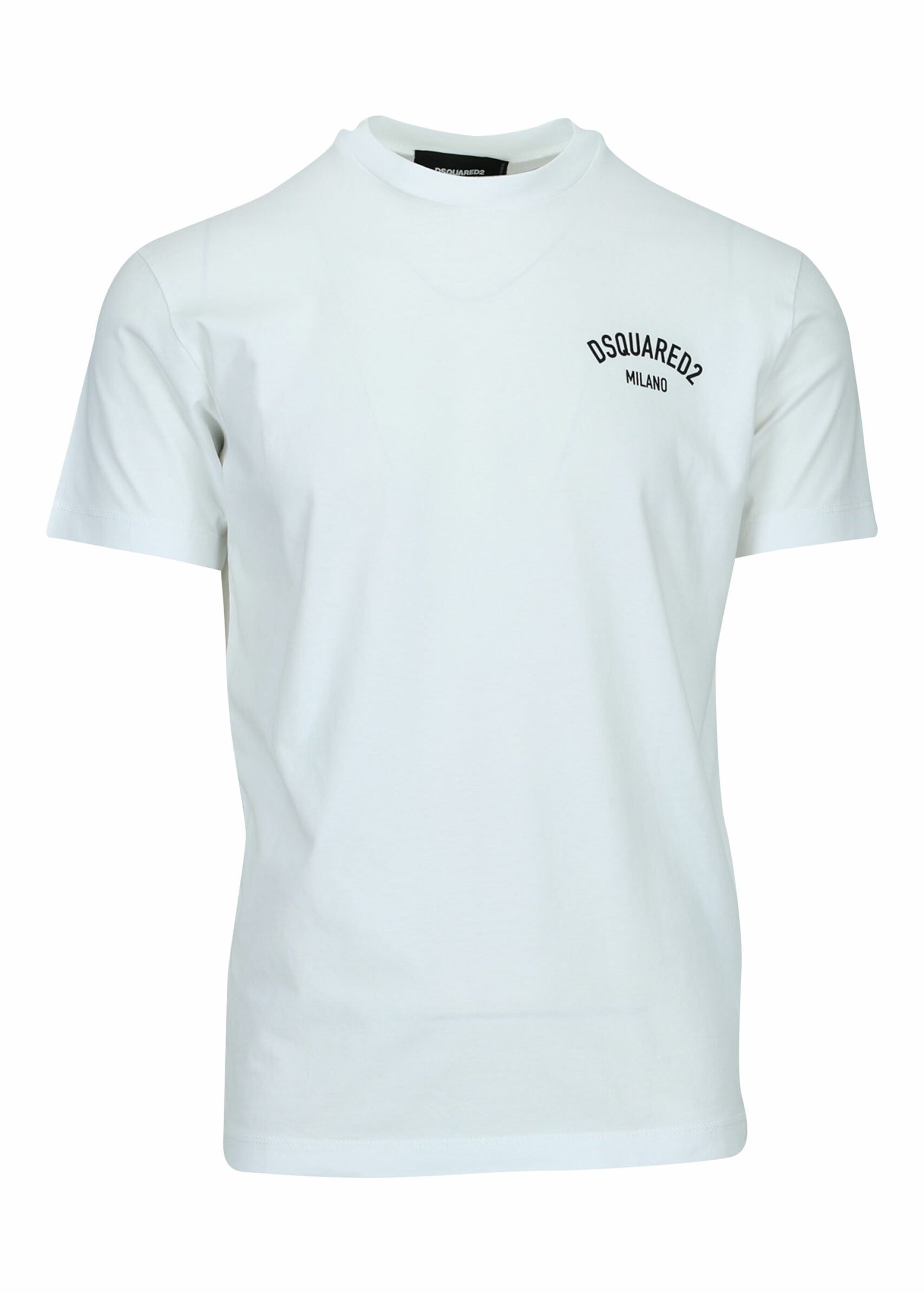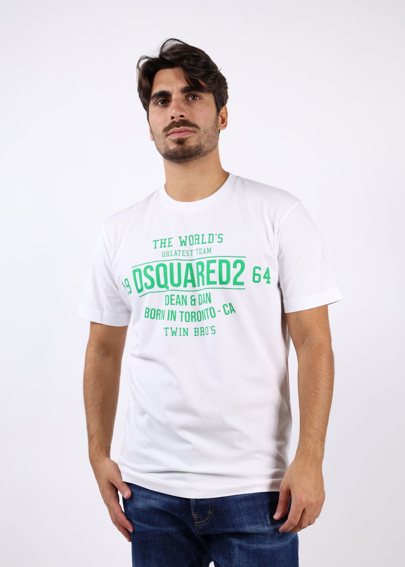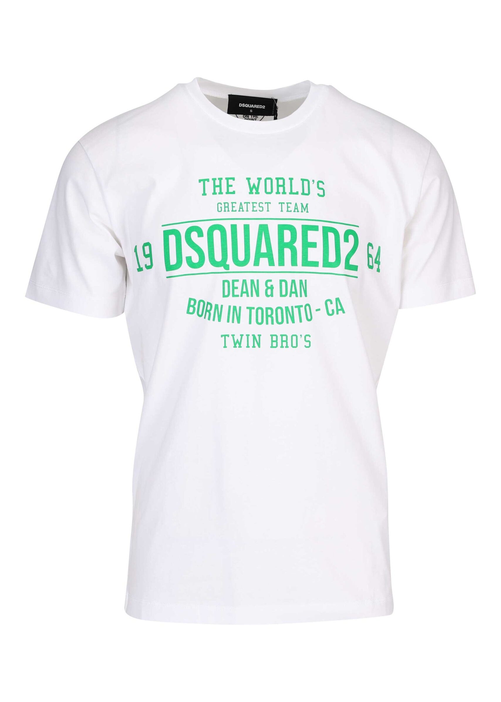 Samarreta blanca amb maxil·log "dsquared" en blau turquesa - L