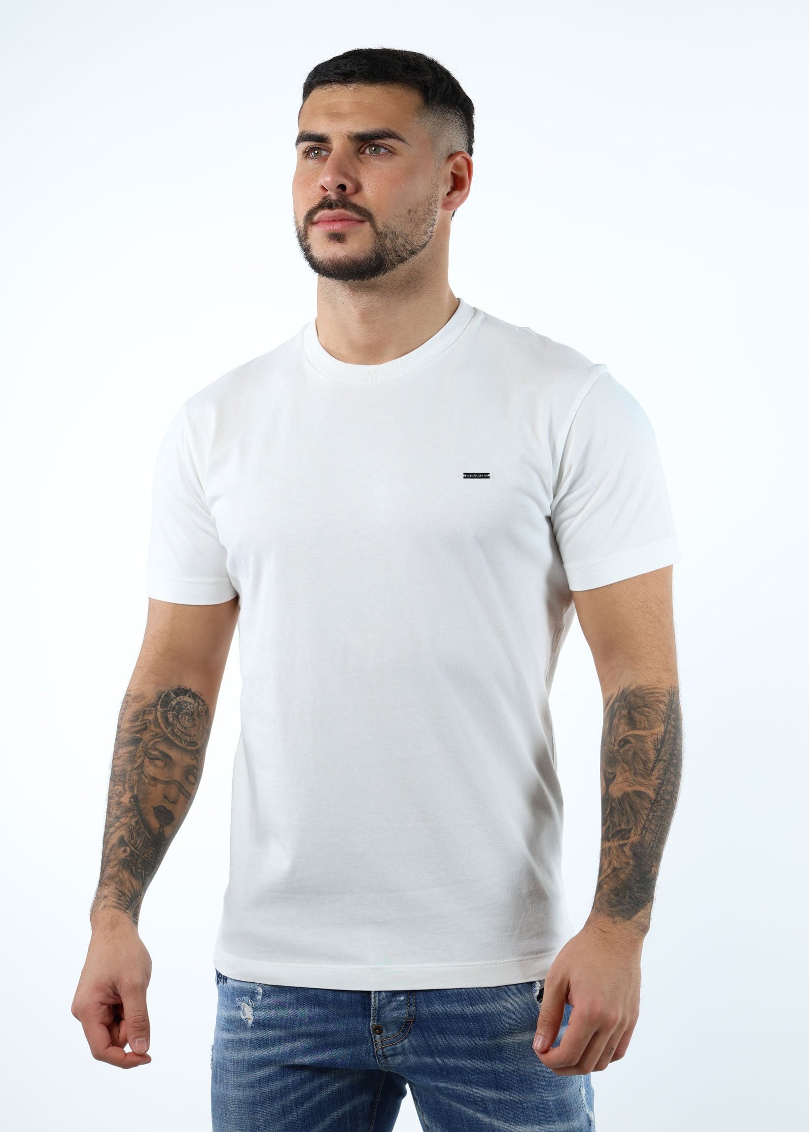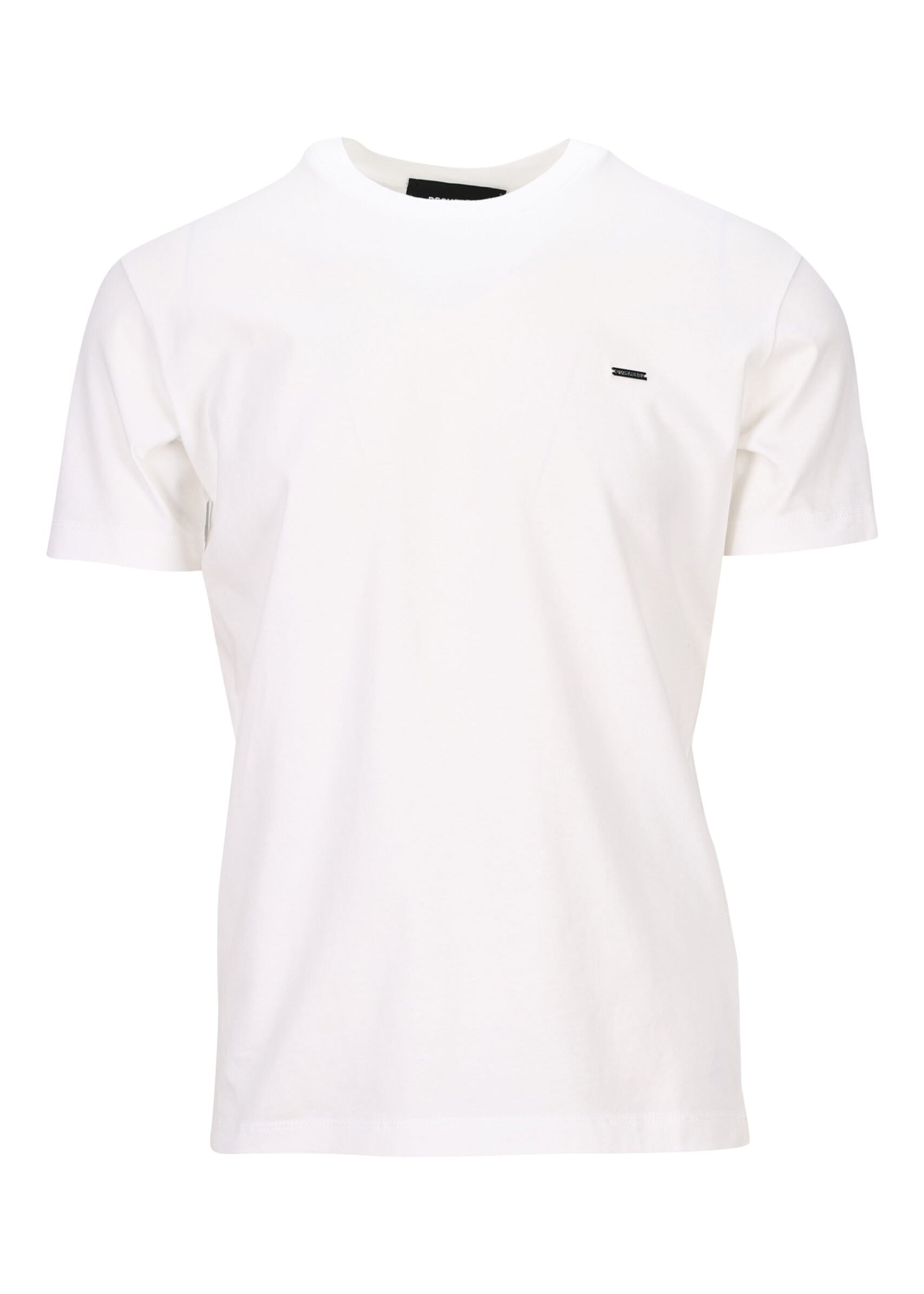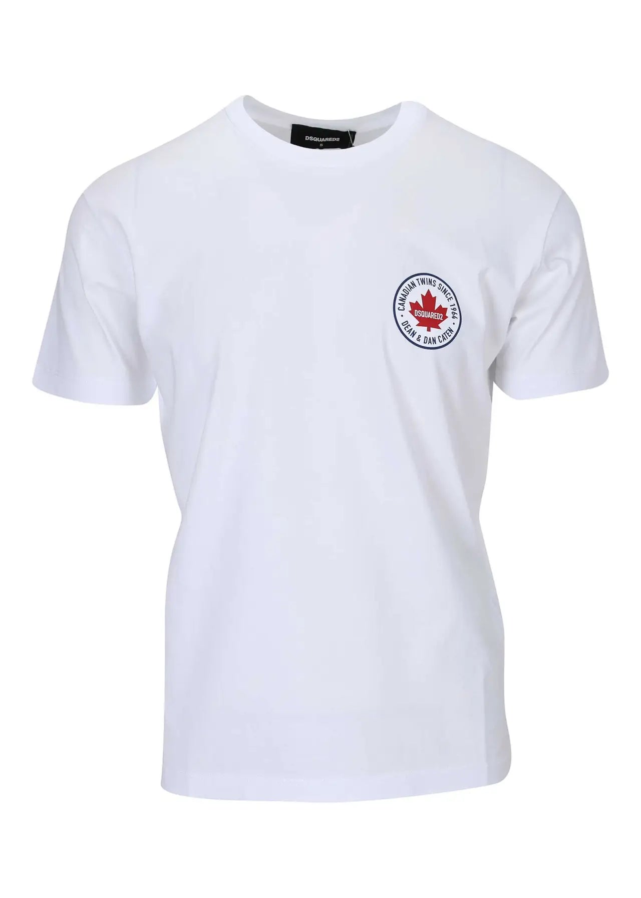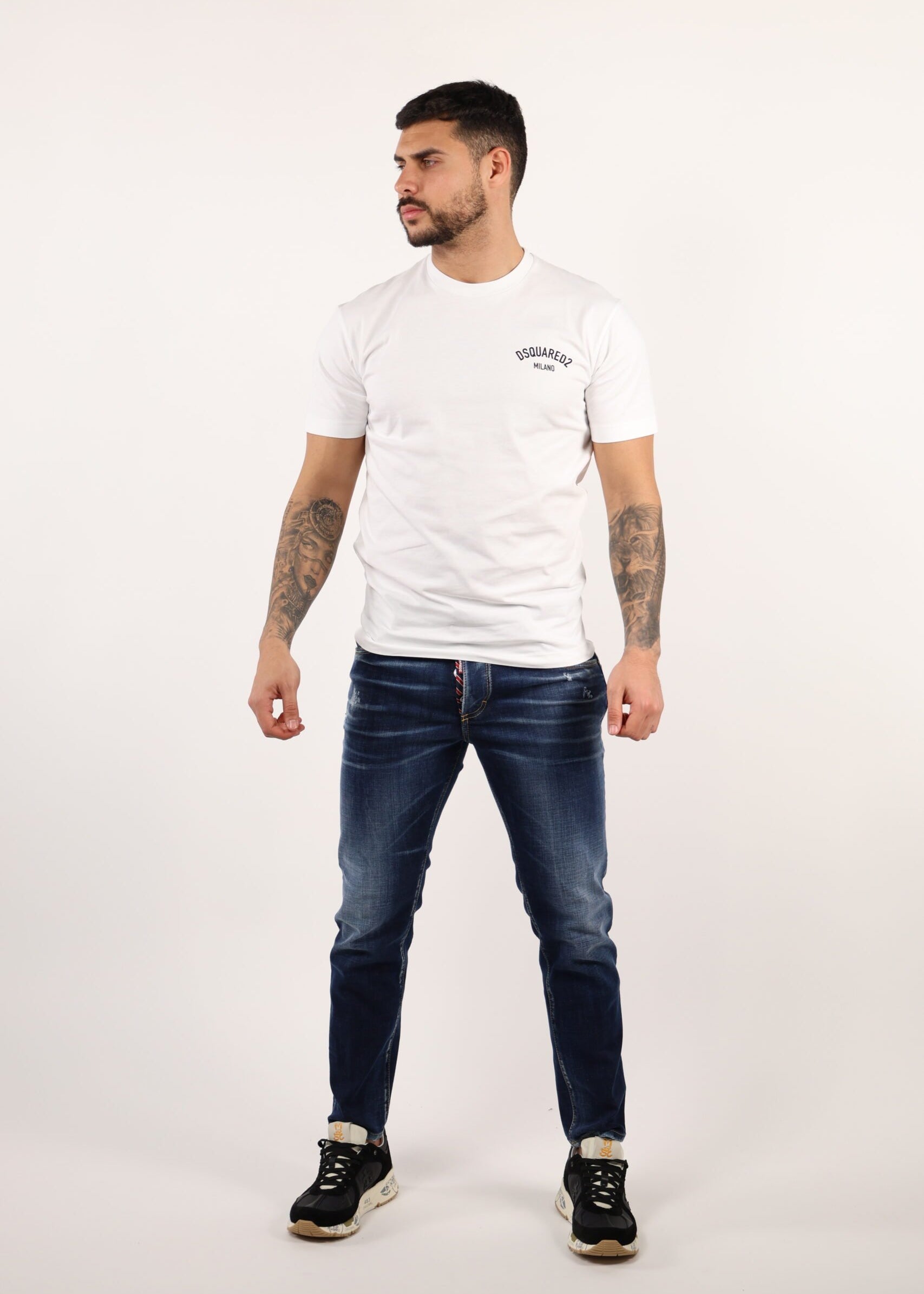 Samarreta blanca amb maxil·log "dsquared" en blau turquesa - L
